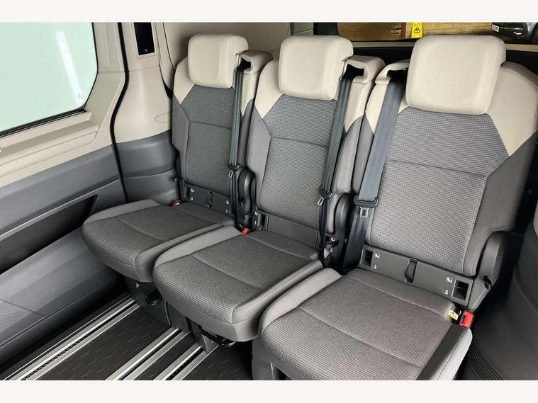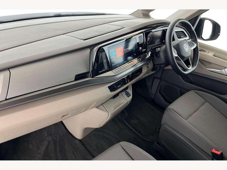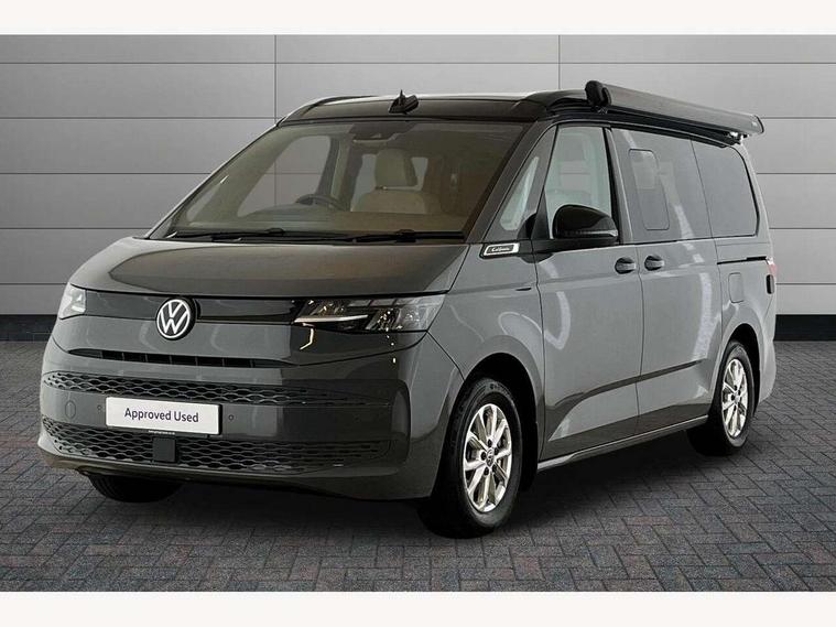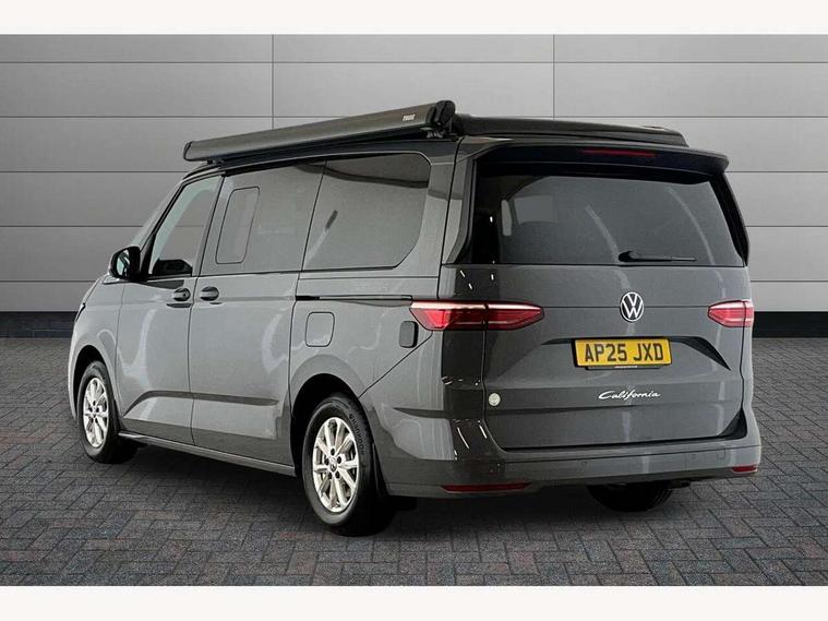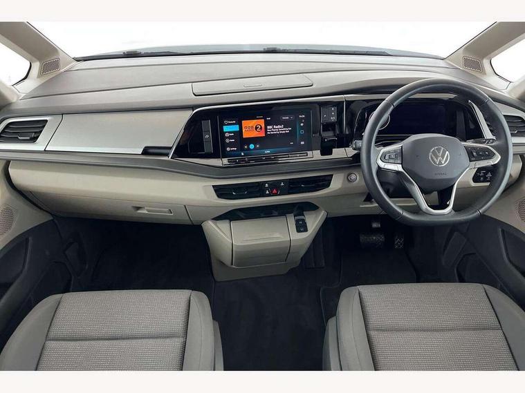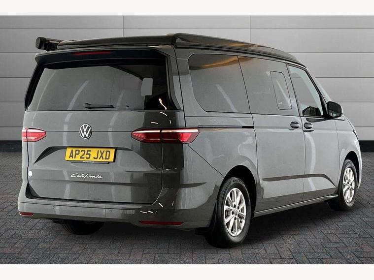Adaptive cruise control ACC stop and go, Advanced driver attention and drowsiness monitor, California on tour app, Car2X high variant, Digital cockpit pro, Dynamic road sign display, eCall emergency system, Front cross traffic assist, Function control unit, IDA voice assistant and voice enhancer, Lane change assistant, Lane keeping system Lane Assist, Mobile phone interface, Motorhome Registration, Multifunction camera, PAS, Preparation for online services, Preparation for We connect and We connect plus, Servotronic speed sensitive power steering, Speed limiter and predicative speed limiter, Turn assist with evasive assistance, Volkswagen wired and wireless app connect, Auxiliary battery with a low-voltage converter, Battery 380 A (68 Ah), Battery without capacity specification, Standard battery/generator, 10.4 inch infotainment system with scalable module options, 2 USB-C ports at the front, 4 USB-C charging sockets in the passenger compartment, 8 Speakers, Digital radio reception (DAB), 3rd brake light, Canvas sides -Basalt grey includes panorama window, Four speed control for windscreen wipers, Heat and sound insulating laminated safety glass windshield, High gloss black door mirrors, Interior noise reduction, LED Headlights, Manually operated pop-up roof Bellows - Basalt Grey, Molding between headlamps painted to glossy black, Nameplate set California, Poor weather light including cornering light, Radiator grille, Rear boot, Red LED tail lights, Sliding window in front and fixed window in rear in load/passenger compartment on driver side, Windscreen wiper intermittent control, 230V external inlet with charging feature for vehicle batteries, 230V inverter with socket on driver seat, 3 single seats with integrated seatbelt and sleeping mat, Additional interior noise attenuation, Armrest on front swivel seats in both sides with electric lumbar support, Auxiliary pre-heater, Bright dots bi-color cloth upholstery, Darkening roller blinds and curtain, Drawers under the outer seats in the cab and passenger compartment & 2 waste bins, Front and rear headrests, Lockable glove compartment without lighting, Mini-kitchen at rear with slide-out single-flame gas cooker including electrical equipment box with Camper battery 230-V outlet, Multifunction leather steering wheel with paddle shifters, Plastic floor covering in passenger/load compartment, Single front passenger seat, Storage compartment left and right 1st row of seats, Sun visors with mirror, illuminated, ticket holder on the driver side, with airbag label on sun visor and B-pillar, Surround lighting in door area, Swivel seat on left with height adjustable including drawer, Swivel seat on right with height adjustable including drawer, Tailgate latching without unlatching function from inside, Without loading edge protection, Without luggage compartment cover, Lighting package - California, 3x3 point automatic seatbelts at the rear outside with ECE label, with/without belt tensioner, Autonomous emergency braking, Child locks, Driver and front passenger airbags with front passenger airbag deactivation button, First aid kit with warning triangle and safety vest, Front Assist with pedestrian and cyclist detection, Front disc brakes, Height adjustable three point automatic seatbelts at front with belt and end fitting tensioners, Occupants detection only display, Side and curtain airbags for driver and front passenger, curtain airbags for outer seats in rear, centre airbag in front, Swerve support and oncoming vehicle braking when turning, Tyre pressure loss indicator, Warning signal and warning lamp for front and rear seat belts not fastened, Anti theft alarm system with interior monitoring in cab, backup horn and towing protection, Lockable wheel bolts, Preparation for alcohol interlock, 5+ Promise service plan, Scale light grey decorative inlays, Tool kit, Trims for alloy wheels,