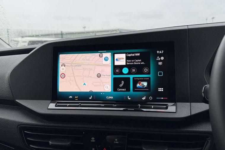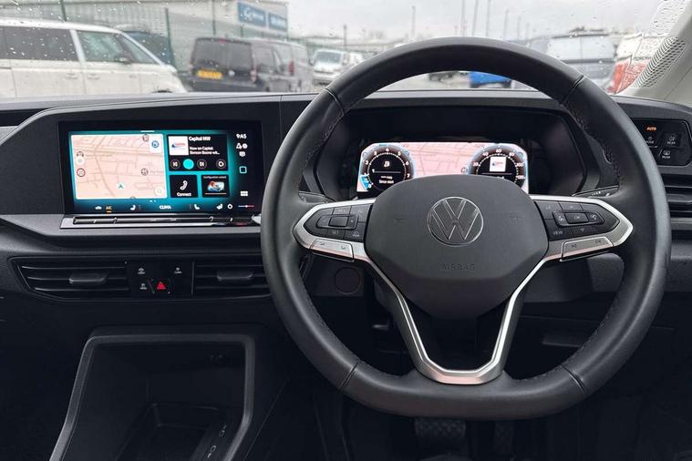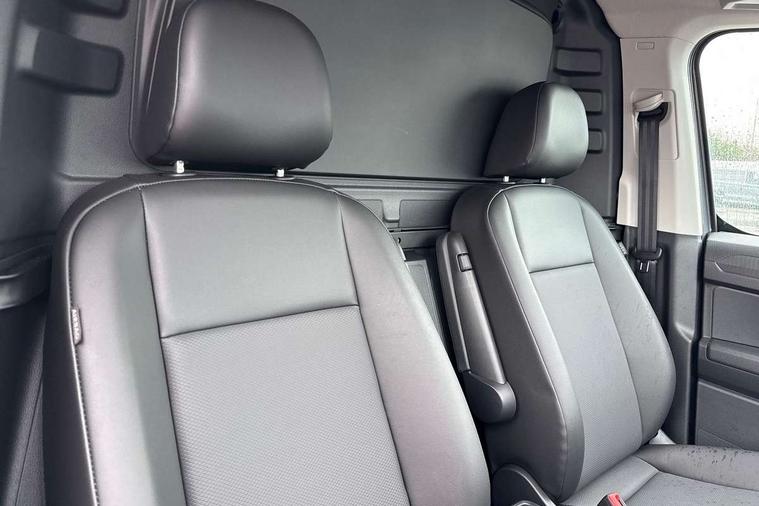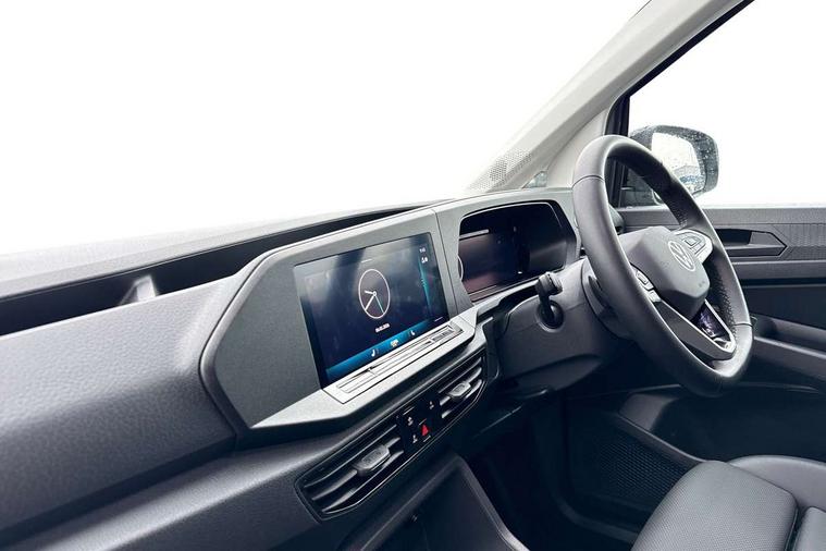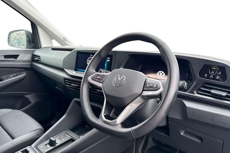 Bluetooth - Mobile phone interface, Car2X technology, Driver alert system, eCall emergency system, Intelligent Speed Assist, Lane assist, Seatbelt warning indicator, Service indicator, Start-stop system with regenerative braking, 2 USB interfaces type C in dashboard, App-Connect - Wireless for Apple CarPlay, DAB Radio, We Connect Plus Preparation, Automatic hazard light activation under emergency braking, Black painted exterior mirror housings, body-colored door handles and Silver sliding door rail, Body coloured bumpers, Electric front windows, LED rear combination lights, LED rear tail lights, Roof rail preparation, Windscreen wiper with variable intermittent delay and wash-wipe system, Dimming breakaway interior rear view mirror, Electronically controlled heating system, ergoComfort seats for driver, Interior light in headliner incorporting LED technology, Lockable glove compartment door with light, Manual heating and ventilation system, Manual height adjustment for front seats and seat cushion inclination and depth adjustment on drivers seat, Multi function leather steering wheel, Power-adjustable lumbar support for drivers seat, Reach and rake adjustable steering column, Six lashing points for securing loads, Steering wheel paddle shift, Storage compartments under driver and front passenger seats, Sun visors with mirror, airbag label on front passenger sun visor, Winter pack plus - Caddy, 3-point seat belts in front, with pretensioner and height adjustment, Driver and front passenger airbag with front passenger airbag deactivation, Tyre pressure monitoring system, Anti-theft alarm system, interior monitoring, backup horn, and towing protection, Electronic engine immobiliser, Remote central locking with deadlocks, interior locking, Anti locking braking system (ABS), Automatic post collision braking system, Brake assist, Electric parking brake with auto hold function, Electronic brake force distribution (EBD), Electronic differential lock (EDL), Electronic stabilisation programme (ESP), Engine drag torque control (MSR), Hill hold assist, Traction control system (TCS), Decorative beige birch vein inserts, Wheel bolts with anti-theft protection (unlockable),