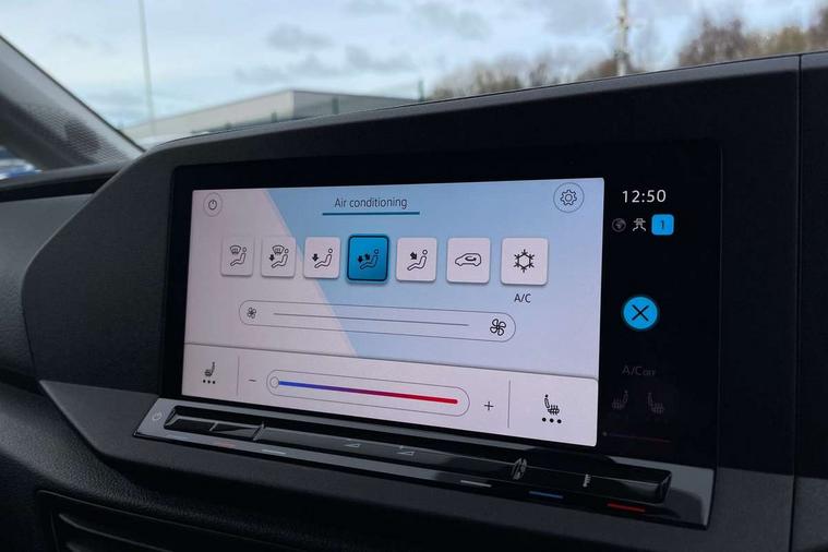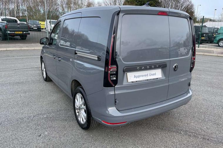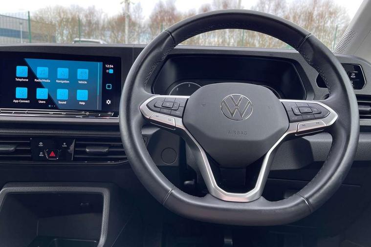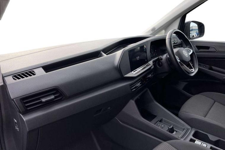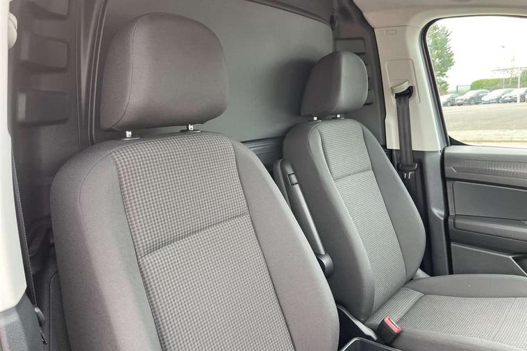 Bluetooth - Mobile phone interface, Car2X technology, Driver alert system, eCall emergency system, Intelligent Speed Assist, Lane assist, Seatbelt warning indicator, Service indicator, Start-stop system with regenerative braking, 2 USB interfaces type C in dashboard, App-Connect - Wireless for Apple CarPlay, DAB Radio, We Connect Plus Preparation, Automatic hazard light activation under emergency braking, Black painted exterior mirror housings, body-colored door handles and Silver sliding door rail, Body coloured bumpers, Electric front windows, LED rear combination lights, LED rear tail lights, Roof rail preparation, Windscreen wiper with variable intermittent delay and wash-wipe system, Dimming breakaway interior rear view mirror, Electronically controlled heating system, ergoComfort seats for driver, Interior light in headliner incorporting LED technology, Lockable glove compartment door with light, Manual heating and ventilation system, Manual height adjustment for front seats and seat cushion inclination and depth adjustment on drivers seat, Multi function leather steering wheel, Power-adjustable lumbar support for drivers seat, Reach and rake adjustable steering column, Six lashing points for securing loads, Steering wheel paddle shift, Storage compartments under driver and front passenger seats, Sun visors with mirror, airbag label on front passenger sun visor, Winter pack plus - Caddy, 3-point seat belts in front, with pretensioner and height adjustment, Driver and front passenger airbag with front passenger airbag deactivation, Tyre pressure monitoring system, Anti-theft alarm system, interior monitoring, backup horn, and towing protection, Electronic engine immobiliser, Remote central locking with deadlocks, interior locking, Anti locking braking system (ABS), Automatic post collision braking system, Brake assist, Diesel particulate filter, Electric parking brake with auto hold function, Electronic brake force distribution (EBD), Electronic differential lock (EDL), Electronic stabilisation programme (ESP), Engine drag torque control (MSR), Hill hold assist, Traction control system (TCS), Decorative beige birch vein inserts, Wheel bolts with anti-theft protection (unlockable),