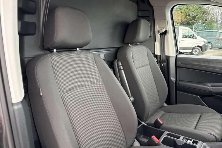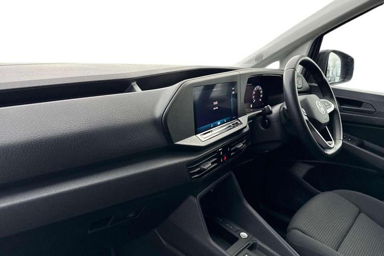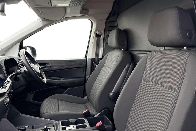 Bluetooth - Mobile phone interface, Car2X technology, Driver alert system, eCall emergency system, Intelligent Speed Assist, Lane assist, Seatbelt warning indicator, Service indicator, Start-stop system with regenerative braking, 2 USB interfaces type C in dashboard, App-Connect - Wireless for Apple CarPlay, DAB Radio, We Connect Plus Preparation, Automatic hazard light activation under emergency braking, Black painted exterior mirror housings, body-colored door handles and Silver sliding door rail, Body coloured bumpers, Electric front windows, LED rear combination lights, LED rear tail lights, Roof rail preparation, Windscreen wiper with variable intermittent delay and wash-wipe system, Dimming breakaway interior rear view mirror, Electronically controlled heating system, ergoComfort seats for driver, Interior light in headliner incorporting LED technology, Lockable glove compartment door with light, Manual heating and ventilation system, Manual height adjustment for front seats and seat cushion inclination and depth adjustment on drivers seat, Multi function leather steering wheel, Power-adjustable lumbar support for drivers seat, Reach and rake adjustable steering column, Six lashing points for securing loads, Steering wheel paddle shift, Storage compartments under driver and front passenger seats, Sun visors with mirror, airbag label on front passenger sun visor, Winter pack plus - Caddy, 3-point seat belts in front, with pretensioner and height adjustment, Driver and front passenger airbag with front passenger airbag deactivation, Tyre pressure monitoring system, Anti-theft alarm system, interior monitoring, backup horn, and towing protection, Electronic engine immobiliser, Remote central locking with deadlocks, interior locking, Anti locking braking system (ABS), Automatic post collision braking system, Brake assist, Diesel particulate filter, Electric parking brake with auto hold function, Electronic brake force distribution (EBD), Electronic differential lock (EDL), Electronic stabilisation programme (ESP), Engine drag torque control (MSR), Hill hold assist, Traction control system (TCS), Decorative beige birch vein inserts, Wheel bolts with anti-theft protection (unlockable),