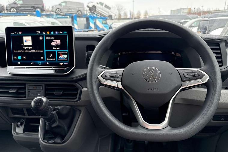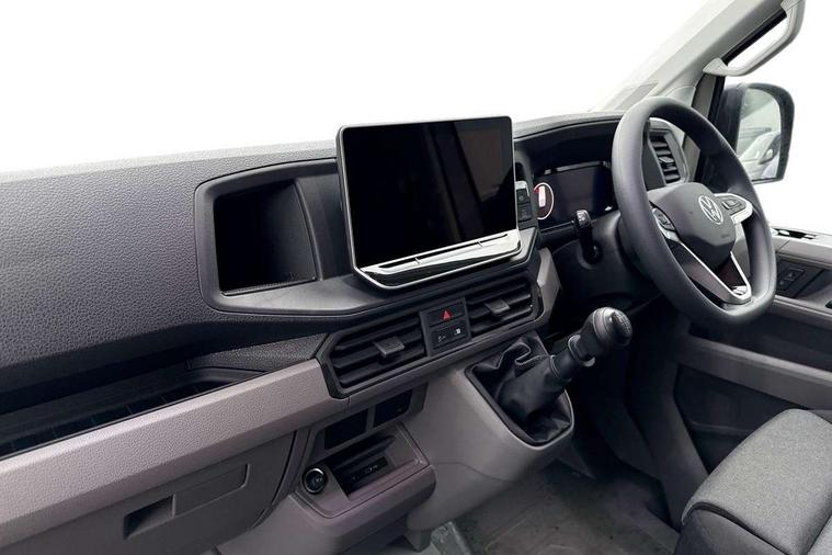 Bluetooth, Digital clock, Driver alert system, E-call + We connect basic preparation, Instrument cluster, Lights on warning buzzer, Locking fuel cap, Multi-function Display Plus, Rev counter, Service indicator, Speedometer, Voice control system, Composition media with 6.5" with we connect plus prep, 4 speaker, multifun display plus, USB, mob interface, app con, "We connect function", DAB Radio, Auto low beam mode, Leaving home function and manual coming home function, Cab doors, Convex and wide angle mirror, Driver seatbelt warning light, Electric windows, Electrically heated and adjustable door mirrors, Half painted front bumper, Heat insulating glass, Indicators in front door mirrors, One towing eye in front, Rear wing doors with 270 degree hinges, Special identification plate, Unpainted radiator grille, Air recirculation system, Ashtray, Centre console storage tray, CFCU preparation, Charcoal filter, Climatic air conditioning, Document holder on centre console, Drinks holders, Electromechanical Servotronic steering, Electronically controlled heating system, Fully adjustable suspension type driver seat, Grab handles on rear entry pillars, Height adjustable head restraints, Height and reach adjustable steering wheel, Illuminated glove compartment with lockable lid, Interior light, including 2 reading lights, Interior light, switchable by door, Jack and tool kit, Preparation for interface for external use with terminal block, Storage compartments in doors and in step, right, Storage tray on dashboard, Two 12V outlets in the cab (in the dashboard), Without rear side trim panel passenger load compartment, Non-smokers pack - Crafter, 3 point inertia reel belt on all seats, Automatic hazard light with emergency braking, Crosswind assist, Driver and front passenger airbag with front passenger airbag deactivation, Height adjustable seatbelts for outer cab seats, 1 rigid key, Anti-theft alarm with interior monitor, back up horn and tow away protect, overhead storage with two 1-DIN, reading light, SAFELOCK with 2 remote keys, Engine immobiliser, ABS, Automatic post collision braking system, EBA, EBD, EDL, ESP, Front disc brakes, HBA, Hill start assist, Parking brake - hill hold control, Start and stop system with regenerative braking, TCS, Hub cap covers,