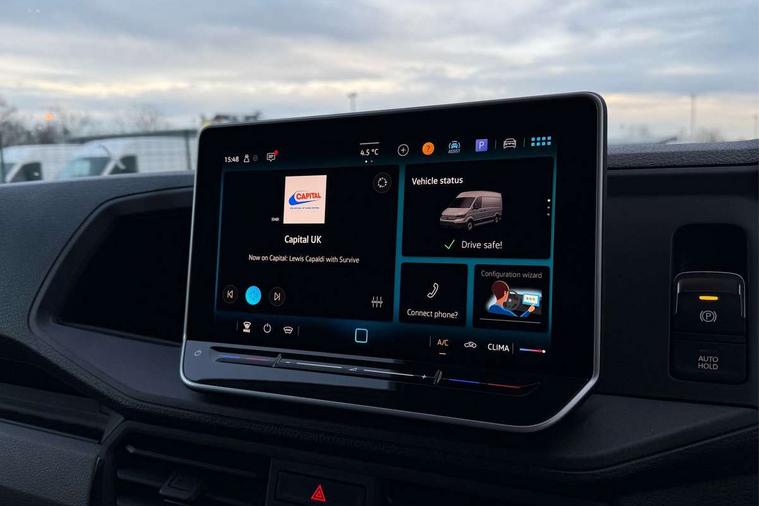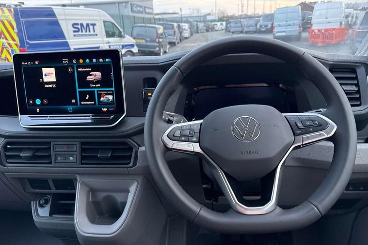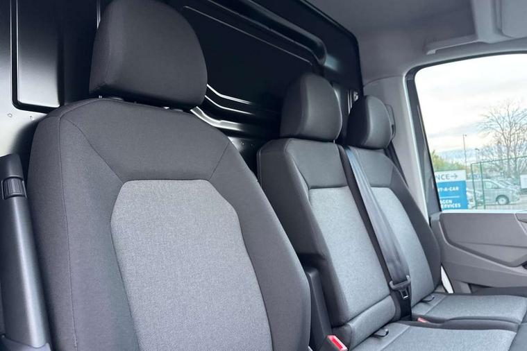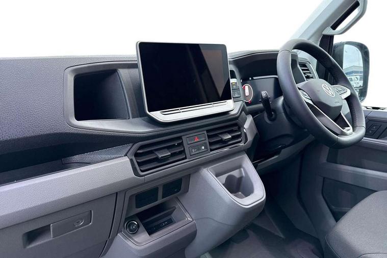 Bluetooth, Digital clock, Driver alert system, E-call + We connect basic preparation, Instrument cluster, Lights on warning buzzer, Locking fuel cap, Multi-function Display Plus, Rev counter, Service indicator, Speedometer, Voice control system, Composition media with 6.5" with we connect plus prep, 4 speaker, multifun display plus, USB, mob interface, app con, "We connect function", DAB Radio, Auto low beam mode, Leaving home function and manual coming home function, Cab doors, Convex and wide angle mirror, Driver seatbelt warning light, Electric windows, Electrically heated and adjustable door mirrors, Half painted front bumper, Heat insulating glass, Indicators in front door mirrors, One towing eye in front, Rear wing doors with 270 degree hinges, Special identification plate, Unpainted radiator grille, Air recirculation system, Ashtray, Centre console storage tray, CFCU preparation, Charcoal filter, Climatic air conditioning, Document holder on centre console, Drinks holders, Electromechanical Servotronic steering, Electronically controlled heating system, Fully adjustable suspension type driver seat, Grab handles on rear entry pillars, Height adjustable head restraints, Height and reach adjustable steering wheel, Illuminated glove compartment with lockable lid, Interior light, including 2 reading lights, Interior light, switchable by door, Jack and tool kit, Preparation for interface for external use with terminal block, Storage compartments in doors and in step, right, Storage tray on dashboard, Two 12V outlets in the cab (in the dashboard), Without rear side trim panel passenger load compartment, Non-smokers pack - Crafter, 3 point inertia reel belt on all seats, Automatic hazard light with emergency braking, Crosswind assist, Driver and front passenger airbag with front passenger airbag deactivation, Height adjustable seatbelts for outer cab seats, 1 rigid key, Anti-theft alarm with interior monitor, back up horn and tow away protect, overhead storage with two 1-DIN, reading light, SAFELOCK with 2 remote keys, Engine immobiliser, ABS, Automatic post collision braking system, EBA, EBD, EDL, ESP, Front disc brakes, HBA, Hill start assist, Parking brake - hill hold control, Start and stop system with regenerative braking, TCS, Hub cap covers,