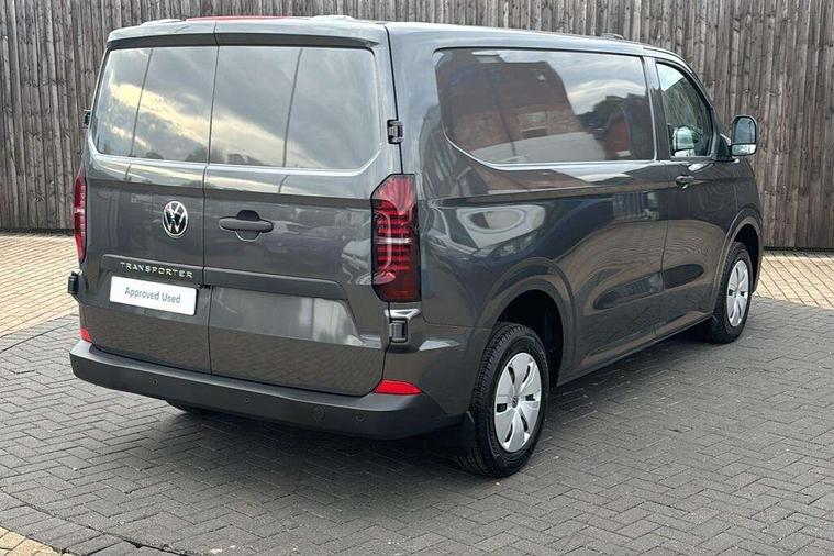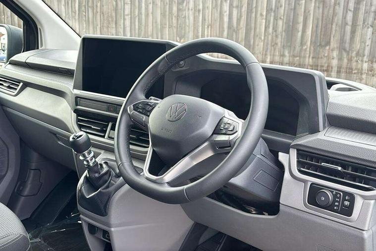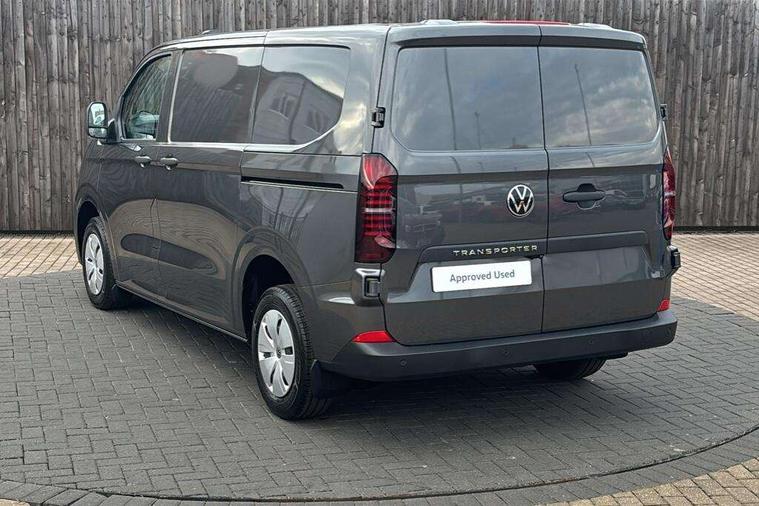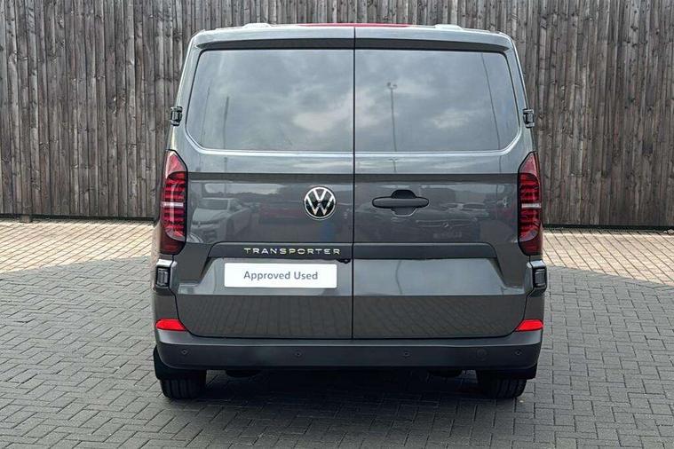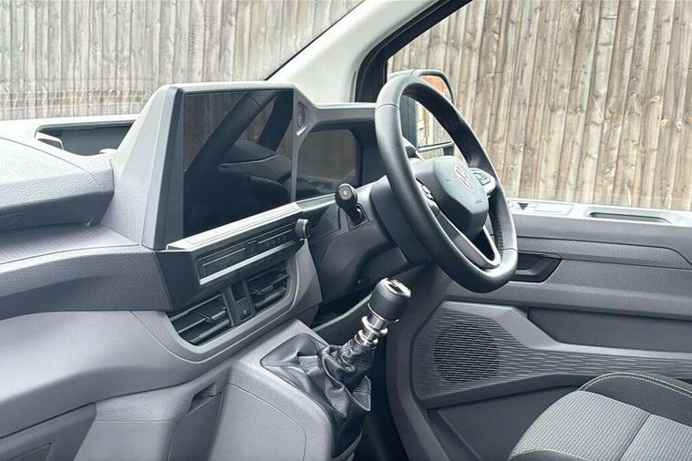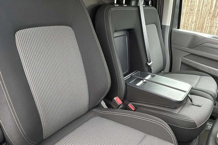 12" digital drivers display, 13" touchscreen infotainment display with wireless app connect and DAB radio, 5G Modem, Apple CarPlay and Android Auto, Cruise control, Dynamic road sign display, eCall emergency system, Electromechanical speed sensitive power steering, height and longitudinally adjustable steering column, Lane assist, Preparation of VW connect and connect plus, Wrong way driver warning, 4 speakers - 2x dashboard, 2x cab doors, Body coloured door handles, Heat reflecting side window glass, Mud flaps front and rear, Rear Transporter nameplate in black grained decorative trim, Vehicle opening configuration 1x 1st row of seats, 2x all doors, 2x 15-W USB data/charging ports in dashboard and 1x USB-C, 1x USB-A center bottom, 2x LED lights in load compartment, 3 spoke leather wrapped multi function steering wheel, 4 way height and tilt adjustable head restraints, Black plastic scuff plate for sliding door in cargo without illumination, Cabin interior lighting, Lashing rings for reinforced floor covering, Leatherette gear lever, Narrow centre console with cup holder and compartment for mobile phone, Overhead storage compartment, Roof grab handle on front passenger side, Rubber floor covering in cab, Striped fabric upholstery, Without passenger seats in load compartment, Driver and front passenger airbag with front passenger airbag deactivation, Dual tone horn, Front and curtain airbags for driver and front passenger, Seat belt pretensioner for driver seat, Anti theft alarm system with interior monitoring in cab, backup horn and towing protection, Electronic immobiliser, Preparation for alcohol ignition interlock, 5+ Promise, Alternator - 230A, Electronic stability control, ABS, ASR with deactivation button, hill start assist and brake assist system,