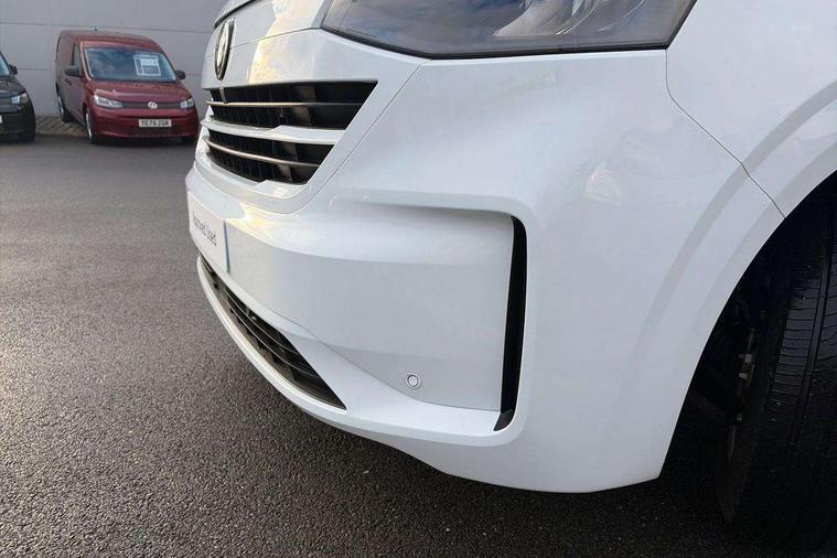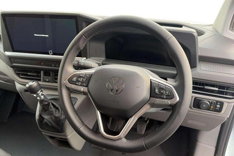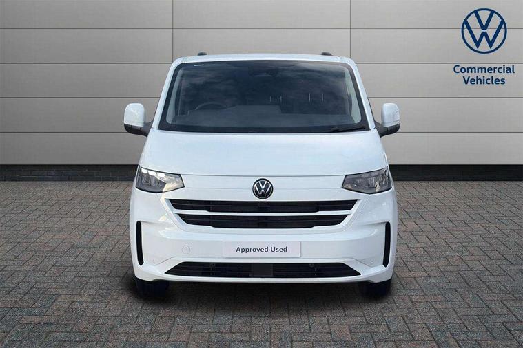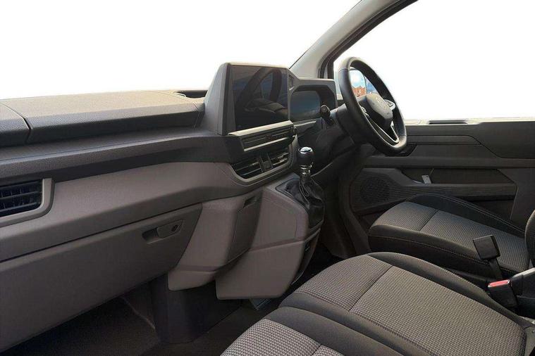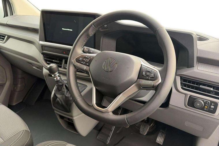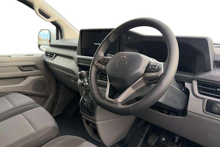 12" digital drivers display, 13" touchscreen infotainment display with wireless app connect and DAB radio, 5G Modem, Adaptive cruise control, Apple CarPlay and Android Auto, Dynamic road sign display, eCall emergency system, Electromechanical speed sensitive power steering, height and longitudinally adjustable steering column, Lane and blind spot assist with exit warning system, Preparation of VW connect and connect plus, Wireless mobile phone charging, Wrong way driver warning, Body colour bumpers, Body coloured door handles, Body coloured door mirrors, Body coloured radiator grille, Electrically heated, adjustable and folding door mirrors, Heat reflecting side window glass, Mud flaps front and rear, Rear Transporter nameplate in black grained decorative trim, Vehicle opening configuration 1x 1st row of seats, 2x all doors, 12V outlet in centre console and 12V outlet on rear right D-pillar, 2x 15-W USB data/charging ports in dashboard and 1x USB-C, 1x USB-A center bottom, 2x LED lights in load compartment, 3x additional super bright LED lights in load compartment, 4 way height and tilt adjustable head restraints, 5 additional USB-C charging ports, Black plastic scuff plate for sliding door in cargo without illumination, Cabin interior lighting, Glasses compartment in driver side roof, Grab handle on A-pillar passenger side, Illuminated lockable glovebox, Lashing rings for reinforced floor covering, Leatherette gear lever, Narrow centre console with cup holder and compartment for mobile phone, Overhead storage compartment, Rubber floor covering in cab, Striped fabric upholstery, Without passenger seats in load compartment, Driver and front passenger airbag with front passenger airbag deactivation, Dual tone horn, Front and curtain airbags for driver and front passenger, Seat belt pretensioner for driver seat, Anti theft alarm system with interior monitoring in cab, backup horn and towing protection, Electronic immobiliser, Lockable wheel bolts, Preparation for alcohol ignition interlock, 5+ Promise, Alternator - 230A, Electromechanical brake booster, Electronic stability control, ABS, ASR with deactivation button, hill start assist and brake assist system,