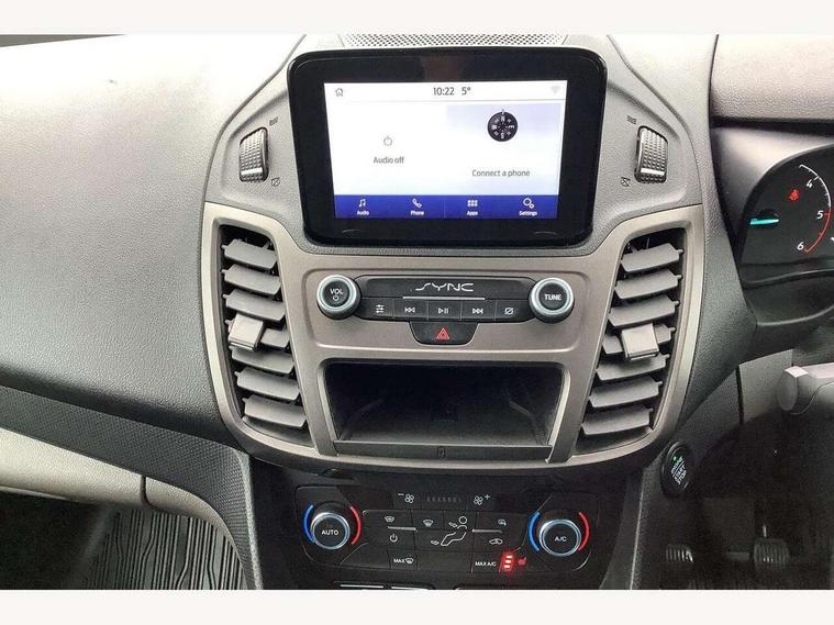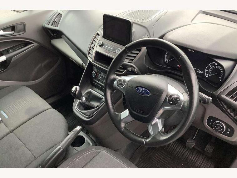 Easy fuel capless refuelling system, Eco coach, Embedded modem, PAS, Rear view camera, Trip computer, Steering wheel mounted audio controls, 180 degree rear cargo doors, Active grille shutter, Automatic headlamps with follow me home with automatic windshield wiper, Black mesh grille, Body coloured door handles, Body coloured lift/decklid exterior handles, Body coloured plastic front bumper, Body coloured rear bumper end caps, Daytime running lights, Driver one touch up/down power windows, Dual power heated fold back mirrors, Electric windshield defroster, Emergency brake light flashing, Front fog lights with adaptive cornering, Front lip spoiler, High mounted stop lamp, Hinged rear cargo door, Instrument panel stowage box, Moulded colour 3 bar radiator grille, Non infra red reflection windscreen, Rear fog lights, Rear tinted glass, Roof rails, Self coloured exterior mirror finish, Self coloured rear bumper, Wide side protection mouldings, 12V socket, 2 front cupholders, 2 way front headrestraints, 4 way manually adjustable driver seat with lumbar support, Bright interior door handles, Centre console, Complete rear trim board, Configurable interior light, Door trim panel level 2, Driver seat rotary recliner, Driver sunvisor with mirror and ticket pocket, Dual zone electronic automatic temperature control, Front grab handles, Glove box lights, Glovebox with lid, Header courtesy lights with 2 map lights, High series analog cluster, High series fabric soft door armrest, Leather steering wheel, LED load compartment light, Nunatak In Combo - cloth upholstery, Overhead storage compartment, Passenger seat rotary recliner, Passenger sunvisor, Pollen filter without carbon filter, Reach and rake adjustable steering column, Refrigerant R134a, Rubber partial floor covering, Sensico gear shift knob, Key combination pack 2 - Transit Connect, Black seat belt, Child proof rear door locks, Driver airbag restraint, Enabled door auto relocking, Front active seat belts, Front seat belt adjuster, Configurable Unlocking, Immobiliser, Keyless start, Locking wheel nuts, Power door dead locks, Remote central double locking, Thatcham category 1 alarm with 2nd remote key, ABS, Auto start/stop system, Emergency brake assist, Heavy duty battery, Hill start assist, Power 4-wheel disc, Standard duty alternator, Traction control, 17" X 6.5 painted foundry black alloy wheels with machined finish, Less wheel cover, Standard tire tread,