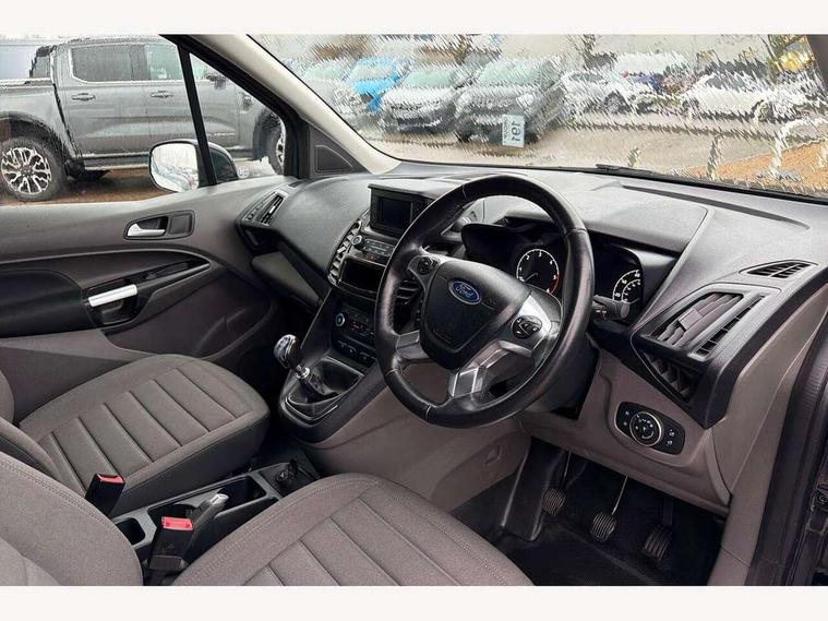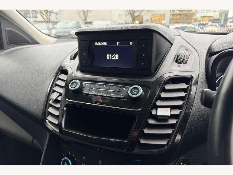 Easy fuel capless refuelling system, Eco coach, Embedded modem, Mid series analog cluster, PAS, Trip computer, Steering wheel mounted audio controls, 180 degree rear cargo doors, Active grille shutter, Automatic headlamps with follow me home with automatic windshield wiper, Body colour side protection mouldings, Body coloured door handles, Body coloured door mirrors, Body coloured lift/decklid exterior handles, Body coloured plastic front bumper, Body coloured rear bumper end caps, Daytime running lights, Driver one touch up/down power windows, Dual power heated fold back mirrors, Electric windshield defroster, Emergency brake light flashing, Front fog lights with adaptive cornering, Front lip spoiler, High mounted stop lamp, Hinged rear cargo door, Instrument panel stowage box, Moulded colour 3 bar radiator grille, Non infra red reflection windscreen, Rear fog lights, Rear tinted glass, Self coloured rear bumper, 12V socket, 2 front cupholders, 2 way front headrestraints, 4 way manually adjustable driver seat with lumbar support, Bright interior door handles, Centre console, Complete rear trim board, Configurable interior light, Door trim panel level 2, Driver seat rotary recliner, Driver sunvisor with mirror and ticket pocket, Front grab handles, Glove box lights, Glovebox with lid, Header courtesy lights with 2 map lights, High series fabric soft door armrest, Leather steering wheel, LED load compartment light, Ligne cloth upholstery, Overhead storage compartment, Passenger seat rotary recliner, Passenger sunvisor, Pollen filter without carbon filter, Reach and rake adjustable steering column, Refrigerant R134a, Rubber partial floor covering, Sensico gear shift knob, Key combination pack 2 - Transit Connect, Black seat belt, Child proof rear door locks, Driver airbag restraint, Enabled door auto relocking, Front active seat belts, Front seat belt adjuster, Configurable Unlocking, Immobiliser, Keyless start, Locking wheel nuts, Power door dead locks, Remote central double locking, Thatcham category 1 alarm with 2nd remote key, ABS, Auto start/stop system, Emergency brake assist, Heavy duty battery, Hill start assist, Power 4-wheel disc, Standard duty alternator, Traction control, 16" 6.5 7 spoke aluminium alloy wheels, 205/60 R16 tyre, Less wheel cover, Standard tire tread,