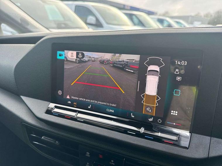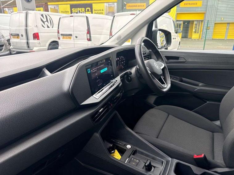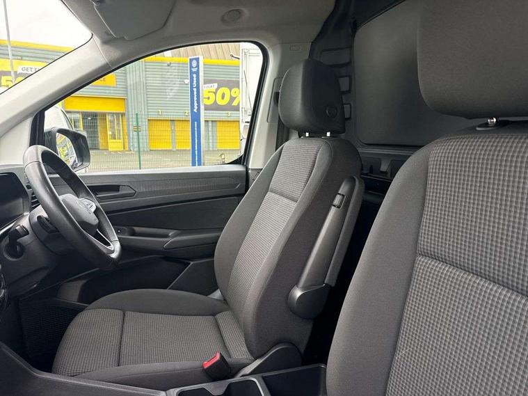 Bluetooth - Mobile phone interface, Car2X technology, Driver alert system, eCall emergency system, Intelligent Speed Assist, Lane assist, Seatbelt warning indicator, Service indicator, Start-stop system with regenerative braking, 2 USB interfaces type C in dashboard, App-Connect - Wireless for Apple CarPlay, DAB Radio, We Connect Plus Preparation, Automatic hazard light activation under emergency braking, Black painted exterior mirror housings, body-colored door handles and Silver sliding door rail, Body coloured bumpers, Electric front windows, LED rear combination lights, LED rear tail lights, Roof rail preparation, Windscreen wiper with variable intermittent delay and wash-wipe system, Dimming breakaway interior rear view mirror, Electronically controlled heating system, ergoComfort seats for driver, Interior light in headliner incorporting LED technology, Lockable glove compartment door with light, Manual heating and ventilation system, Manual height adjustment for front seats and seat cushion inclination and depth adjustment on drivers seat, Multi function leather steering wheel, Power-adjustable lumbar support for drivers seat, Reach and rake adjustable steering column, Six lashing points for securing loads, Steering wheel paddle shift, Storage compartments under driver and front passenger seats, Sun visors with mirror, airbag label on front passenger sun visor, Winter pack plus - Caddy, 3-point seat belts in front, with pretensioner and height adjustment, Driver and front passenger airbag with front passenger airbag deactivation, Tyre pressure monitoring system, Anti-theft alarm system, interior monitoring, backup horn, and towing protection, Electronic engine immobiliser, Remote central locking with deadlocks, interior locking, Anti locking braking system (ABS), Automatic post collision braking system, Brake assist, Diesel particulate filter, Electric parking brake with auto hold function, Electronic brake force distribution (EBD), Electronic differential lock (EDL), Electronic stabilisation programme (ESP), Engine drag torque control (MSR), Hill hold assist, Traction control system (TCS), Decorative beige birch vein inserts, Wheel bolts with anti-theft protection (unlockable),