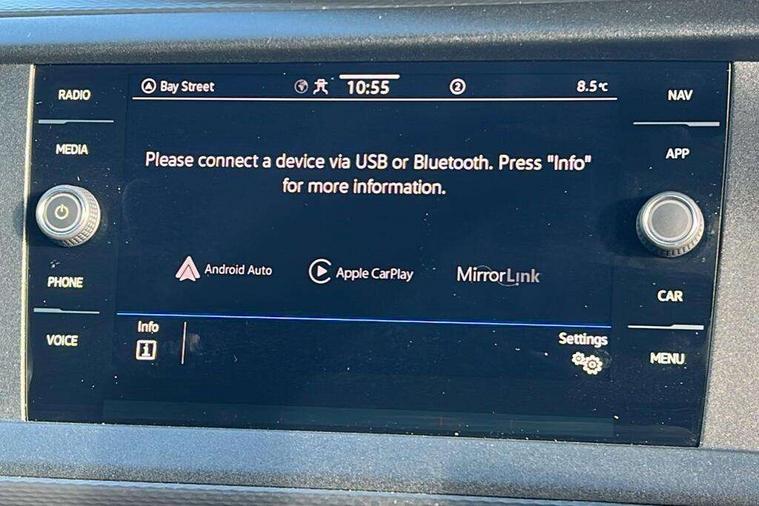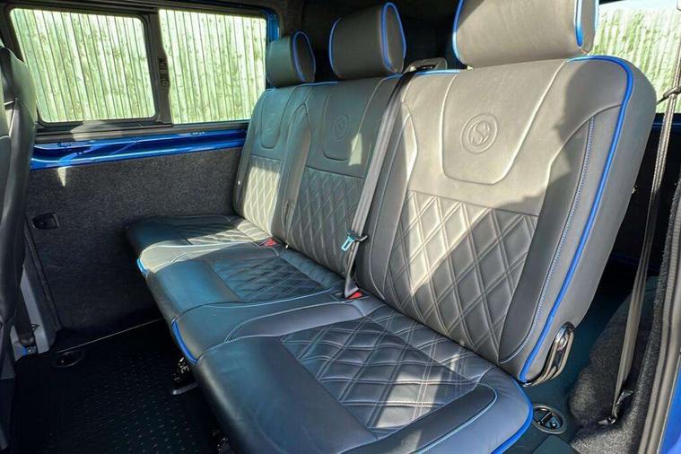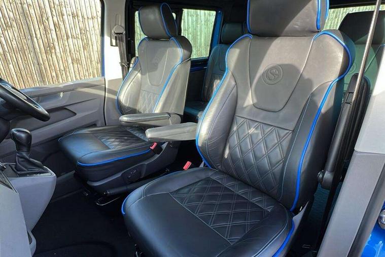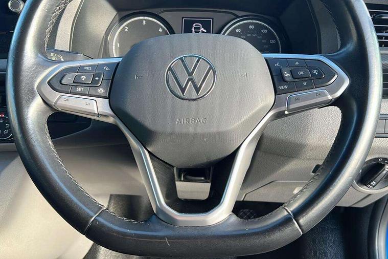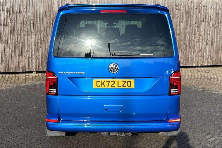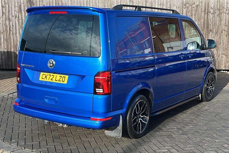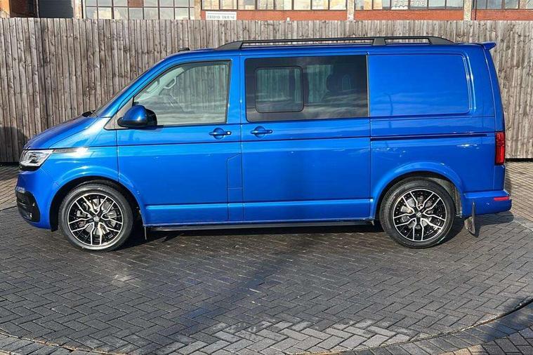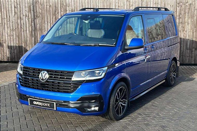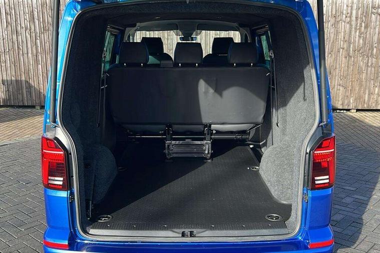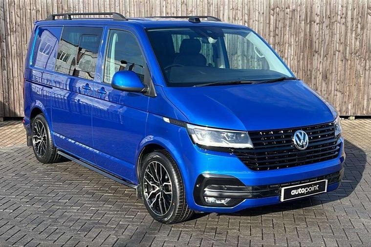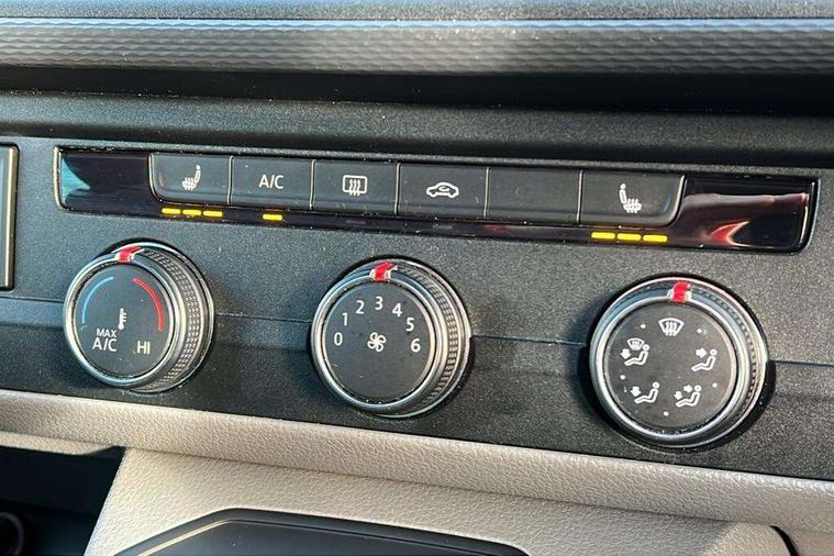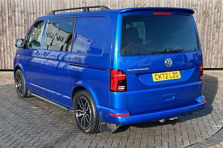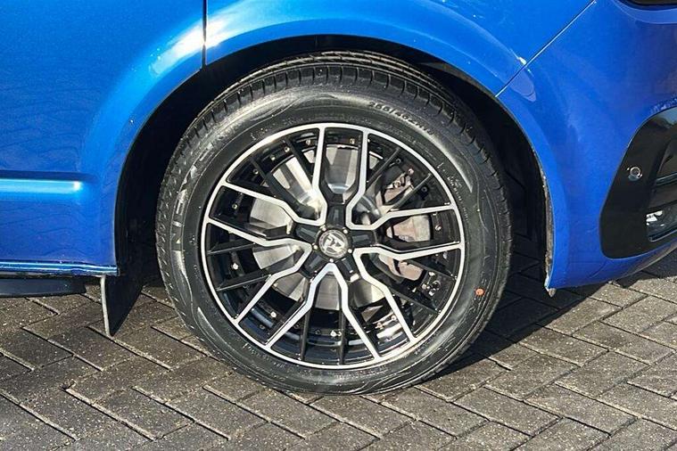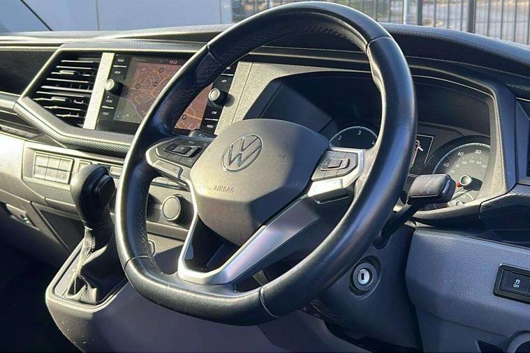 Adaptive cruise control, Child seat anchors ISOFIX and top tether in 2nd row of seats, Cross wind assist, Dimmable illuminated instruments, Driver alert with black and white multi function display plus, eCall emergency system, Forward collision warning front assist with autonomous emergency braking, Headlight range control, Mobile phone interface, Without voice control, 2 USB interfaces type C in dashboard, 4 speakers with 2 tweeters and 2 woofers, Composition colour radio with 6.5" touchscreen, Digital radio reception (DAB+), Volkswagen app connect, Automatic headlight control, leaving home and manual coming home feature, Front fog lamps with cornering light, Green heat insulating glass, Heated front windscreen, Illuminated steps in passenger/load compartment, Left convex exterior mirror, Power folding adjustable door mirrors with separately heated, Privacy glass from the B-pillar and heat-insulating glass in front, Radiator grille with 2 chrome trims, Rear window with heated insulating glass, heated rear window wiper and washer system, Right convex exterior mirror, Tailgate closing with unlatching from the inside, Transporter nameplate on the rear fender, Windshield wiper intermittent control with rain sensor for windshield wipers, Without adhesive film, 3 spoke leather wrapped multi function steering wheel, Additional sound deadening measures in cab and passenger compartment, Auto dimming breakaway interior rear view mirror, Comfort headliner in cab, hardboard roof trim in passenger and load compartment, Dust/pollen filter, Folding grab handles and storage compartments on cab seats, reading light, Front seats on the right in 1st row of seat, Glove compartment with illumination, Heavy duty tool kit and jack, Interior plastic loading edge protection, Lashing rings for load restraint system, LED Interior lighting in load and passenger compartment, Medium height for vehicles with window aperture hardboard side trim panels in passenger/load compartment, Refrigerant R134a, Standard lower part dashboard in palladium, Without partition, Without seats in 3rd row of seats, Comfort pack - Transporter, Exterior pack without fog light- Transporter, Light and vision pack - Transporter, Non smoker pack - Transporter, 3 point height adjustable seat belts on outer seats cab with electric pretensioners, Driver and front passenger airbag with front passenger airbag deactivation, Power operated child safety lock, Warning buzzer and light for driver seat belt not fastened, Anti theft alarm system with interior monitoring in cab, backup horn and towing protection, Lockable wheel bolts, 16" chassis with 16" brake system, Diesel particulate filter, Electronic stability control, ABS, ASR with deactivation button, hill start assist and brake assist system, Speed limiter, Start/stop system with regenerative breaking, 17" Devonport silver alloy wheels, Wheel trims,