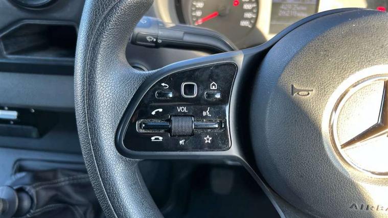 ASSYST - Flexible servicing system, Comfort overhead control panel, Communication module (LTE) for digital services, Cruise control, Digital clock, Outside temperature gauge, PAS, Rev counter, Speedometer, Terminal strip for electrical connection, Trip computer, 2 speakers, Digital radio (DAB), USB connection, Adaptive brake lights, Delete parking lamp, Electric front windows, Headlight assistant, Interior rear view mirror, Lights for left hand traffic, Longitudinal member reinforcement, 2 sunvisors plus shaded windscreen centre, A4 oddments tray on centre of dash, Ashtray, Cab headlining, Cigarette lighter, Compartment under fold-up passenger seat, Front door pockets with bottle holder, Height and reach adjustable steering wheel, Hinged cover for storage compartment, Hydraulic Jack, Locking glovebox, Map reading lamp, Multi function steering wheel, Pre-installation for switch panel, Shelves to left and right on instrument panel, 3 point inertia reel belt on all seats, Attention assist, Breakdown management, Crosswind assist, Deactivation of bulb failure indicator, Driver's airbag, Mercedes-Benz emergency call system, Seat belt warning for driver's seat, Anti-theft alarm system, Double locking, Immobiliser, Remote central locking, VIN visible from outside, ABS, Brake assist, EBD, ESP, Fuel filter with water separator, Hill start assist, Jump start contact, Particulate filter (DPF), Resistance-optimised tyres, Spare wheel bracket below frame end, Summer tyres,