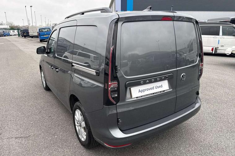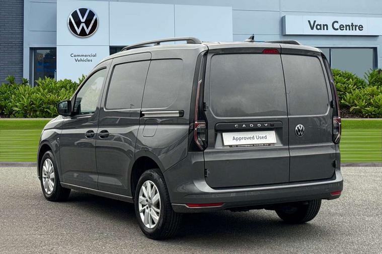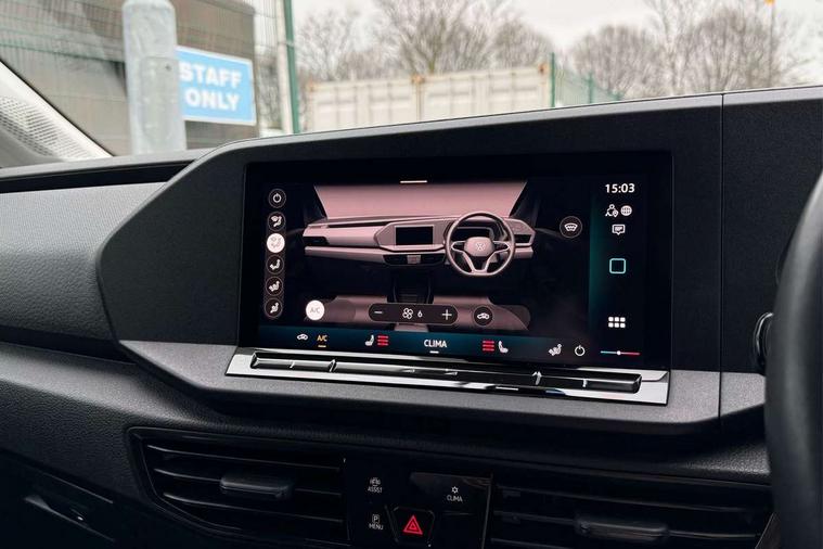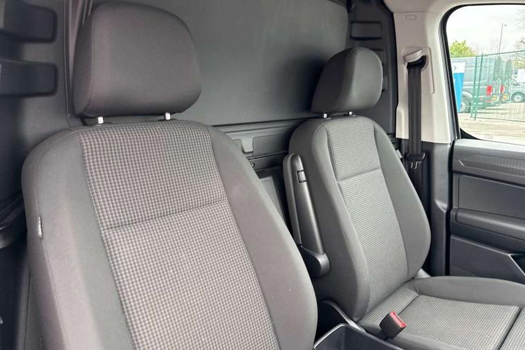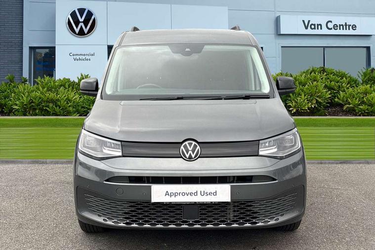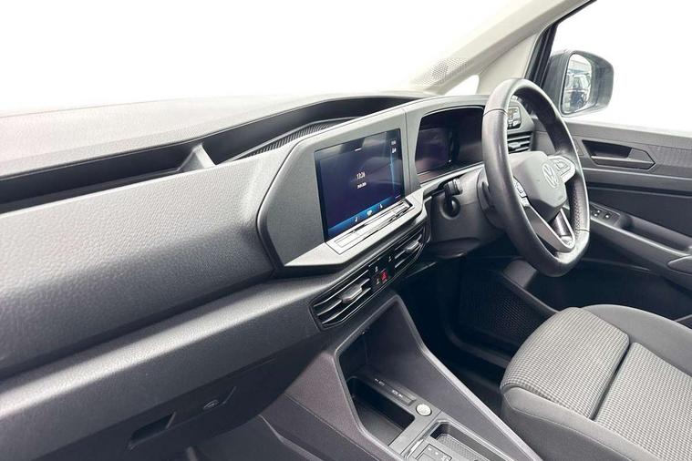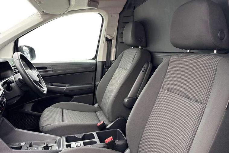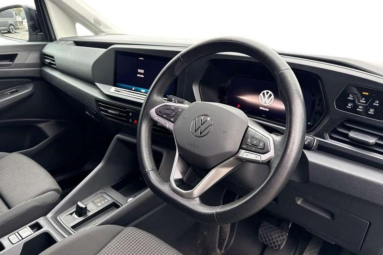 Bluetooth - Mobile phone interface, Car2X technology, Driver alert system, eCall emergency system, Intelligent Speed Assist, Lane assist, Seatbelt warning indicator, Service indicator, Start-stop system with regenerative braking, 2 USB interfaces type C in dashboard, App-Connect - Wireless for Apple CarPlay, DAB Radio, We Connect Plus Preparation, Automatic hazard light activation under emergency braking, Black painted exterior mirror housings, body-colored door handles and Silver sliding door rail, Body coloured bumpers, Electric front windows, LED rear combination lights, LED rear tail lights, Roof rail preparation, Windscreen wiper with variable intermittent delay and wash-wipe system, Dimming breakaway interior rear view mirror, Electronically controlled heating system, ergoComfort seats for driver, Interior light in headliner incorporting LED technology, Lockable glove compartment door with light, Manual heating and ventilation system, Manual height adjustment for front seats and seat cushion inclination and depth adjustment on drivers seat, Multi function leather steering wheel, Power-adjustable lumbar support for drivers seat, Reach and rake adjustable steering column, Six lashing points for securing loads, Steering wheel paddle shift, Storage compartments under driver and front passenger seats, Sun visors with mirror, airbag label on front passenger sun visor, Winter pack plus - Caddy, 3-point seat belts in front, with pretensioner and height adjustment, Driver and front passenger airbag with front passenger airbag deactivation, Tyre pressure monitoring system, Anti-theft alarm system, interior monitoring, backup horn, and towing protection, Electronic engine immobiliser, Remote central locking with deadlocks, interior locking, Anti locking braking system (ABS), Automatic post collision braking system, Brake assist, Diesel particulate filter, Electric parking brake with auto hold function, Electronic brake force distribution (EBD), Electronic differential lock (EDL), Electronic stabilisation programme (ESP), Engine drag torque control (MSR), Hill hold assist, Traction control system (TCS), Decorative beige birch vein inserts, Wheel bolts with anti-theft protection (unlockable),