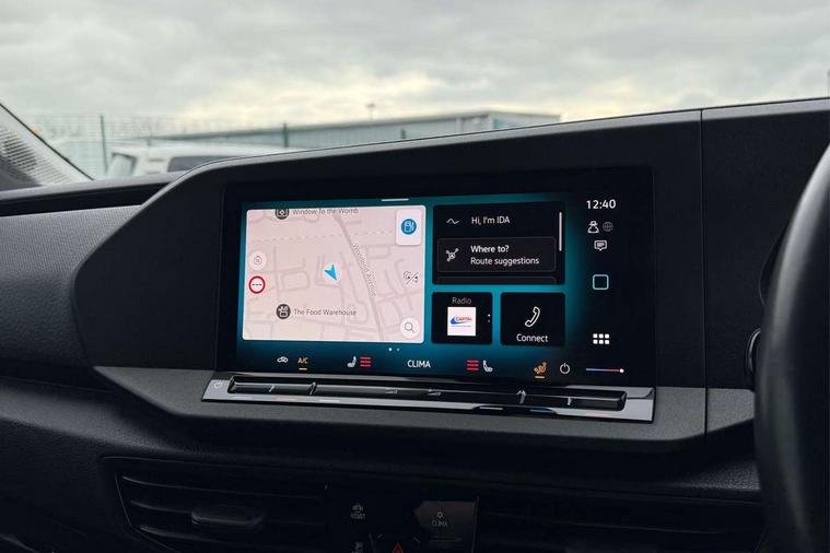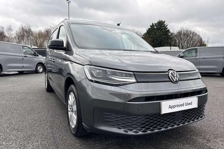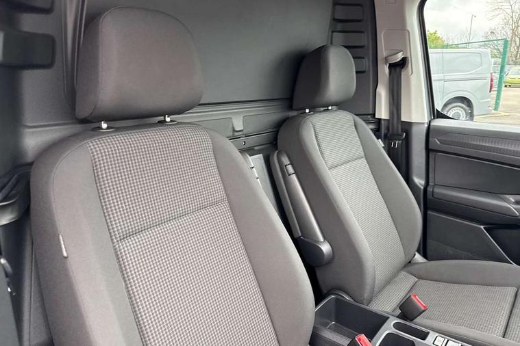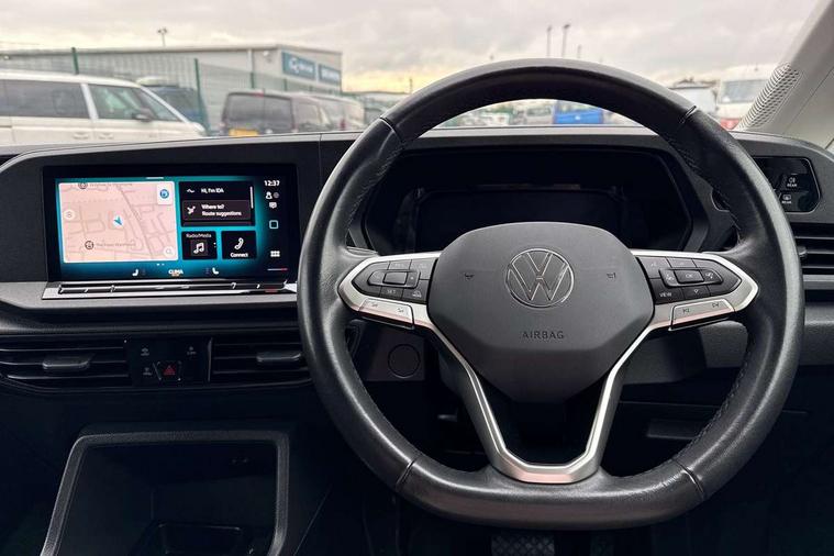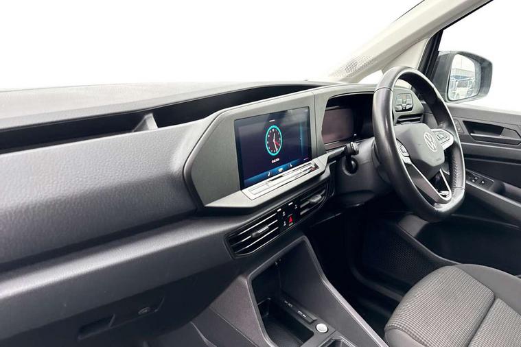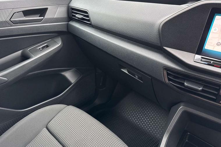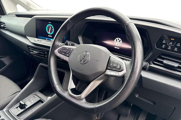 Bluetooth - Mobile phone interface, Car2X technology, Driver alert system, eCall emergency system, Intelligent Speed Assist, Lane assist, Seatbelt warning indicator, Service indicator, Start-stop system with regenerative braking, 2 USB interfaces type C in dashboard, App-Connect - Wireless for Apple CarPlay, DAB Radio, We Connect Plus Preparation, Automatic hazard light activation under emergency braking, Black painted exterior mirror housings, body-colored door handles and Silver sliding door rail, Body coloured bumpers, Electric front windows, LED rear combination lights, LED rear tail lights, Roof rail preparation, Windscreen wiper with variable intermittent delay and wash-wipe system, Dimming breakaway interior rear view mirror, Electronically controlled heating system, ergoComfort seats for driver, Interior light in headliner incorporting LED technology, Lockable glove compartment door with light, Manual heating and ventilation system, Manual height adjustment for front seats and seat cushion inclination and depth adjustment on drivers seat, Multi function leather steering wheel, Power-adjustable lumbar support for drivers seat, Reach and rake adjustable steering column, Six lashing points for securing loads, Steering wheel paddle shift, Storage compartments under driver and front passenger seats, Sun visors with mirror, airbag label on front passenger sun visor, Winter pack plus - Caddy, 3-point seat belts in front, with pretensioner and height adjustment, Driver and front passenger airbag with front passenger airbag deactivation, Tyre pressure monitoring system, Anti-theft alarm system, interior monitoring, backup horn, and towing protection, Electronic engine immobiliser, Remote central locking with deadlocks, interior locking, Anti locking braking system (ABS), Automatic post collision braking system, Brake assist, Diesel particulate filter, Electric parking brake with auto hold function, Electronic brake force distribution (EBD), Electronic differential lock (EDL), Electronic stabilisation programme (ESP), Engine drag torque control (MSR), Hill hold assist, Traction control system (TCS), Decorative beige birch vein inserts, Wheel bolts with anti-theft protection (unlockable),