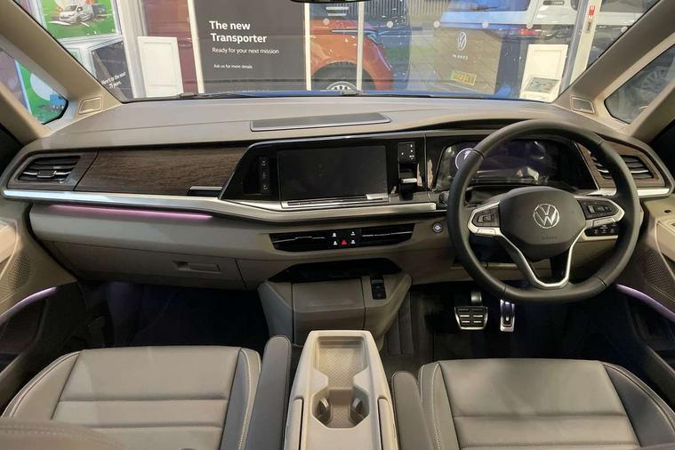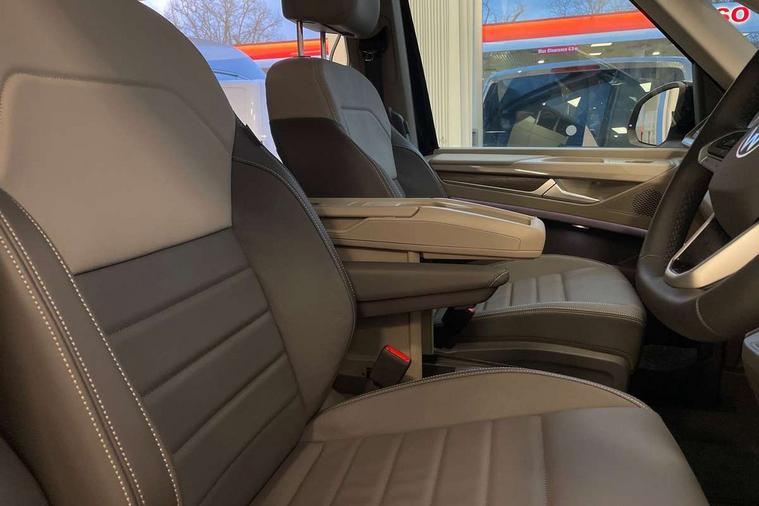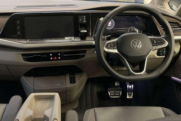 Adaptive cruise control with C2X including front assist and city emergency braking system, Digital Cockpit Pro with 10.25" colour display with adaptable display includes navigation map display, telephone contact images and audio information, Discover media pro navi system with 10" colour touch incl DAB+radio/appconnect for apple carplay/android auto/streaming and internet/gesture control, Driver alert system, Dynamic road sign display, eCall emergency system, Electrically-operated tailgate opening and closing function (Easy open), operated via foot movement under rear tailgate, Emergency assist, Front Cross Traffic Alert, Lane change system with side assist including blind spot monitor, rear traffic alert and exit warning system, Lane keeping system Lane Assist, Mobile phone interface, PAS, Semi-automated driving assistance, Tailgate, Travel assist, Voice control system including Alexa web app, We connect preparation, Electronic differential lock, 2 USB-C ports in front and 4 USB-C ports in passenger compartment, Additional interior noise reduction measures, Advanced high beam control dynamic light assist for LED matrix headlamps, Automatic headlight control with welcome home lights, Body coloured exterior door handles, Break away auto dimming rear view interior mirror, Chrome trim decorative strip mid-way on side and rear, Dynamic headlight range control with dynamic cornering light, Electrically adjustable, heated and folding door mirrors, Front fog lights, Glossy black painted radiator grille with 2 illuminated chrome trims, Heated rear window with window wiper and washer system, Heated windscreen, High gloss black exterior mirror housing, IQ.Light LED matrix headlamps with LED separate daytime running light, Laminated safety glass windshield, heat and sound insulating, LED 3rd brake lamp, LED rear combination lamps, Rear wiper, Stainless steel tailgate trim, Surround lighting in door area and tailgate with logo projection in door area, Windshield wiper intermittent control with rain sensor, 1 x 12V sockets on the dash panel, 12V socket in passenger compartment, 3 seat bench in 3rd row, 30 colours ambient interior lighting and tailgate surround lighting, 7 single seats removable/movable, Carpet mats in cab, Climatronic 3 zone air conditioning with additional control panel in passenger compartment, Front and rear head restraints, Grab handles on A pillar for access, on driver and front passenger side, Height adjustable seats, Height and longitudinal adjustment steering wheel with gear shift paddles, Illumination lockable glovebox compartment, ISOFIX (including i-size) and top tether in all seats in 2nd and 3rd rows, LED luggage compartment lighting X 2, Load compartment partition to 20kg with bag hooks and luggage net, Luggage compartment lid power latching with unlatching from inside, Multifunction leather steering wheel with tiptronic, Reinforced carpet floor covering in passenger compartment, Removable armrests for front seats with power adjustable lumbar support and folding table for 2nd row passenger seats, Single front passenger seat, Slidable multifunction table/centre console with 3 cup holders, Stainless steel pedals, Storage compartment under the 2nd and 3rd row seat and two waste bins, Sun visors with illuminated vanity mirror, ticket holder on driver side with airbag warning label on sunvisor and B-pillar, Easy open package - Multivan, 3x3 point rear seat belts, ABS, Automatic post collision braking system, Autonomous emergency braking front assist with pedestrian and cyclist monitoring, Driver and front passenger airbag with front passenger airbag deactivation, Electric childproof lock, Electronic stability control (ESC) and Electromechanical brake booster, ESP, First aid kit with warning triangle and safety vest, Front disc brakes, Hill hold assist, Seat belt warning for the drivers and all passengers seats if unfastened, Side and curtain airbags for driver and front passenger, curtain airbags for outer seats in rear, centre airbag in front, Single tone horn, Traction control, Tyre pressure monitoring system, Anti theft alarm system with interior monitoring in cab, backup horn and towing protection, Central locking system with interior control and safe lock, Keyless advanced with keyless entry, Start/stop button on centre console, Dark woodgrain optic decorative inserts,