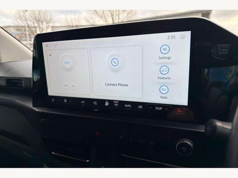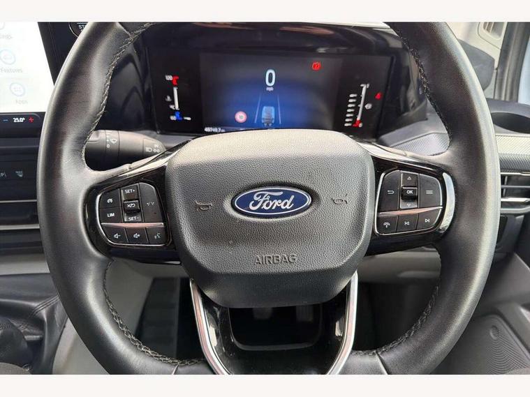 13" Touchscreen, 5G embedded modem, AECS NO SMS/Roll Detect 2G, PAS, Tyre pressure monitor, SYNC 4 - Android Auto/Apple Car Play, advance speech recognition, over the air update capability, Automatic headlights, Body coloured door mirrors, Body coloured front bumper, Body coloured rear bumpers, Daytime running lights, Electric front windows with one touch facility for driver and front passenger, Fixed DSS LED headlamps with auto high headlamp, Front splash guards, Low roof line, Quickclear front window defroster, Rear cargo hinged door, Rear splash guards, Trailer sway control, 8 Load compartment tie down loops, Courtesy light, Interior grab handle with driver's sunglasses holder, LED lights, Locking glove box lid, Sensico gearshift knob, Super bright load compartment lights, Passenger airbag, 2 remote keys, Alcohol Interlock wiring preparation pack, Keyless entry and start, Locking wheel lug nut, Thatcham category 1 alarm, 20L AdBlue tank, ABS, Diesel particulate filter, ESP, Hill launch assist, Traction control, 16" Steel spare wheel, Full wheelcovers,