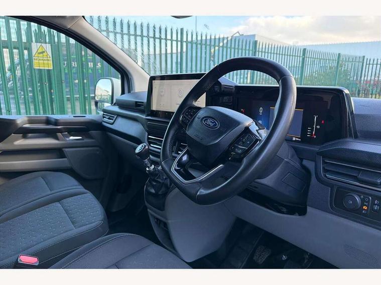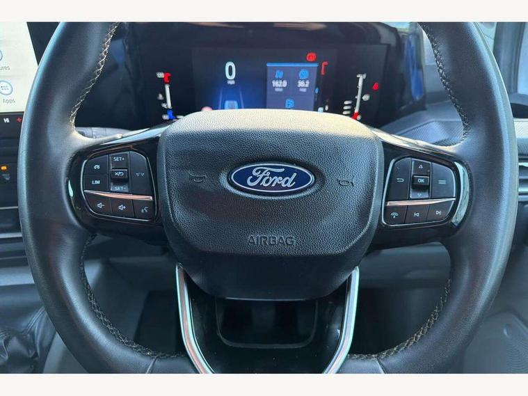 13" Touchscreen, 5G embedded modem, AECS NO SMS/Roll Detect 2G, PAS, Tyre pressure monitor, SYNC 4 - Android Auto/Apple Car Play, advance speech recognition, over the air update capability, Body coloured door mirrors, Body coloured front bumper, Body coloured rear bumpers, Daytime running lights, Electric front windows with one touch facility for driver and front passenger, Front splash guards, Low roof line, Quickclear front window defroster, Rear cargo hinged door, Rear splash guards, Tinted glass, Trailer sway control, 6 Load compartment tie down loops, Courtesy light, Interior grab handle with driver's sunglasses holder, LED lights, Locking glove box lid, Sensico gearshift knob, Super bright load compartment lights, Passenger airbag, 2 remote keys, Alcohol Interlock wiring preparation pack, Configurable locking 1, Keyless entry and start, Locking wheel lug nut, Power door dead locks, Speed dependant locking, Thatcham category 1 alarm, 20L AdBlue tank, ABS, Diesel particulate filter, ESP, Hill launch assist, Traction control, 16" Steel spare wheel, Full wheelcovers,