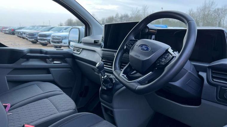 13" Touchscreen, 5G embedded modem, AECS NO SMS/Roll Detect 2G, PAS, Tyre pressure monitor, SYNC 4 - Android Auto/Apple Car Play, advance speech recognition, over the air update capability, Automatic headlights, Body coloured door mirrors, Body coloured front bumper, Body coloured rear bumpers, Daytime running lights, Electric front windows with one touch facility for driver and front passenger, Fixed DSS LED headlamps with auto high headlamp, Front splash guards, Low roof line, Quickclear front window defroster, Rear cargo hinged door, Rear splash guards, Trailer sway control, 8 Load compartment tie down loops, Courtesy light, Interior grab handle with driver's sunglasses holder, LED lights, Locking glove box lid, Sensico gearshift knob, Super bright load compartment lights, Passenger airbag, 2 remote keys, Alcohol Interlock wiring preparation pack, Keyless entry and start, Locking wheel lug nut, Thatcham category 1 alarm, 20L AdBlue tank, ABS, Diesel particulate filter, ESP, Hill launch assist, Traction control, 16" Steel spare wheel, Full wheelcovers,