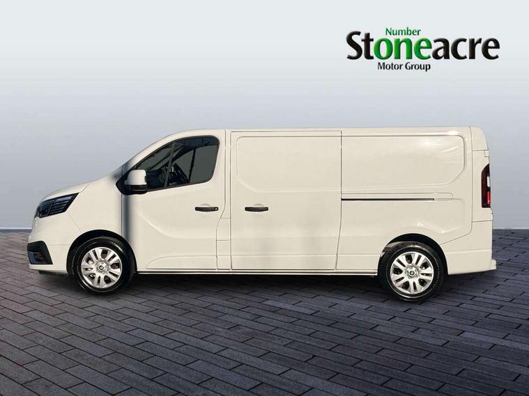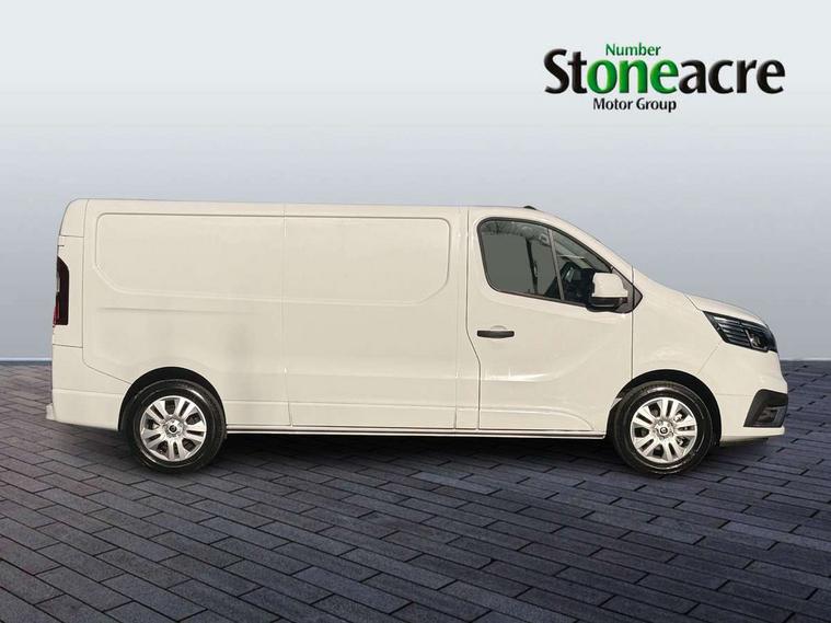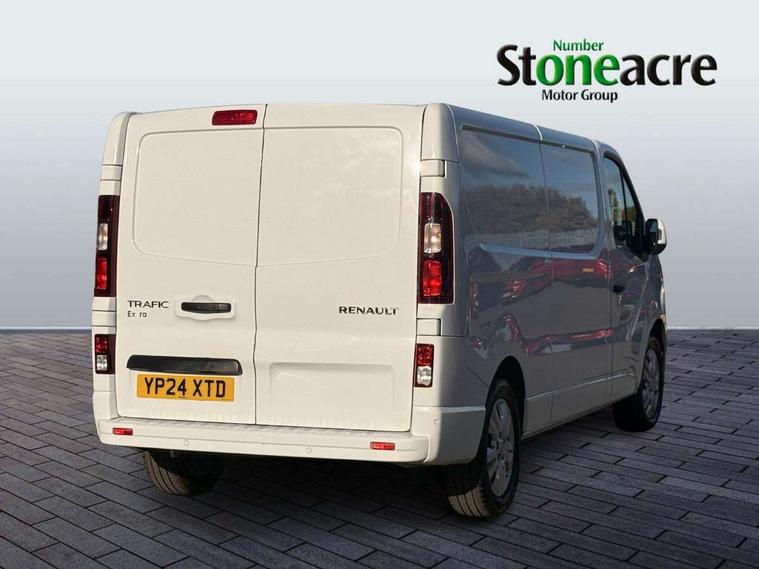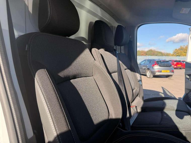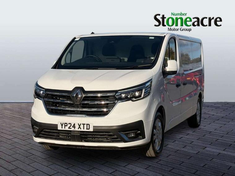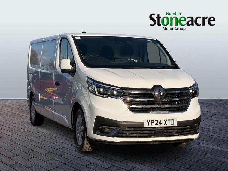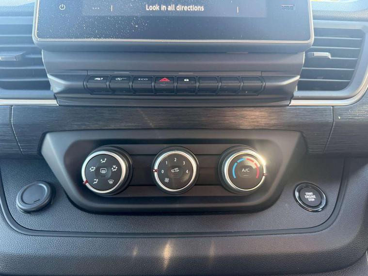4.2" TFT colour driver information display, Driver attention alert, Easy link navigation with 8" touchscreen DAB radio with bluetooth, USB + aux input, compatible with Apple CarPlay and Android Auto, ECO mode button, Gearshift indicator, Lane departure warning system, PAS, Smart phone integration with Android auto & Apple CarPlay, Traffic sign recognition, Trip computer, Automatic high beam, Body coloured door mirrors, Body coloured door rail and rear tail light column with chrome grille, Body coloured front bumper, Body coloured side mouldings, Electric folding door mirrors, Electric front windows with one touch drivers window, Front fog lights, Full LED headlights with C-shaped DRL, Roof bar fixings, Wide view mirror, 12V power socket in front, 16 load anchorage points, Closed glovebox, Height adjustable drivers seat with armrest and lumbar adjustment, Interior LED cabin lighting, Java cloth upholstery, LED load space lighting, Mobile office, Passenger seat bench with under seat storage, Premium dashboard with horizontal grain and chrome styling, Premium faux leather steering wheel, Look pack - Trafic, Visibility pack - Trafic, 3 point height adjustable seatbelts with pretensioners and load limiter, Driver and passenger seatbelt reminder, Driver's airbag, Front lateral and curtain airbags and passenger airbag with deactivation, Alarm - Thatcham T2 volumetric alarm, Deadlocking, Electronic immobiliser, Hands free key card with push button stop/start function, Keyless entry system, Remote central locking, 12v socket in loadspace, 20L AdBlue tank, 4 disc brakes, 80 litre fuel tank, ABS with EBD (Electronic Brake force Distribution), Active emergency braking system, ESC (Electronic Stability Control) with Hill Start Assist and Grip Xtend, Over speed prevention, 17" Avens alloy wheels,