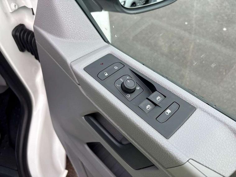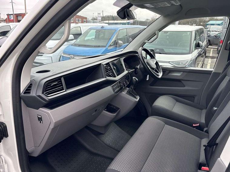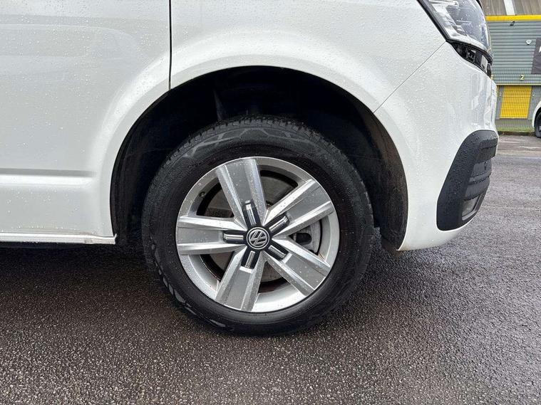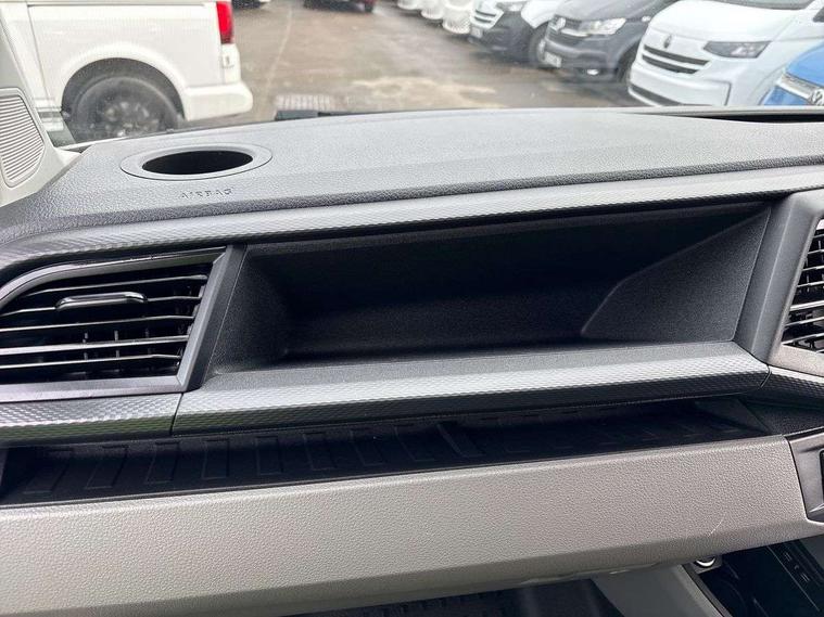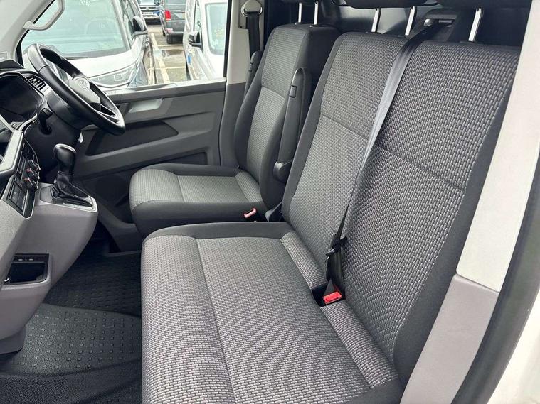 Adaptive cruise control, Cross wind assist, Dimmable illuminated instruments, Driver alert with Multi-function display plus, eCall emergency system, Forward collision warning front assist with autonomous emergency braking, Mobile phone interface, Multi function display plus with black and white display, 2 USB interfaces type C in dashboard, 4 speakers with 2 tweeters and 2 woofers, Composition colour radio with 6.5" touchscreen, Digital radio reception (DAB+), Volkswagen app connect, Closing rear wing door with unlatching from the inside, Front fog lamps with cornering light, Heat insulating glass (green) in cab and passenger/load compartment, Heated front windscreen, Left convex exterior mirror, Power folding adjustable door mirrors with separately heated, Radiator grille with 2 chrome trims, Rear wing doors without window apertures, Right convex exterior mirror, Transporter nameplate on the rear fender, 3 spoke leather wrapped multi function steering wheel, Comfort headliner in cab, hardboard roof trim in passenger and load compartment, Dust/pollen filter, Front and rear left without window closed side panel in load compartment, Front seats on the right in 1st row of seat, Heavy duty tool kit and jack, High partition, Interior plastic loading edge protection, LED Interior lighting in load and passenger compartment, Refrigerant R134a, Standard lower part dashboard in palladium, Storage compartments on cab seats and reading light, Without right side window apertures in passenger and load compartment, Comfort pack - Transporter, Exterior pack without fog light- Transporter, Light and vision pack - Transporter, Non smoker pack - Transporter, 3 point height adjustable seat belts on outer seats cab with electric pretensioners, Driver and front passenger airbag with front passenger airbag deactivation, Warning buzzer and light for driver and front passenger seat belt not fastened, Without child safety lock in passenger compartment, Anti theft alarm system with interior monitoring in cab, backup horn and towing protection, Lockable wheel bolts, 16" chassis with 16" brake system, Diesel particulate filter, Electronic stability control, ABS, ASR with deactivation button, hill start assist and brake assist system, Start/stop system with regenerative breaking, 17" Devonport silver alloy wheels,
