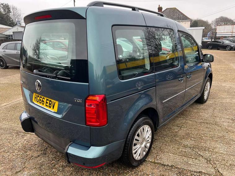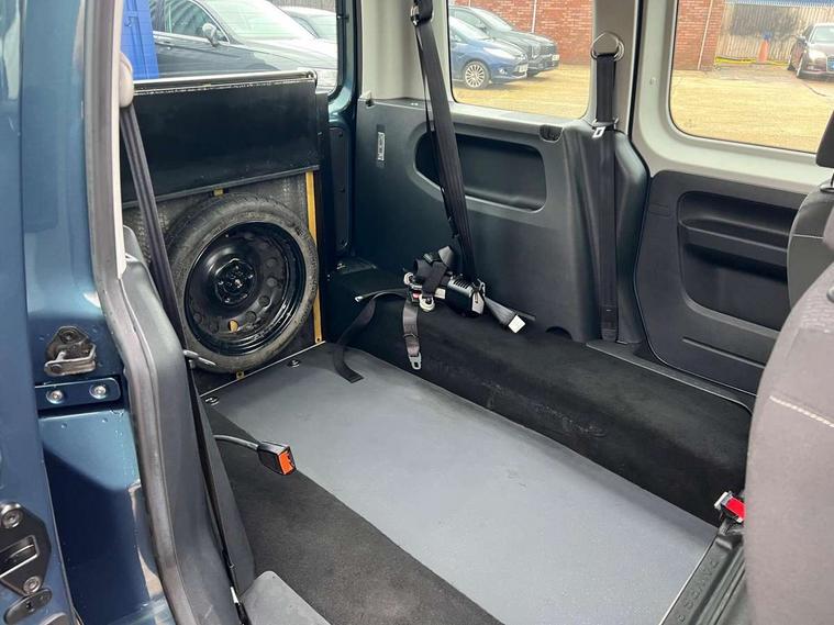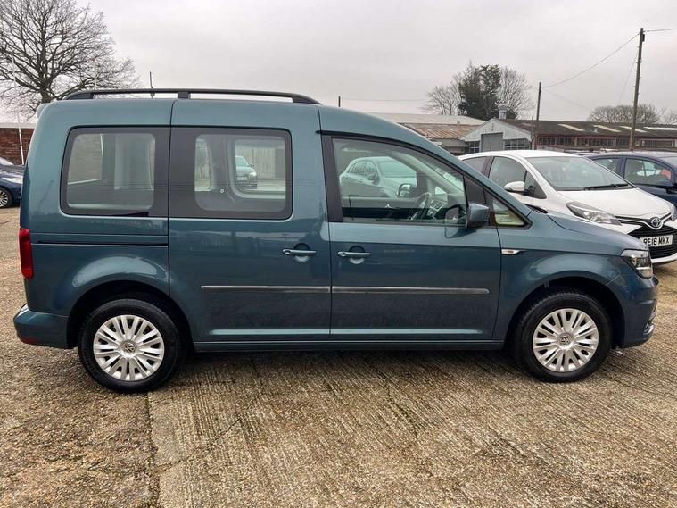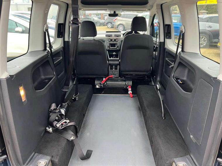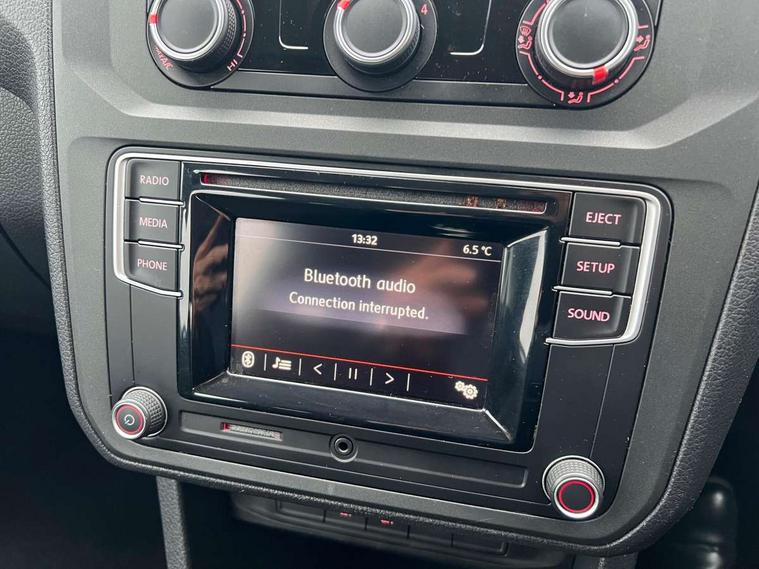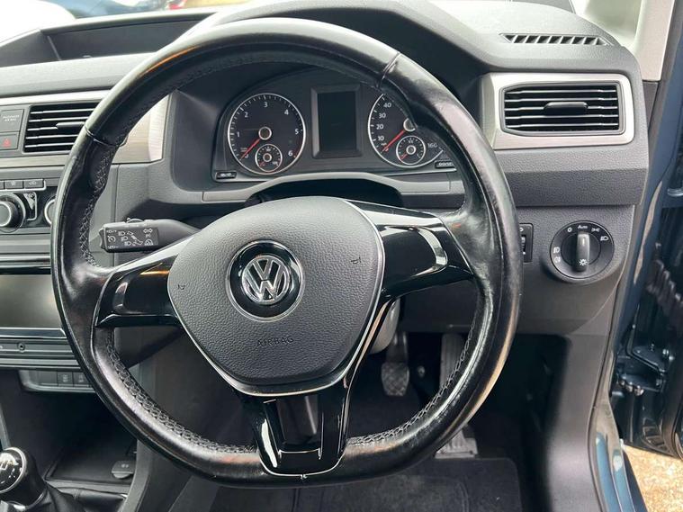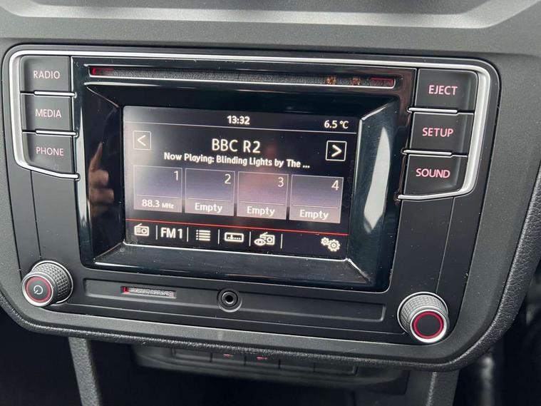 Digital clock, On board computer, Service interval indicator, Diesel particulate filter, 6 speakers, Auxiliary input socket, Radio/CD and mp3 compatibility, SD card slot, Anti dazzle rear view mirror, Body colour bumpers, Body colour door handles, Body colour door mirrors, Body colour side rubbing strips, Electric front windows, Green tinted heat insulating glass, Heated rear window, Heated windscreen, Left and right side sliding doors with sliding windows, Radiator grille with 3 louvres in chrome, Second row fixed side windows, Tailgate wash/wipe, Variable intermittent front wash/wipe, 12V power point front, 12V socket in luggage compartment, 3 seat bench in 2nd row, 4 cupholders, Adjustable dashboard illumination, Air con with air recirculation and pollen filter, Centre console storage, Electronic seatbelt pretensioners, Floor carpets, Front centre armrest, Height adjustable head restraints, Illuminated glovebox with lock, Interior light, Isofix on 2nd row outer seats, Leather gearknob and gaiter, Reach and rake adjustable steering column, Roof mounted luggage nets, Split folding rear seat, Storage under driver's seat, Sunvisors with illuminated vanity mirrors, Lights and Vision pack - Caddy, ABS + traction control, Child locks on rear doors, Curtain airbags, Driver/Front Passenger airbags, EDL, Electronic brake force distribution, ESP, Front passenger airbag deactivation, Front side airbags, Hill hold assist, Motor Slip Regulation (MSR) - Engine Drag Torque Control, Seatbelt warning lamp, Deadlocks, Thatcham category 1 alarm + immobiliser, Low rolling resistance tyres,