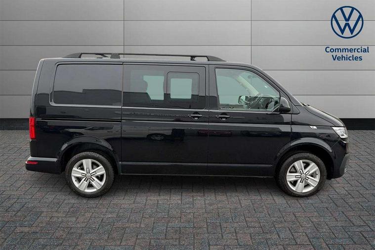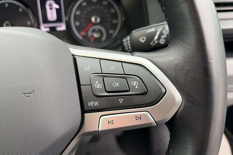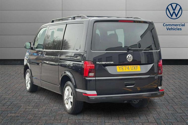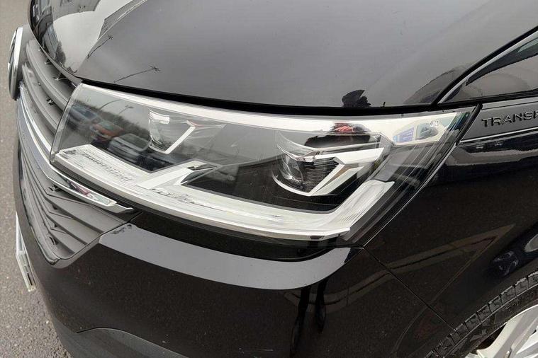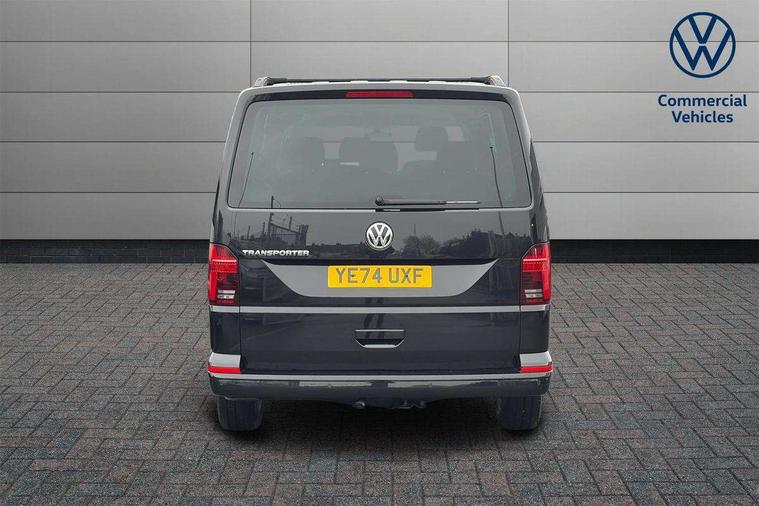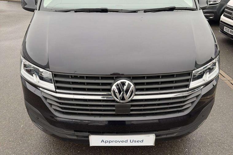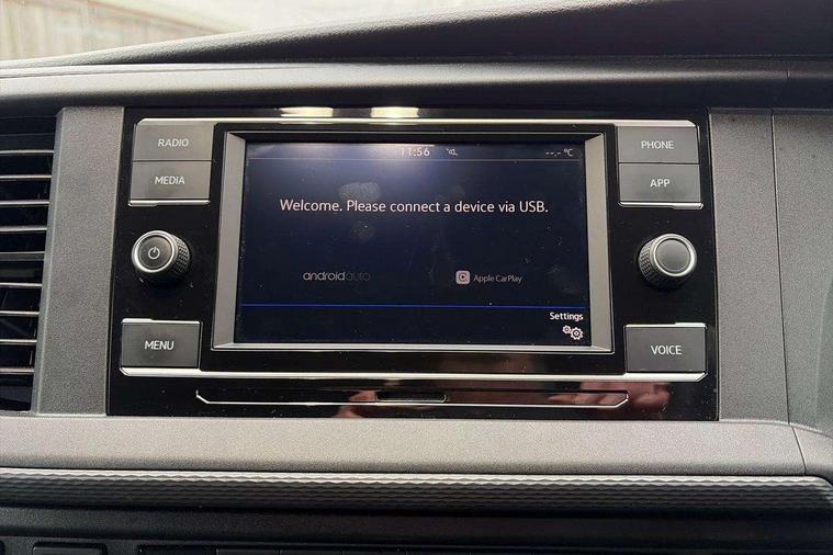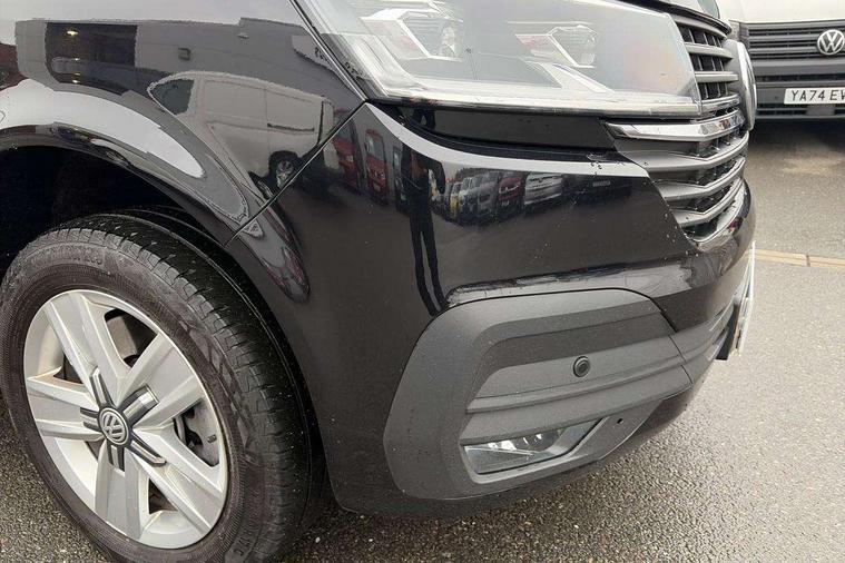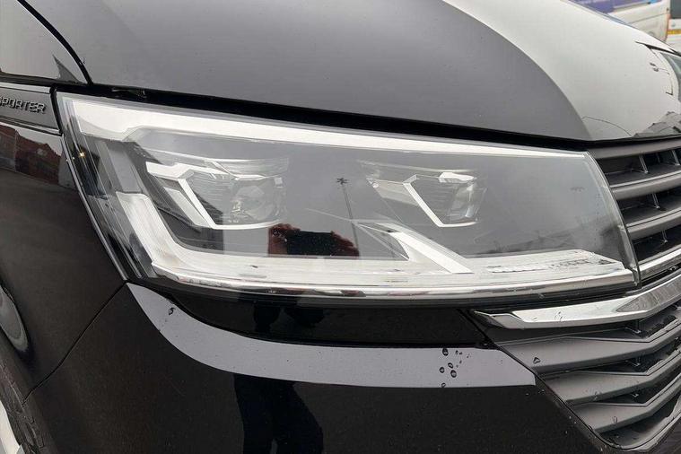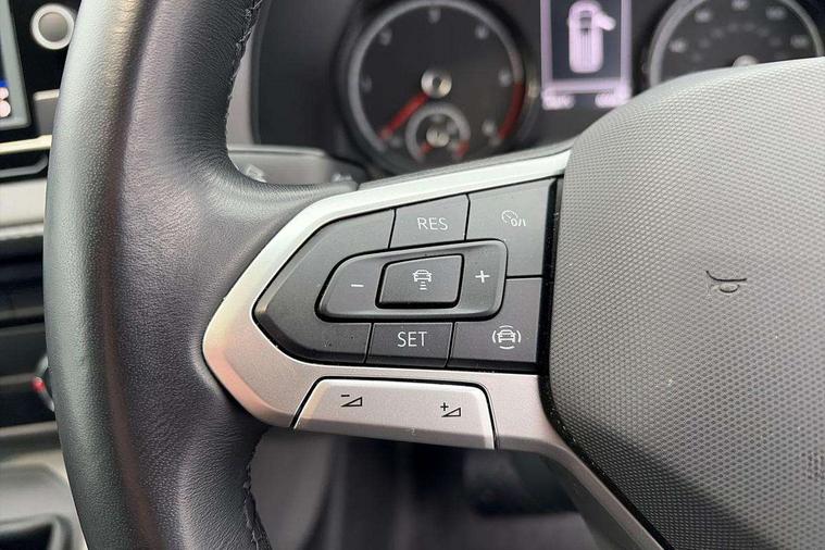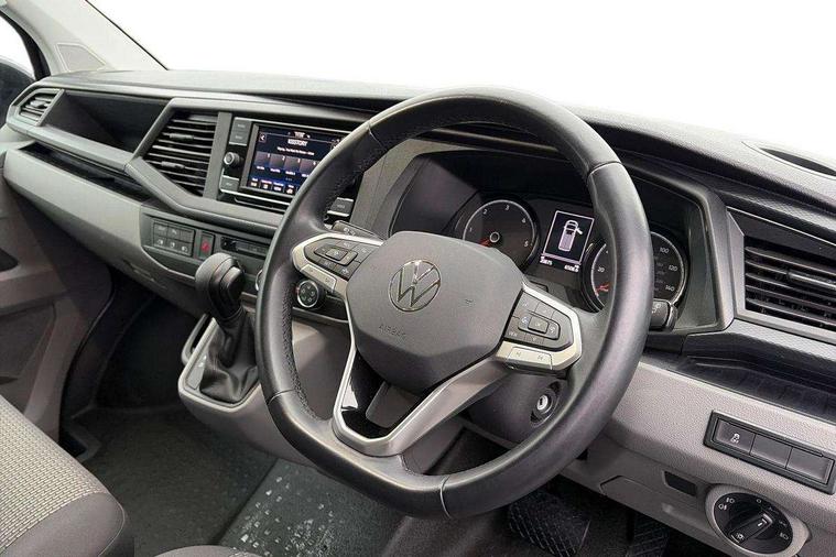 Adaptive cruise control, Child seat anchors ISOFIX and top tether in 2nd row of seats, Cross wind assist, Dimmable illuminated instruments, Driver alert with black and white multi function display plus, eCall emergency system, Forward collision warning front assist with autonomous emergency braking, Headlight range control, Mobile phone interface, Without voice control, 2 USB interfaces type C in dashboard, 4 speakers with 2 tweeters and 2 woofers, Composition colour radio with 6.5" touchscreen, Digital radio reception (DAB+), Volkswagen app connect, Automatic headlight control, leaving home and manual coming home feature, Front fog lamps with cornering light, Green heat insulating glass, Heated front windscreen, Illuminated steps in passenger/load compartment, Left convex exterior mirror, Power folding adjustable door mirrors with separately heated, Privacy glass from the B-pillar and heat-insulating glass in front, Radiator grille with 2 chrome trims, Rear window with heated insulating glass, heated rear window wiper and washer system, Right convex exterior mirror, Tailgate closing with unlatching from the inside, Transporter nameplate on the rear fender, Windshield wiper intermittent control with rain sensor for windshield wipers, Without adhesive film, 3 spoke leather wrapped multi function steering wheel, Additional sound deadening measures in cab and passenger compartment, Auto dimming breakaway interior rear view mirror, Comfort headliner in cab, hardboard roof trim in passenger and load compartment, Dust/pollen filter, Folding grab handles and storage compartments on cab seats, reading light, Front seats on the right in 1st row of seat, Glove compartment with illumination, Heavy duty tool kit and jack, Interior plastic loading edge protection, Lashing rings for load restraint system, LED Interior lighting in load and passenger compartment, Manual height adjustable and lumbar support for driver and single passenger seats, Medium height for vehicles with window aperture hardboard side trim panels in passenger/load compartment, Refrigerant R134a, Standard lower part dashboard in palladium, Without partition, Without seats in 3rd row of seats, Comfort pack - Transporter, Exterior pack without fog light- Transporter, Light and vision pack - Transporter, Non smoker pack - Transporter, 3 point height adjustable seat belts on outer seats cab with electric pretensioners, Driver and front passenger airbag with front passenger airbag deactivation, Power operated child safety lock, Warning buzzer and light for driver seat belt not fastened, Anti theft alarm system with interior monitoring in cab, backup horn and towing protection, Lockable wheel bolts, 16" chassis with 16" brake system, Additional 12V socket, Diesel particulate filter, Electronic stability control, ABS, ASR with deactivation button, hill start assist and brake assist system, Speed limiter, Start/stop system with regenerative breaking, 17" Devonport alloy wheels, Wheel trims,