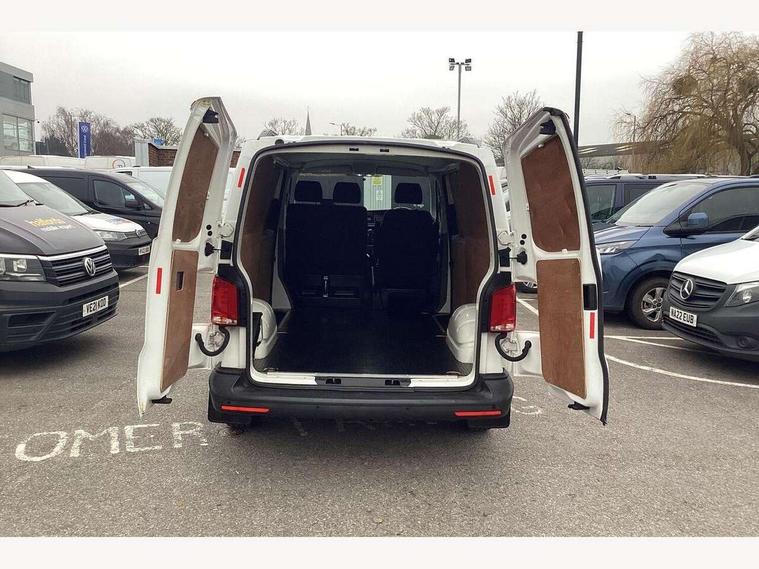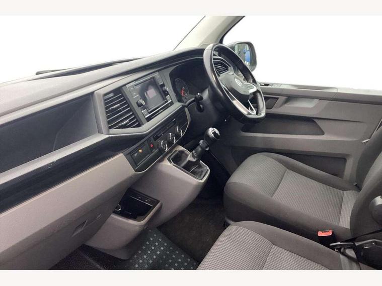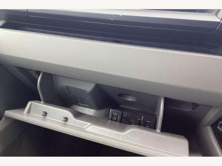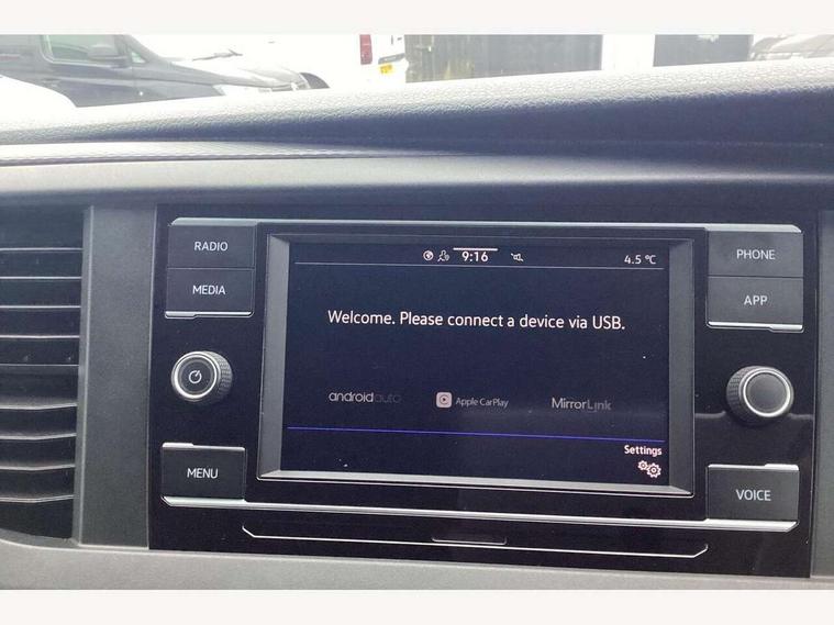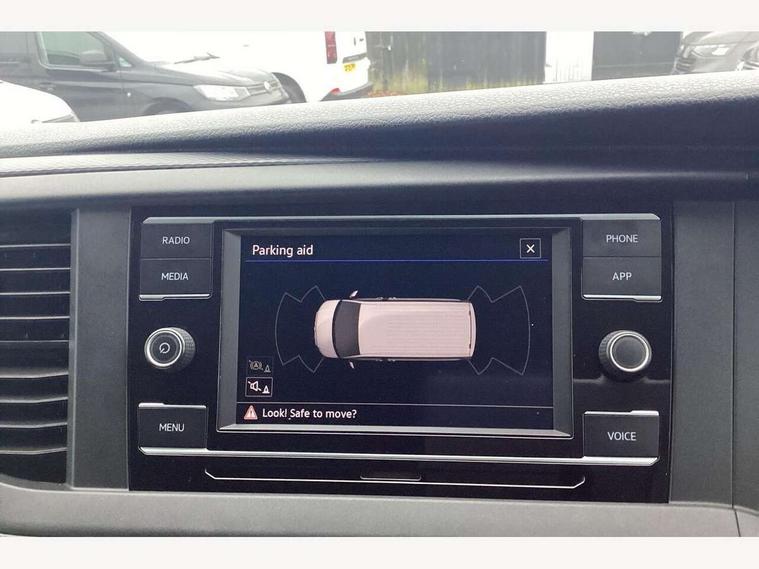 Cross wind assist, Dimmable illuminated instruments, Driver alert with Multi-function display plus, eCall emergency system, Electromechanical speed sensitive power steering, height and longitudinally adjustable steering column, Forward collision warning front assist with autonomous emergency braking, Mobile phone interface, Multi function display plus with black and white display, 2 USB interfaces type C in dashboard, 4 speakers with 2 tweeters and 2 woofers, Composition colour radio with 6.5" touchscreen, Digital radio reception (DAB+), Volkswagen app connect, 4 stages windshield wiper intermittent control for windshield wipers, Closing rear wing door with unlatching from the inside, Green tinted heat insulating glass in cab and passenger compartment, H7 twin halogen headlamps, Heat insulating windshield made of laminated glass, Left convex exterior mirror, Rear wing doors without window apertures, Right convex exterior mirror, Separate Daytime running lights, Sliding door on the left in load/passenger compartment, Transporter nameplate on the rear fender, Unpainted radiator grille with 2 chrome trims, Without sliding door on the right in load/passenger compartment with closed side panel, Without trailer hitch, 1 12V outlet in dashboard, 3 spoke leather wrapped multi function steering wheel, Comfort headliner in cab, hardboard roof trim in passenger and load compartment, Dust/pollen filter, Folding grab handles on roof frame, Front and rear left without window closed side panel in load compartment, Front seats on the right in 1st row of seat, Glove compartment without illumination, High partition, Interior plastic loading edge protection, LED Interior lighting in load and passenger compartment, Medium height side trim panel made of hardboard in load compartment, Reinforced lashing rings for load restraint system, Standard lower part dashboard in palladium, Sun visors with pocket on driver side and airbag label on front passenger side, Without breakaway interior rear view mirror, Without grab handle for access on A pillar, Without refrigerant, Without right side window apertures in passenger and load compartment, Non smoker pack - Transporter, Without storage pack - Transporter, 3 point height adjustable seat belts on outer seats cab with electric pretensioners, Driver and front passenger airbag with front passenger airbag deactivation, Single tone horn, Warning buzzer and light for driver seat belt not fastened, Without child safety lock in passenger compartment, Central locking system with radio remote control and inside system controls, Electronic immobiliser, Wheel bolts without wheel locks, 16" chassis with 16" brake system, Diesel particulate filter, Electronic stability control, ABS, ASR with deactivation button, electronic differnetial lock, hill start assist and brake assist system, Standard anti drum measures, Start/stop system with regenerative breaking, Low rolling resistance tyres - 205/65 R16 C 107/105T,