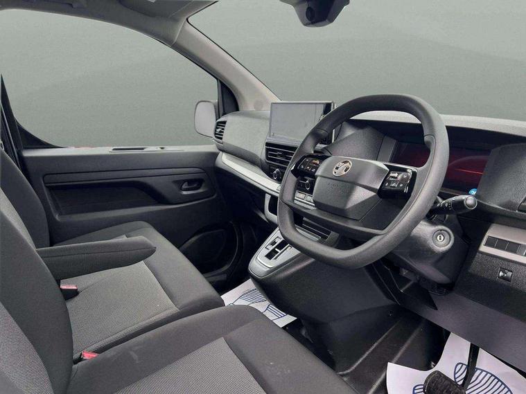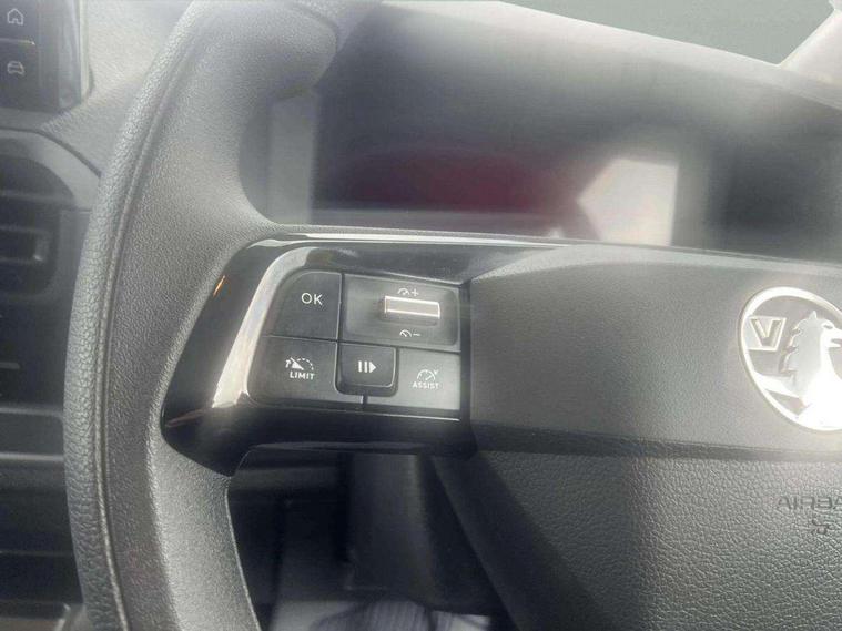 10" digital instrumental cluster, Central fascia display with digital clock, outside air temperature and audio information, Connectivity via BTA with RCA, Driver Attention Alert, level - 3, e-Call and b-Call, Electronic power steering (EPS), Energy absorbing steering column, Forward collision alert, Intelligent Speed Assist, Lane keeping assist, Mobile phone portal - Bluetooth, Vehicle microphone, Phone book access, Smartphone interface with Apple carplay/Android Auto, Multi-function trip computer, Rear parking distance sensor, TPMS (Tyre pressure monitoring system), Vauxhall connect, Audio controls mounted on steering wheel, Flexible short antenna (200mm), Multimedia pro audio system includes Radio AM/FM/DAB, 10" touchscreen with mirror screen(WI-FI), 4G connectivity, Voice control and USB connection, Two speakers and two tweeters, Automatic headlamps on/off, Black door handles, Black front and rear bumpers, Black side protection mouldings, Black sliding door rail cover, Electrically adjustable + heated door mirrors, Familial vizor, Front electric windows with one touch facility, Halogen headlamp with integrated daytime running lights, High beam assist, Laminated acoustic windscreen, Lockable fuel filler cap, Offside and nearside sliding side access doors, Rain sensitive windscreen wipers, Twin solid rear doors, 12V socket in lower glove box (1 only in cabin), Air recirculation facility, Chilled glovebox facility, Curitiba cloth upholstery, Driver's seat armrest, Ergonomic 6-way adjustable driver's seat with reach, rake, height and lumbar adjustment, Fixed floor mounted load restraint lashing eyes x8, Interior roof trim, Manual air conditioning, Overhead console with 1 ceiling lamp (dome type and 3 lamps), Reach and rake adjustable steering wheel, TPO plastic flooring, USB socket in cabin (dashboard), Automatic fuel cut-off and door unlocking in event of accident, Driver and front passenger airbags, Height adjustable lap and diagonal inertia reel front seatbelts, Passenger airbag deactivation manually, Dashboard mounted central locking push button and auto locking above 7mph, Immobiliser, Remote control central deadlocking, Selective door locking, Two keys with integral remote, 22.5 litres AdBlue tank, 70L fuel tank, ABS, Advanced emergency braking system (AEBS), Auto shifting by e-Toggle and shift paddles including in steering wheel, EBA, Electronic brake force distribution (EBFD), ESC, ESP, Floor mounted handbrake lever, Hill start assist, Manual parking brake, Traction control, Mistral black dashboard trim with liquid paladium decor strip in mid-section, Michelin Agilis 2 tyres - 215/65 R16C,