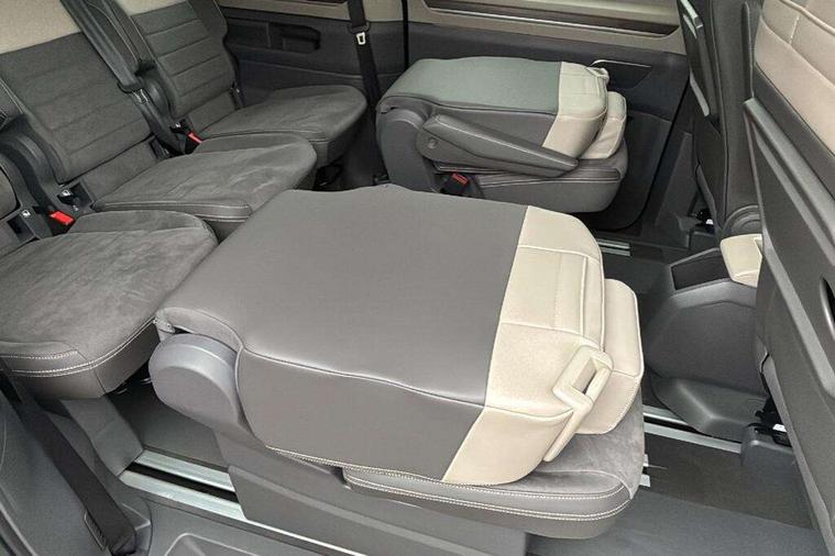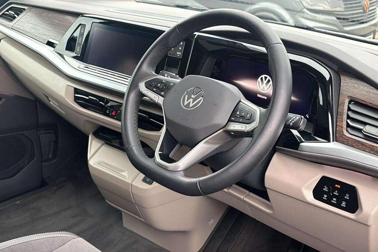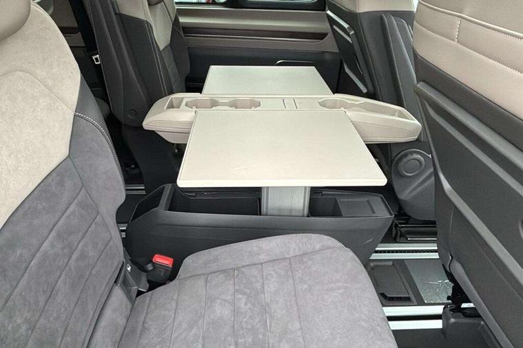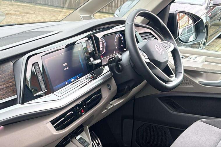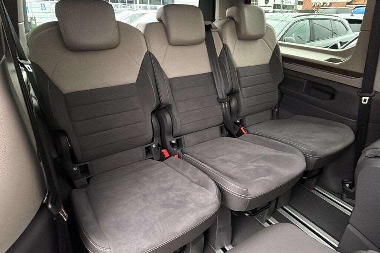 Adaptive cruise control with C2X including front assist and city emergency braking system, Digital Cockpit Pro with 10.25" colour display with adaptable display includes navigation map display, telephone contact images and audio information, Discover media pro navi system with 10" colour touch incl DAB+radio/appconnect for apple carplay/android auto/streaming and internet/gesture control, Driver alert system, Dynamic road sign display, eCall emergency system, Electrically-operated tailgate opening and closing function (Easy open), operated via foot movement under rear tailgate, Emergency assist, Front Cross Traffic Alert, Lane change system with side assist including blind spot monitor, rear traffic alert and exit warning system, Lane keeping system Lane Assist, Mobile phone interface, PAS, Semi-automated driving assistance, Tailgate, Travel assist, Voice control system including Alexa web app, We connect preparation, Electronic differential lock, 2 USB-C ports in front and 4 USB-C ports in passenger compartment, Additional interior noise reduction measures, Advanced high beam control dynamic light assist for LED matrix headlamps, Automatic headlight control with welcome home lights, Body coloured exterior door handles, Break away auto dimming rear view interior mirror, Chrome trim decorative strip mid-way on side and rear, Dynamic headlight range control with dynamic cornering light, Electrically adjustable, heated and folding door mirrors, Front fog lights, Glossy black painted radiator grille with 2 illuminated chrome trims, Heated rear window with window wiper and washer system, Heated windscreen, High gloss black exterior mirror housing, IQ.Light LED matrix headlamps with LED separate daytime running light, Laminated safety glass windshield, heat and sound insulating, LED 3rd brake lamp, LED rear combination lamps, Rear wiper, Stainless steel tailgate trim, Surround lighting in door area and tailgate with logo projection in door area, Windshield wiper intermittent control with rain sensor, 1 x 12V sockets on the dash panel, 12V socket in passenger compartment, 3 seat bench in 3rd row, 30 colours ambient interior lighting and tailgate surround lighting, 7 single seats removable/movable, Carpet mats in cab, Climatronic 3 zone air conditioning with additional control panel in passenger compartment, Front and rear head restraints, Grab handles on A pillar for access, on driver and front passenger side, Height adjustable seats, Height and longitudinal adjustment steering wheel with gear shift paddles, Illumination lockable glovebox compartment, ISOFIX (including i-size) and top tether in all seats in 2nd and 3rd rows, LED luggage compartment lighting X 2, Load compartment partition to 20kg with bag hooks and luggage net, Luggage compartment lid power latching with unlatching from inside, Multifunction leather steering wheel with tiptronic, Reinforced carpet floor covering in passenger compartment, Removable armrests for front seats with power adjustable lumbar support and folding table for 2nd row passenger seats, Single front passenger seat, Slidable multifunction table/centre console with 3 cup holders, Stainless steel pedals, Storage compartment under the 2nd and 3rd row seat and two waste bins, Sun visors with illuminated vanity mirror, ticket holder on driver side with airbag warning label on sunvisor and B-pillar, Easy open package - Multivan, 3x3 point rear seat belts, ABS, Automatic post collision braking system, Autonomous emergency braking front assist with pedestrian and cyclist monitoring, Driver and front passenger airbag with front passenger airbag deactivation, Electric childproof lock, Electronic stability control (ESC) and Electromechanical brake booster, ESP, First aid kit with warning triangle and safety vest, Front disc brakes, Hill hold assist, Seat belt warning for the drivers and all passengers seats if unfastened, Side and curtain airbags for driver and front passenger, curtain airbags for outer seats in rear, centre airbag in front, Single tone horn, Traction control, Tyre pressure monitoring system, Anti theft alarm system with interior monitoring in cab, backup horn and towing protection, Central locking system with interior control and safe lock, Keyless advanced with keyless entry, Start/stop button on centre console, Dark woodgrain optic decorative inserts,