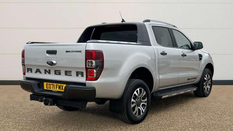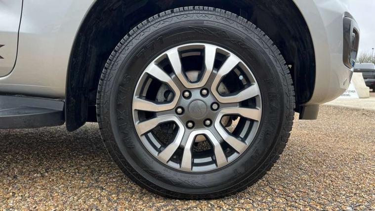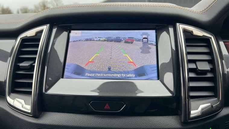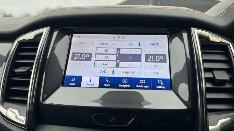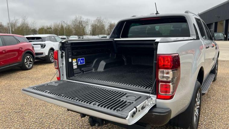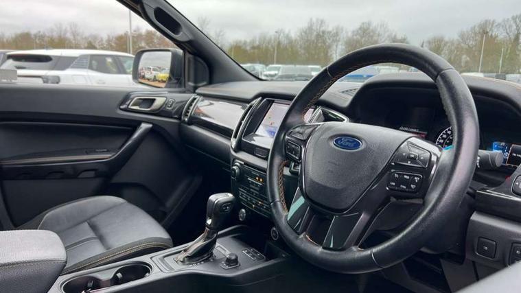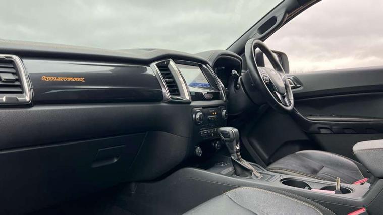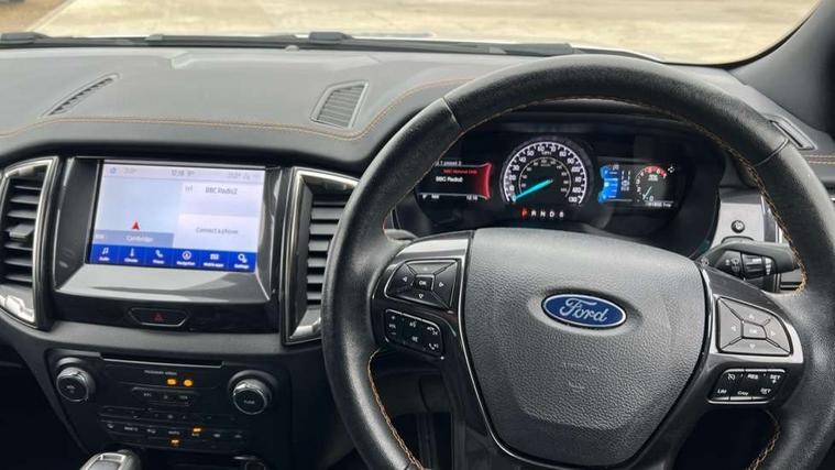 2 key fob, Collision mitigation braking system, Electric power assisted steering, Fixed rear view camera, Intelligent speed assistance, Lane keeping aid, Traffic sign recognition, Trip computer, Body coloured plastic front bumper, Boulder grey exterior door handle, Boulder grey exterior door mirror, Boulder grey radiator grille, Daytime running lights, Dual power heated fold back door mirror with puddle lamp and signal, Electrically operated windows with one shot driver's window, Electrochromic interior mirror, Front splash guard and mud flaps, Heated windshield and rear window, High mounted stop lamp with cargo area light, LED Front fog lamp, LED projector headlamps, Moulded in colour tailgate handle, Painted front fender grille, Privacy glass, Rain sensitive windshield wipers, Rear bumper chrome under-bar, Rear bumper step in boulder grey, Rear mudflaps, Roof rails, Side step with brushed inserts, Tailgate - Easy-lift/lower mechanism, Under hood engine cover, Underbody protection, Centre console coolbox, Chrome interior door handle, Driver seat back mounted map pocket, Dual control system - Electronic air temperature control (EATC), Ebony headliner, Heated front seat, Journey grain partial leather upholstery with Wildtrak logo, Leather gearknob, LED ambient interior lighting, Power adjustable 8 way driver seat, Premium front and rear floor mats with Wildtrak logo, Reach and rake adjustable steering column, Roof storage for driver sunglasses, Sport leather stitched steering wheel, Tie down rails and rope hooks, Wildtrak door trim panel insert, ICE feature pack 129 - Ranger, Driver and front passenger airbag, side airbag, curtain airbag and driver knee airbag, ISOFIX child safety seat attachment, Tyre pressure sensors, Double locking power door lock with flip key, Immobiliser, Locking wheel nuts, Passive anti theft system, Passive keyless entry and start system, Power tailgate lock, Spare wheel lock, Thatcham category 1 alarm security system, ABS, ESP and roll over mitigation, Emergency brake assist, Engine start/stop system, Locking rear axle, Power converter,