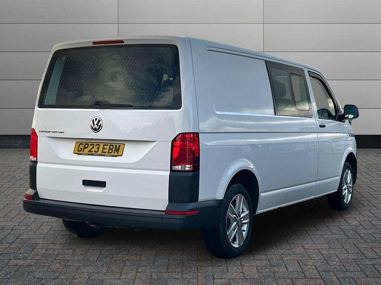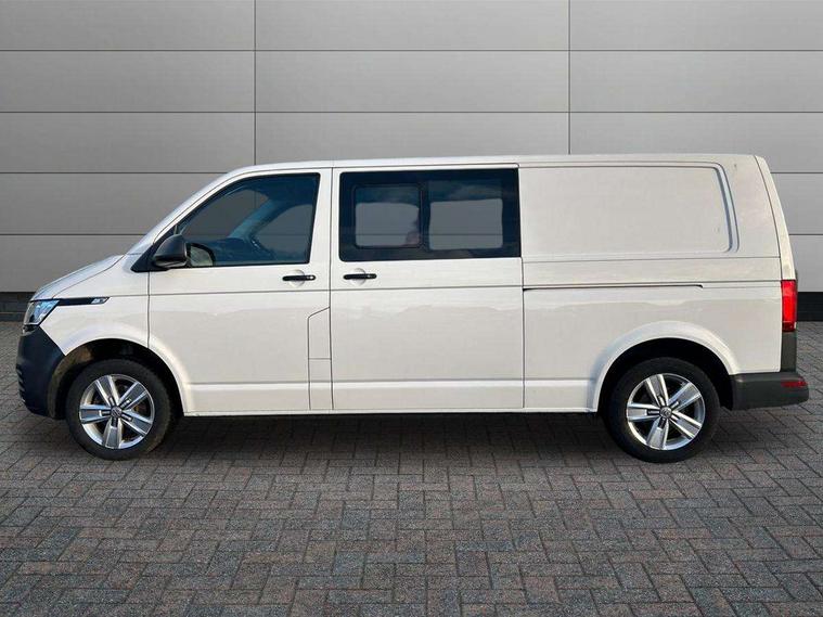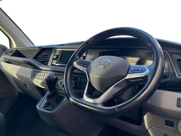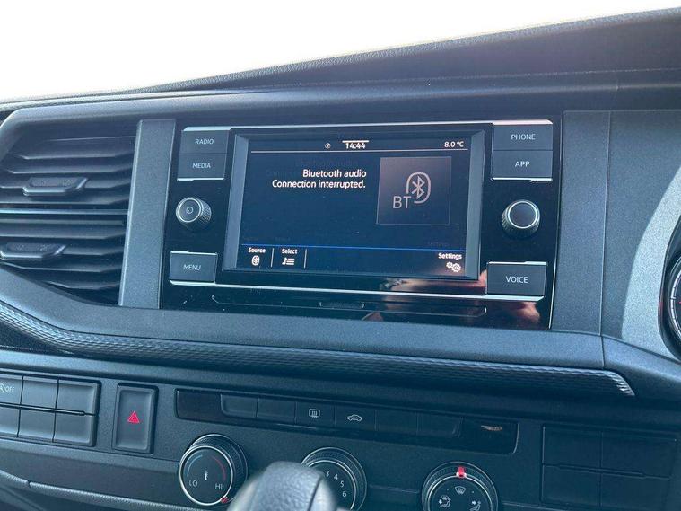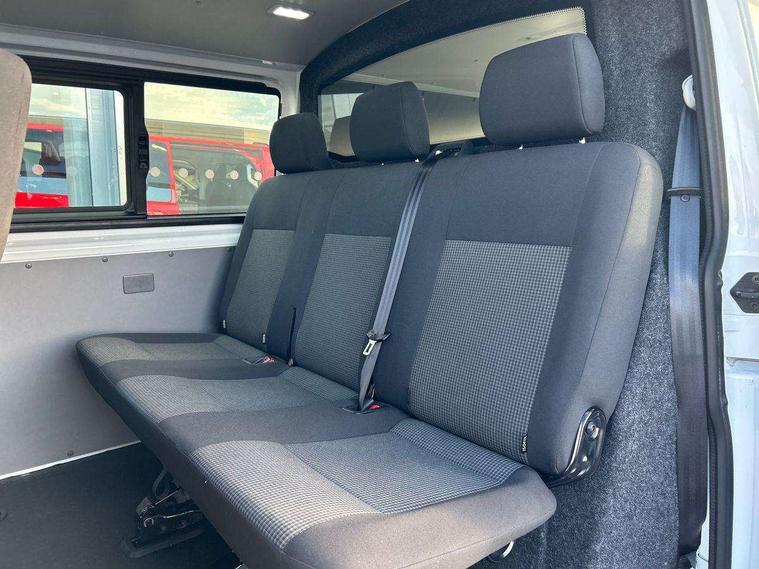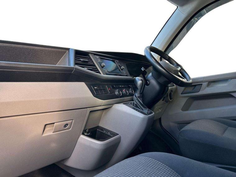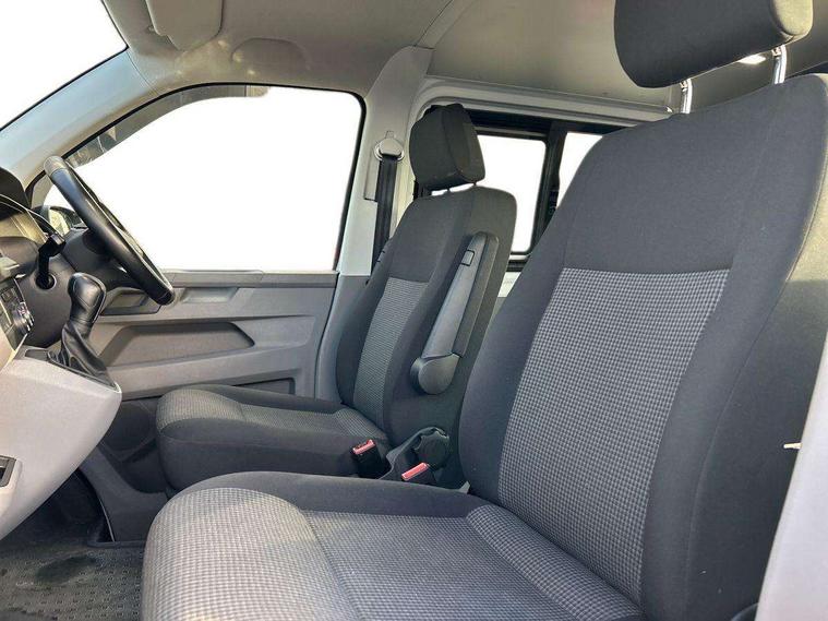 Child seat anchors ISOFIX and top tether in 2nd row of seats, Cross wind assist, Dimmable illuminated instruments, Driver alert with black and white multi function display plus, eCall emergency system, Forward collision warning front assist with autonomous emergency braking, Headlight range control, Mobile phone interface, Without voice control, 2 USB interfaces type C in dashboard, 4 speakers with 2 tweeters and 2 woofers, Composition colour radio with 6.5" touchscreen, Digital radio reception (DAB+), Volkswagen app connect, 4 stages windshield wiper intermittent control for windshield wipers, Green heat insulating glass, H7 twin halogen headlamps, Illuminated steps in passenger/load compartment, Left convex exterior mirror, Rear combination lamps, Rear window with heated insulating glass, heated rear window wiper and washer system, Right convex exterior mirror, Separate daytime running light (permanently switched on while driving), Tailgate closing with unlatching from the inside, Transporter nameplate on the rear fender, Unpainted radiator grille with 2 chrome trims, Without adhesive film, 1 12V outlet in dashboard, 3 spoke leather wrapped multi function steering wheel, Additional interior noise suppression, Additional sound deadening measures in cab and passenger compartment, Comfort headliner in cab, hardboard roof trim in passenger and load compartment, Dimming breakaway interior rear view mirror, Dust/pollen filter, Folding grab handles on roof frame, Front seats on the right in 1st row of seat, Heavy duty tool kit and jack, Interior plastic loading edge protection, Lashing rings for load restraint system, LED Interior lighting in load and passenger compartment, Medium height for vehicles with window aperture hardboard side trim panels in passenger/load compartment, Standard lower part dashboard in palladium, Sun visors with pocket on driver side and airbag label on front passenger side, Without grab handle for access on A pillar, Without partition, Without refrigerant, Without seats in 3rd row of seats, Non smoker pack - Transporter, Without storage pack - Transporter, 3 point height adjustable seat belts on outer seats cab with electric pretensioners, Driver and front passenger airbag with front passenger airbag deactivation, Power operated child safety lock, Warning buzzer and light for driver seat belt not fastened, Electronic immobiliser, Wheel bolts without wheel locks, 16" chassis with 16" brake system, Diesel particulate filter, Electronic stability control, ABS, ASR with deactivation button, hill start assist and brake assist system, Standard anti drum measures, Start/stop system with regenerative breaking, 16" 20 hole style steel wheels, Wheel trims,