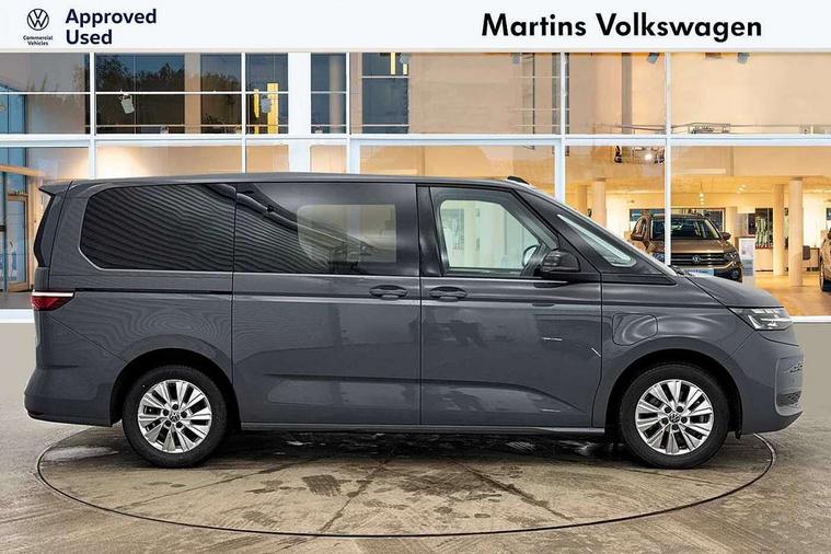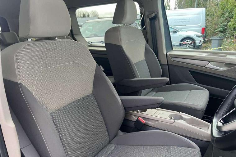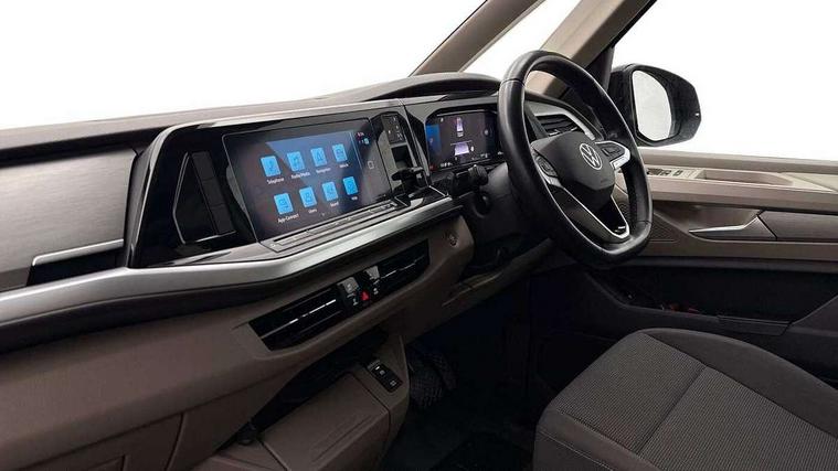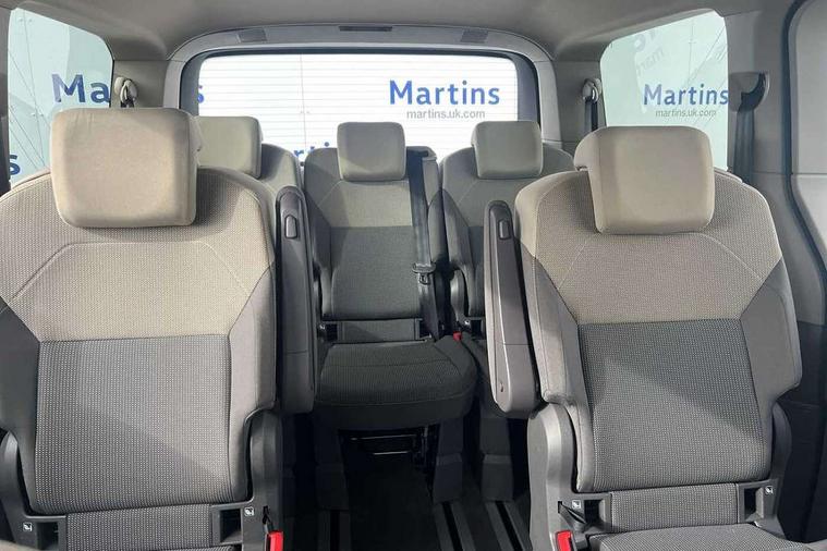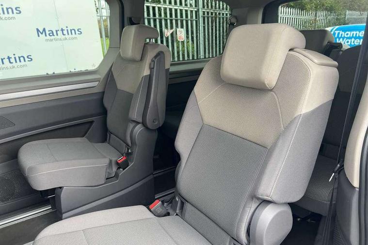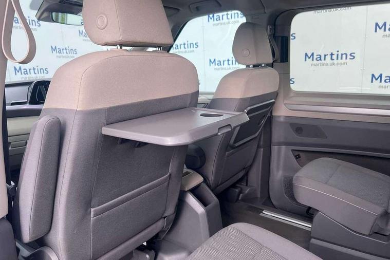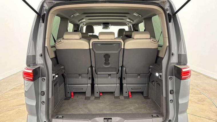 Adaptive cruise control with C2X including front assist and city emergency braking system, App-Connect incl. App-Connect Wireless for Apple CarPlay and Android Auto, Digital Cockpit Pro with 10.25" Display, Driver alert system, Dynamic road sign display, eCall emergency system, Lane keeping system Lane Assist, Mobile phone interface, PAS, Socket AC Type 2, Tailgate, Voice control system including Alexa web app, We connect preparation, 1 x 6 metre charging cables - 16amp AC cable for wallbox chargepoints (mode 3), Electronic differential lock, 2 USB-C ports in front and 4 USB-C ports in passenger compartment, Digital radio reception (DAB+), Automatic headlight control with welcome home lights, Body coloured exterior door handles, Break away auto dimming rear view interior mirror, Dynamic headlight range control (self adjusting), Electrically adjustable, heated and folding door mirrors, Front fog lights, Glossy black painted radiator grille with 2 chrome trims, Heated rear window with window wiper and washer system, High gloss black exterior mirror housing, Interior noise reduction measures, Laminated safety glass windshield, heat and sound insulating, LED 3rd brake lamp, LED main headlamps with LED separate daytime running light, LED rear combination lamps, Rear wiper, Sliding door on left/right with power latching, Windshield wiper intermittent control with rain sensor, 1 x 12V sockets on the dash panel, 12V socket in passenger compartment, 3 seat bench in 3rd row, 7 single seats removable/movable, Carpet mats in cab, Front and rear head restraints, Grab handles on A pillar for access, on driver and front passenger side, Height adjustable seats, Height and longitudinal adjustment steering wheel with gear shift paddles, Illumination lockable glovebox compartment, ISOFIX (including i-size) and top tether in all seats in 2nd and 3rd rows, LED luggage compartment lighting X 2, Load compartment partition to 20kg with bag hooks and luggage net, Luggage compartment lid power latching with unlatching from inside, Multifunction leather steering wheel with tiptronic, Reinforced carpet floor covering in passenger compartment, Removable armrests for front seats with power adjustable lumbar support and folding table for 2nd row passenger seats, Removable armrests in 2nd row passenger seats, Single front passenger seat, Slidable multifunction table/centre console with 3 cup holders, Storage compartment under the 2nd and 3rd row seat and two waste bins, Sun visors with illuminated vanity mirrors and airbag warning label on front passenger sun visors, Surround lighting in door area, 3x3 point rear seat belts, ABS, Automatic post collision braking system, Autonomous emergency braking front assist with pedestrian and cyclist monitoring, Driver and front passenger airbag with front passenger airbag deactivation, Electric childproof lock, Electronic stability control (ESC) and Electromechanical brake booster, ESP, First aid kit with warning triangle and safety vest, Hill hold assist, Seat belt warning for the drivers and all passengers seats if unfastened, Side and curtain airbags for driver and front passenger, curtain airbags for outer seats in rear, centre airbag in front, Single tone horn, Traction control, Tyre pressure monitoring system, Anti theft alarm system with interior monitoring in cab, backup horn and towing protection, Keyless start, Start/stop button on centre console, Dark silver brushed decorative inserts,