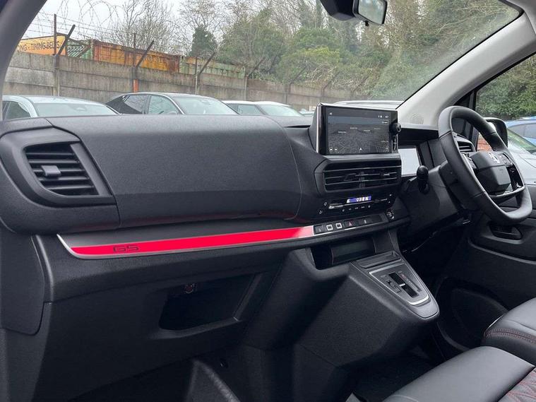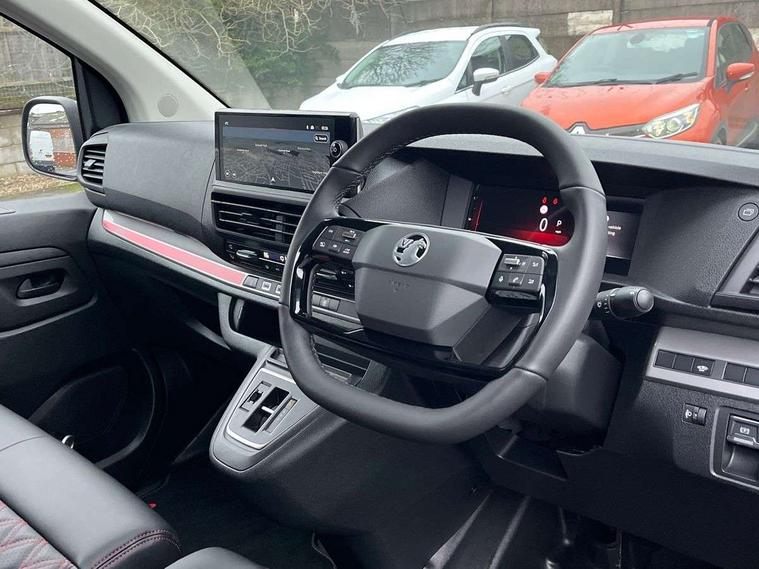 10" digital instrumental cluster, Blind spot detection, Central fascia display with digital clock, outside air temperature and audio information, Connectivity via BTA with RCE, Cruise control and speed limiter, Driver Attention Alert, level - 3, e-Call and b-Call, Electronic power steering (EPS), Flankguard detection of fixed obstacles, Forward collision alert, Front park assist, Intelligent Speed Assist, Lane keeping assist, Mobile phone portal - Bluetooth, Vehicle microphone, Phone book access, Smartphone interface with Apple carplay/Android Auto, Multi-function trip computer, Rear park assist, Rear parking distance sensor, TPMS (Tyre pressure monitoring system), Vauxhall connect, Visio park 180 degree rear parking camera, Audio controls mounted on steering wheel, Flexible multi-functional short antenna (200mm), Multimedia audio system includes Radio AM/FM/DAB, 10" touchscreen with mirror screen(WI-FI), 4G connectivity, Voice control, E-Call+A-Call and 1 USB, Two speakers and two tweeters, 2nd row glazed with dark tinted acoustic fixed left and right side windows, Athermic windshield, Automatic headlamps on/off, Body colour door handles, Body colour side protection mouldings, Body colour side sliding door rail cover, Eco LED headlamps with integrated daytime running lights, Electrically adjustable + heated door mirrors, Extended side sill mouldings, Front electric windows with one touch facility, Glazed nearside and offside sliding side access door, GS body kit - Fornt lip spoiler, Side skirts with integrated front mud guards, piano black rear spoiler and unique rear bumper, High beam assist, Laminated acoustic windscreen, Lockable fuel filler cap, Painted exterior rear view mirror cover, Rain sensitive windscreen wipers, Sport style front lower spoiler, Sport style rear spoiler, Sports rear bumper, Twin solid rear doors, Unique GS Badge, 12V socket in lower glove box (1 only in cabin), Chilled glovebox facility, Driver's seat armrest, Dual front passenger bench seat with under seat storage tray, Eco leather upholstery, Electronic climate control with automatic recirculation system, Ergonomic 6-way adjustable driver's seat with reach, rake, height and lumbar adjustment, Fixed floor mounted load restraint lashing eyes x4, Full height ABS plastic bulkhead with window, Heated driver's seat with controls on seat, Interior roof trim, Leather heated steering wheel, Overhead console with 1 ceiling lamp (dome type and 3 lamps), Reach and rake adjustable steering wheel, Removable storage compartment under left and center seats with area for long payload under right seat, Roof grab handles in Row 1, Three individual contoured rear seats with adjustable headrest and 2 armrest, TPO plastic floor in 1st row and painted sheet metal in 2nd row, USB socket in cabin (dashboard), Comfort Pack - Vivaro GS, Connected navigation package - Vivaro, Dynamic surround view pack - Vivaro, Winter Pack - Vivaro GS, Automatic fuel cut-off and door unlocking in event of accident, Automatic unlocking system in case of crash, Driver and front passenger airbags, Driver and front passengers curtain and side impact airbags, Height adjustable lap and diagonal inertia reel front seatbelts, Passenger airbag deactivation manually, Dashboard mounted central locking push button and auto locking above 7mph, Immobiliser, Keyless open and start, Remote control central deadlocking, Remote control ultrasonic security alarm system, Selective door locking, Two keys with integral remote, 22.5 litres AdBlue tank, 70L fuel tank, ABS, Advanced emergency braking system (AEBS), Auto shifting by e-Toggle and shift paddles including in steering wheel, EBA, Electric parking brake, Electronic brake force distribution (EBFD), ESC, ESP, Hill start assist, Traction control, Mistral black dashboard trim with liquid paladium decor strip in mid-section, 18" Exclusive Y spoke black alloy wheels, 18" Nankang tyres with high load capacity, Tyre inflation kit,