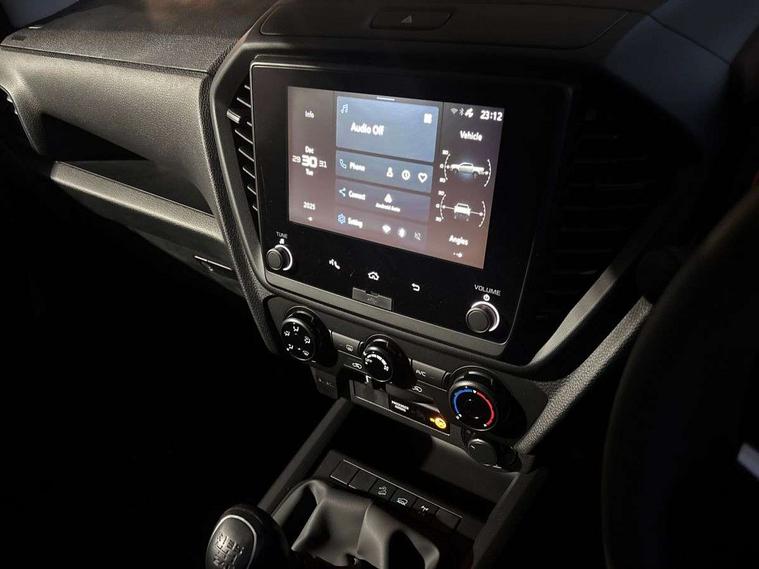 4.2" Multi function display, 4WD shift on the fly, Blind spot monitor, Bluetooth connectivity, Cruise control, Door open warning light, eCall, Emergency lane keeping, Forward Collision warning, Intelligent speed limiter, Lane departure warning and prevention system, Manual gearshift indicator, Multi collision brake, On/off button for lane support system mounted on steering wheel, One motion door unlock for driver's side, Rear cross traffic alert, Speed sensitive power steering, Traffic sign recognition, 2 speakers, Audio and cruise controls mounted on steering wheel, CD player, Digital radio (DAB), Front USB connection, Automatic headlights, Automatic windscreen wipers with rain sensor, Black door handles, Black front bumper, Black rear bumper with integrated step, Dark gray upper and lower black radiator grille, Follow me home light, Front and rear power windows with driver side auto up/down function with pinch protection and timer, Front fog lamp bezel design colour, Halogen daytime running lights, Halogen headlights, Heated black door mirrors, Heated rear windscreen, High beam assist, Integrated fuel filler cap with AdBlue, Manually dimmable rear view mirror, Rear fog lights, Rear radar chipping guard, Security etched glass, Tailgate damper, Trailer sway control, 2 x Rear side ISOFIX child seat anchors with top tether anchors, 6 way adjustable manual driver's seat, 60/40 folding seat base, Centre and floor console, Closed upper and open lower glove boxes, Closed upper driver dashboard storage compartment, Cloth upholstery, Driver and passenger sun visors, Driver's footrest, Flat folding rear seats, Front cup holders in centre console and dash - driver and passenger sides, Front door pockets with bottle holder, Height adjustable rear headrest, Height and reach adjustable steering wheel, Manual air conditioning, Map lights, Power driver's seat lumbar support, Rear door pockets with bottle holder, Sunglasses holder and overhead console, Underseat storage compartment, Vinyl floor covering, 3x3 point rear seatbelts, Autonomous emergency braking, Centre SRS airbag, Child proof rear door locks, Front, side, curtain and driver knee SRS airbags, Height adjustable front seatbelt pre-tensioners with load limiters, Passenger airbag deactivation switch, Seatbelt reminder indicator, Alarm with deadlock, Insurance approved immobiliser, Remote central locking, 12V power outlets, Anti lock braking system (ABS), Brake assist, EBD, Electronic Stability Control (ESC) with traction control, Hill Descent Control, Hill start assist, Stop/start function, 18" steel wheels,