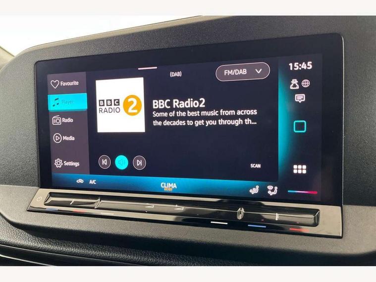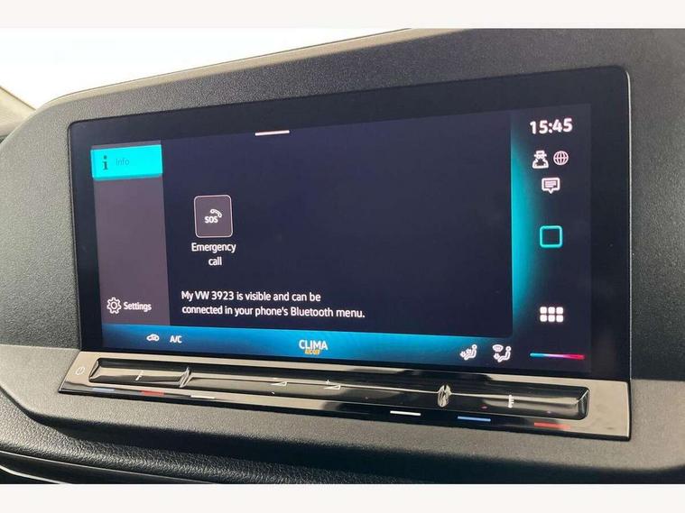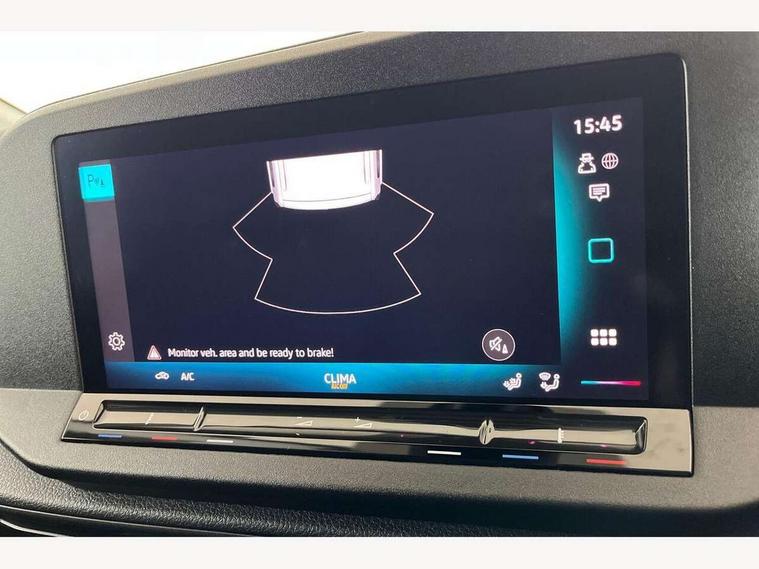 Bluetooth - Mobile phone interface, Car2X technology, Driver alert system, eCall emergency system, Intelligent Speed Assist, Lane assist, Seatbelt warning indicator, Service indicator, Start-stop system with regenerative braking, 2 USB interfaces type C in dashboard, DAB Radio, We Connect Basic Preparation, Automatic hazard light activation under emergency braking, Black front and rear bumpers, Electric front windows, Heat insulating windscreen, Roof rail preparation, Windscreen wiper with variable intermittent delay and wash-wipe system, Dimming breakaway interior rear view mirror, Electronically controlled heating system, Interior light in headliner incorporting LED technology, Lockable glove compartment door with light, Manual heating and ventilation system, Manual height adjustment for front seats, Reach and rake adjustable steering column, Six lashing points for securing loads, 3-point seat belts in front, with pretensioner and height adjustment, Driver and front passenger airbag with front passenger airbag deactivation, Tyre pressure monitoring system, Anti-theft alarm system, interior monitoring, backup horn, and towing protection, Electronic engine immobiliser, Remote central locking with deadlocks, interior locking, Anti locking braking system (ABS), Automatic post collision braking system, Autonomous Emergency Braking Front Assist with Pedestrian Monitoring, Brake assist, Diesel particulate filter, Electric parking brake with auto hold function, Electronic brake force distribution (EBD), Electronic differential lock (EDL), Electronic stabilisation programme (ESP), Engine drag torque control (MSR), Hill hold assist, Traction control system (TCS), Decorative beige birch vein inserts, Full size wheel trims,