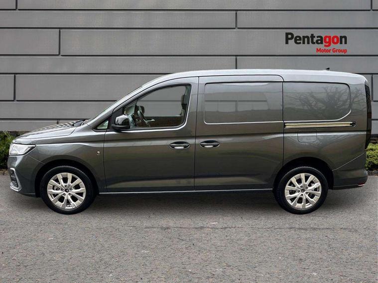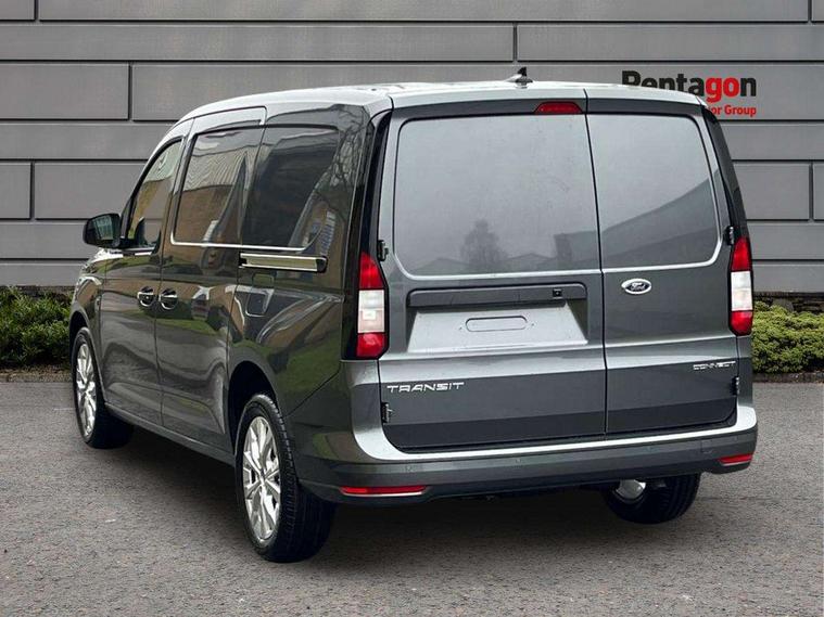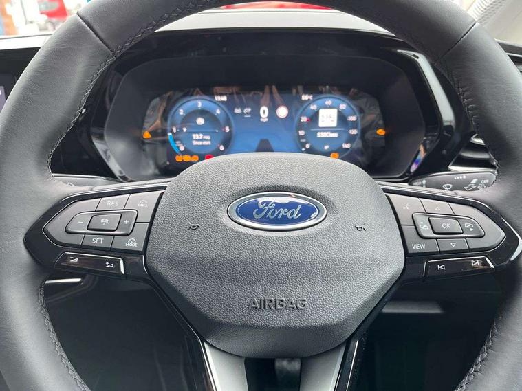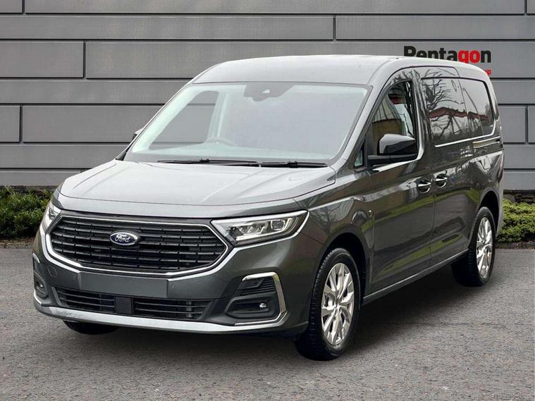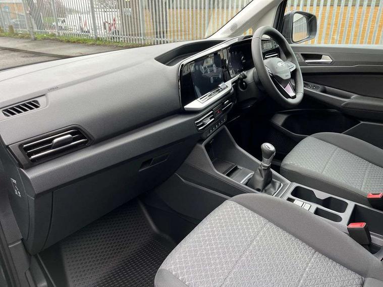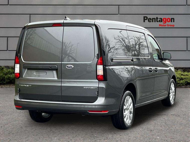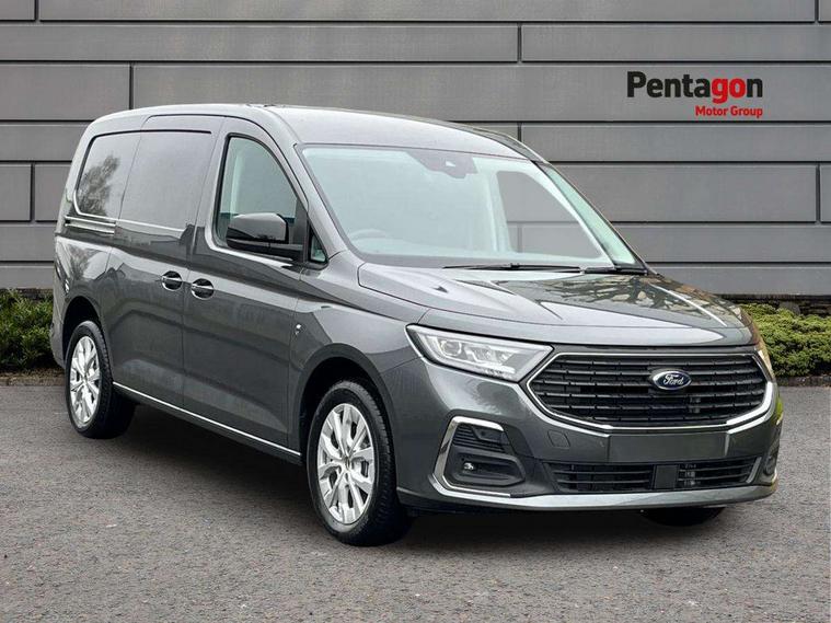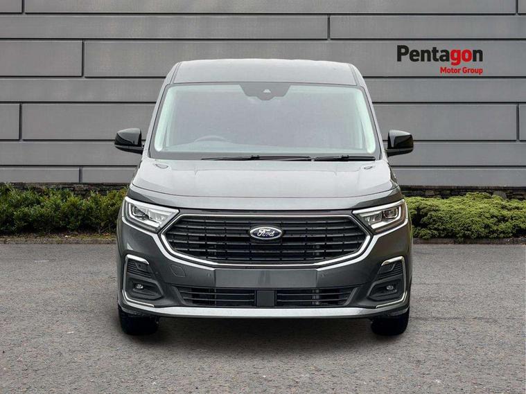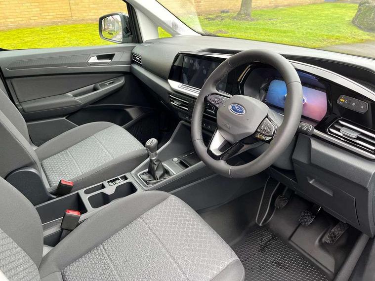 10" touchscreen infotainment display with volume and temperature slider controls, Android Auto and Apple Carplay with USB or wireless connectivity, Brake wear indicator, Enhanced digital cluster with navigation integration, Fordpass connect modem including eCall, Front camera system, PAS, Tyre pressure monitoring system with cluster display of tyre pressures, Wireless charging pad, 4 speakers, DAB radio bluetooth, voice control and navigation, Two USB (45W type C) front power/Data points, Auto Headlamps - Follow Me Home, Automatic windshield wiper, Black painted exterior mirror caps, Body colour door handles with silver door rail, Body coloured exterior tailgate handle, Body coloured front bumper, Body coloured rear bumper, Chrome fog light surrounds, Day and night inside mirror, Dual power heated mirrors, Emergency brake light flashing, Front fog lights, High mounted stop lamp, Less roof rails, Misfuel Inhibitor, Power folding door mirrors, Power front windows - One touch up-down, Quickclear electric windshield defroster, Rear tinted glass, Standard green class windscreen, Weather protection seals, 12V socket in cabin, 2 way front headrestraints, 4 way manually adjustable driver seat, 4 way manually adjustable passenger seat, Cargo area dual LED lights, Cargo area hardboard trim, Centre console with open stowage, Chrome air register, Driver and passenger sunvisor with mirror, Driver seat rotary recliner, Electronic dual zone automatic air conditioning, First row LED light with map lights, Fold flat passenger seat with integrated work surface, Foot pedal, Overhead storage compartment, Pollen filter without carbon filter, Reach and rake adjustable steering column, Rubber cab floor cover, Rubber load floor cover, Sensico gear shift knob, Sensico steering wheel, Silver interior door handles, DAT pack 3 - Transit Connect, Curtain airbags, Driver and front passenger airbag, Driver and passenger seatbelt reminder, Front active seat belts, Front passenger airbag deactivation, Front seat belt adjuster, 2 remote keys, Ford KeyFree system with power starter button and deadlocking, Immobiliser, Locking wheel bolts, Thatcham alarm system, 12v socket on cargo area, 50L fuel tank, ABS, Electric parking brake, Electronic emergency brake assist, ESP, RSC, wind mitigation, Standard duty alternator, Start/stop system, Traction control, Gloss black cluster and infotainment bezels with silver painted instrument panel spear, 17" silver alloy wheels with blue centre caps, 215/55 R17 tyres, Wheel hub caps,