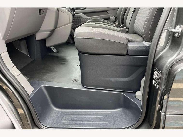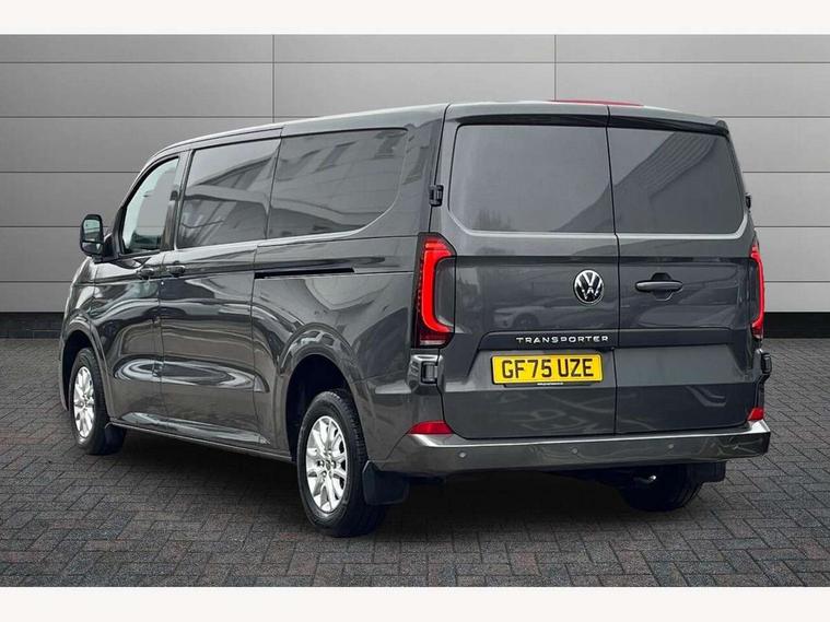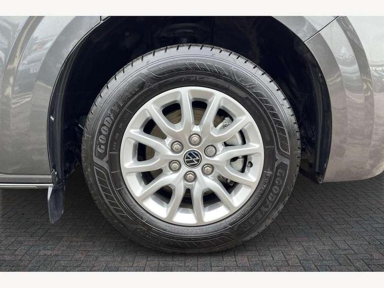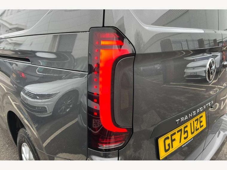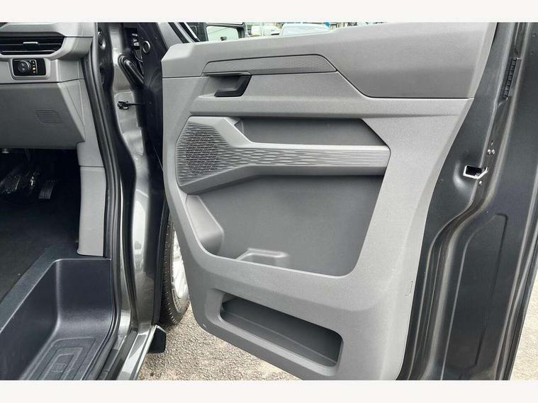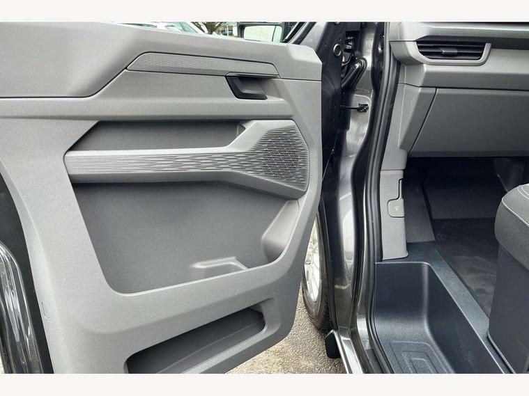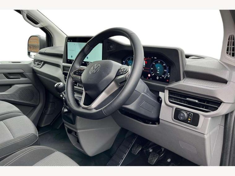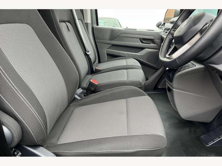12" digital drivers display, 13" touchscreen infotainment display with wireless app connect and DAB radio, 5G Modem, Adaptive cruise control, Apple CarPlay and Android Auto, Dynamic road sign display, eCall emergency system, Electromechanical speed sensitive power steering, height and longitudinally adjustable steering column, Lane and blind spot assist with exit warning system, Preparation of VW connect and connect plus, Wireless mobile phone charging, Wrong way driver warning, Body colour bumpers, Body coloured door handles, Body coloured door mirrors, Body coloured radiator grille, Electrically heated, adjustable and folding door mirrors, Heat reflecting side window glass, Mud flaps front and rear, Rear Transporter nameplate in black grained decorative trim, Vehicle opening configuration 1x 1st row of seats, 2x all doors, 12V outlet in centre console and 12V outlet on rear right D-pillar, 2x 15-W USB data/charging ports in dashboard and 1x USB-C, 1x USB-A center bottom, 2x LED lights in load compartment, 3x additional super bright LED lights in load compartment, 4 way height and tilt adjustable head restraints, 5 additional USB-C charging ports, Black plastic scuff plate for sliding door in cargo without illumination, Cabin interior lighting, Glasses compartment in driver side roof, Grab handle on A-pillar passenger side, Illuminated lockable glovebox, Lashing rings for reinforced floor covering, Leatherette gear lever, Narrow centre console with cup holder and compartment for mobile phone, Overhead storage compartment, Rubber floor covering in cab, Striped fabric upholstery, Without passenger seats in load compartment, Driver and front passenger airbag with front passenger airbag deactivation, Dual tone horn, Front and curtain airbags for driver and front passenger, Seat belt pretensioner for driver seat, Anti theft alarm system with interior monitoring in cab, backup horn and towing protection, Electronic immobiliser, Lockable wheel bolts, Preparation for alcohol ignition interlock, 5+ Promise, Alternator - 230A, Electromechanical brake booster, Electronic stability control, ABS, ASR with deactivation button, hill start assist and brake assist system,