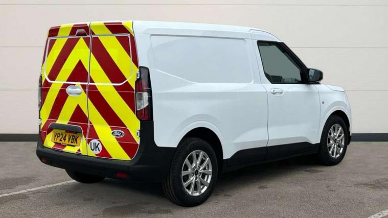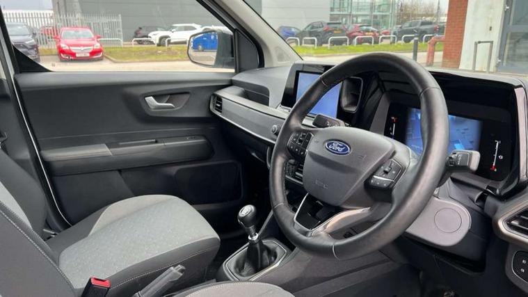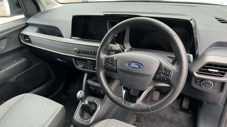 8" touchscreen, Door open warning light, Driver alert system, Easy fuel capless refuelling system, eCall emergency system, Electric power assisted steering (EPAS), Ford pass connect modem, Intelligent Speed Assist, Lane keeping alert, Reverse parking sensor, Tachometer, Traffic sign recognition, Trip computer, Tyre pressure monitor, Wireless charging pad, 4 front speakers, Aux input socket, Steering wheel radio controls, Auto High Beam Assist, Automatic windshield wiper, Body colour upper front bumper, Body coloured door handles, Complete tinted glass, Front grille with chrome spear, Halogen headlamps, High mounted stop lamp, Hinged rear cargo door, Power front windows with power one touch up and down on both sides, Self colour lower front bumper, Self coloured rear bumper, Self coloured rear bumper end caps, Side load door track cover, Unglazed rear doors, Variable intermittent windshield wipers, 12V power socket in front, 12V power socket in load compartment, 2 Front USB ports, 2 way front headrestraints, Barlo pin hex cloth upholstery, Driver seat armrest, Driver's seat lumbar support, Electronic air temperature control (EATC), Floor mounted console, Glovebox with lid, Header courtesy light with 2 map lights, Overhead console, Rubber floor cover in cab area, Silver interior door handles, Sunvisors with mirrors, Tilt and telescopic adjustable steering wheel, Winter pack 2 - Transit Courier, Child proof rear door locks, Curtain airbags - left and right, Driver and passenger front seatbelt pre-tensioner, Driver and passenger seatbelt reminder, Driver and passenger side airbags, Driver's airbag, Front 3 point seatbelts, Passenger airbag, Passenger airbag deactivation switch, 2 remote fobs, Immobiliser, Keyless start, Emergency brake assist, ESC with ABS + EBA + EBD, ESP, Front disc and rear drum brakes, H6 70 AH EFB CCA 700 Alternator, Heavy duty battery, Hill launch assist, Mechanical parking brake, Roll over mitigation, Start/stop system, Traction control, 16" 10 spoke sparkle silver finish alloy wheels including locking wheel nut, Any vendor tyre eco tread,