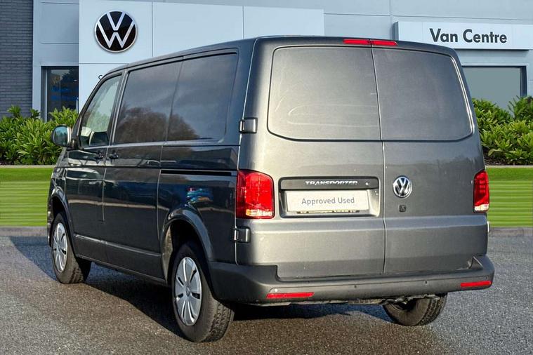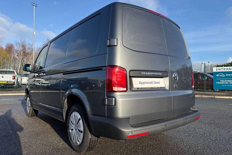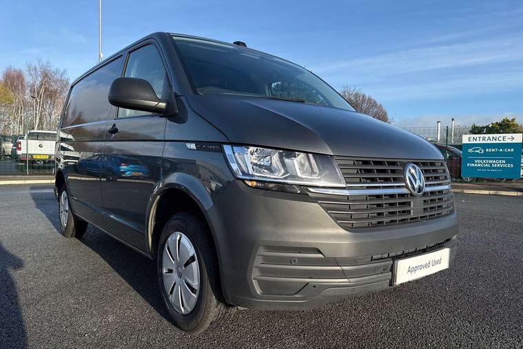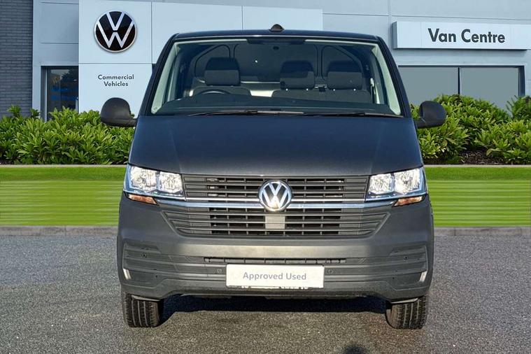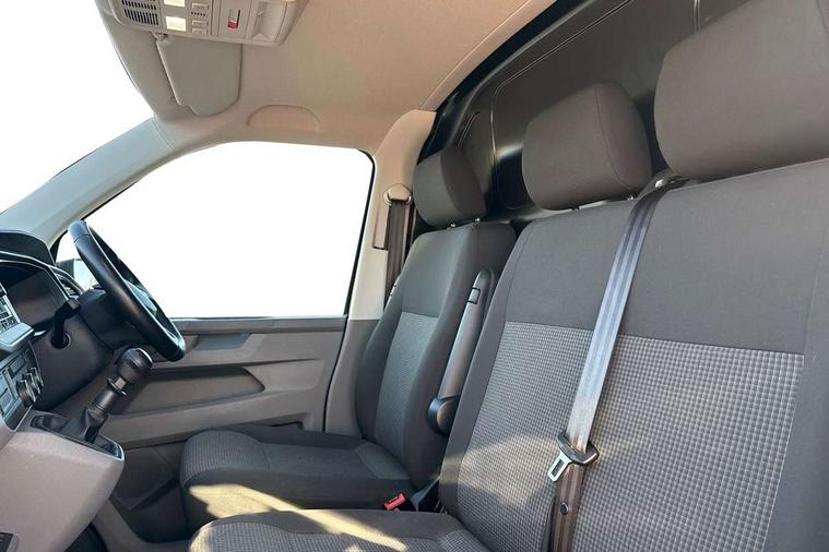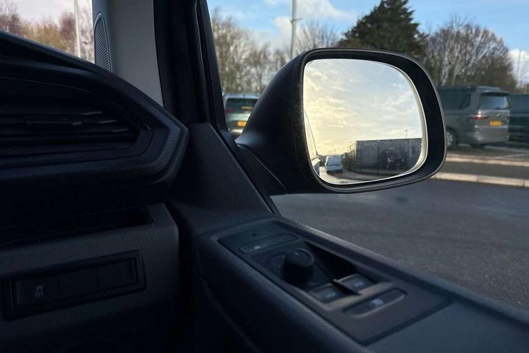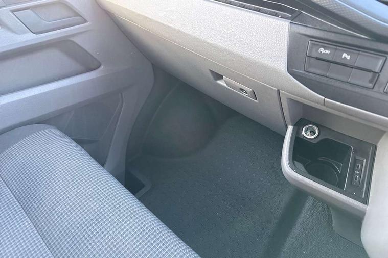Cross wind assist, Dimmable illuminated instruments, Driver alert with Multi-function display plus, eCall emergency system, Forward collision warning front assist with autonomous emergency braking, Mobile phone interface, Multi function display plus with black and white display, 2 USB interfaces type C in dashboard, 4 speakers with 2 tweeters and 2 woofers, Composition colour radio with 6.5" touchscreen, Digital radio reception (DAB+), Volkswagen app connect, Closing rear wing door with unlatching from the inside, H7 twin halogen headlamps, Heat insulating glass (green) in cab and passenger/load compartment, Heat insulating windshield made of laminated glass, Left convex exterior mirror, Rear wing doors without window apertures, Right convex exterior mirror, Separate Daytime running lights, Transporter nameplate on the rear fender, Unpainted radiator grille with 2 chrome trims, 3 spoke leather wrapped multi function steering wheel, Comfort headliner in cab, hardboard roof trim in passenger and load compartment, Dust/pollen filter, Folding grab handles on roof frame, Front and rear left without window closed side panel in load compartment, Front seats on the right in 1st row of seat, Heavy duty tool kit and jack, High partition, Interior plastic loading edge protection, LED Interior lighting in load and passenger compartment, Standard lower part dashboard in palladium, Without refrigerant, Without right side window apertures in passenger and load compartment, Non smoker pack - Transporter, 3 point height adjustable seat belts on outer seats cab with electric pretensioners, Driver and front passenger airbag with front passenger airbag deactivation, Warning buzzer and light for driver and front passenger seat belt not fastened, Without child safety lock in passenger compartment, Electronic immobiliser, Wheel bolts without wheel locks, 16" chassis with 16" brake system, Diesel particulate filter, Electronic stability control, ABS, ASR with deactivation button, hill start assist and brake assist system, Standard anti drum measures, Start/stop system with regenerative breaking,