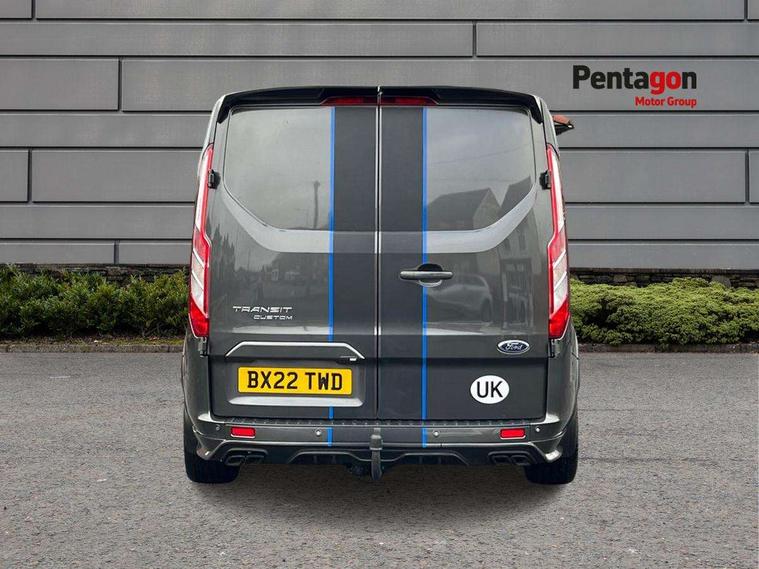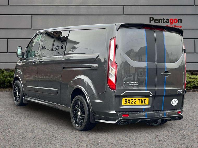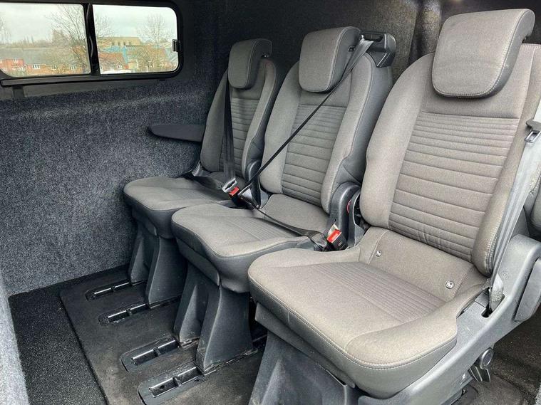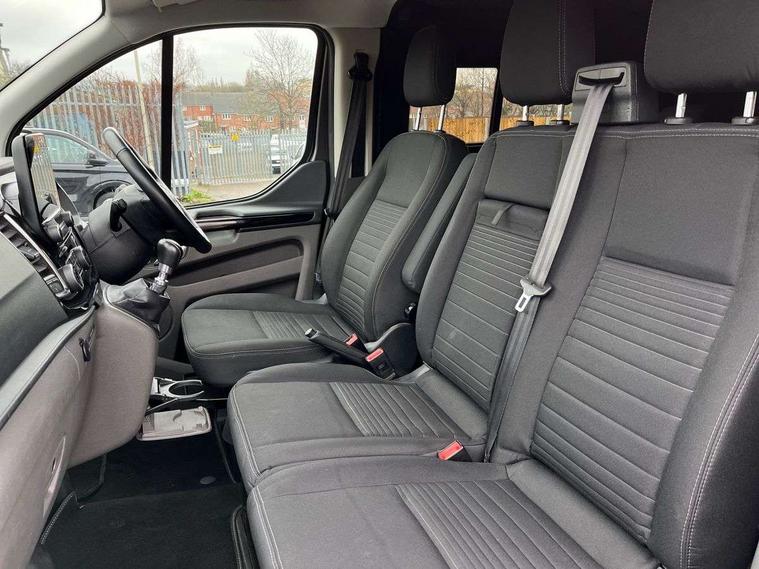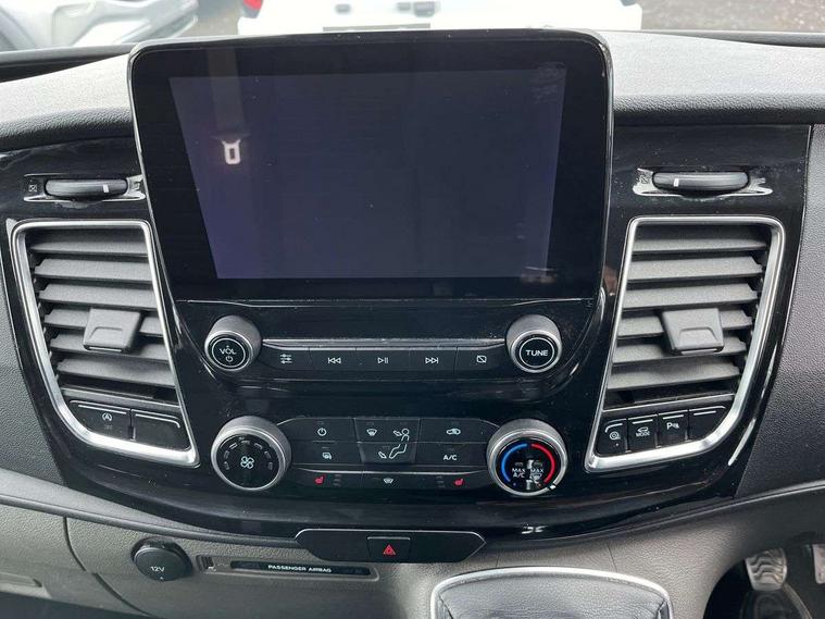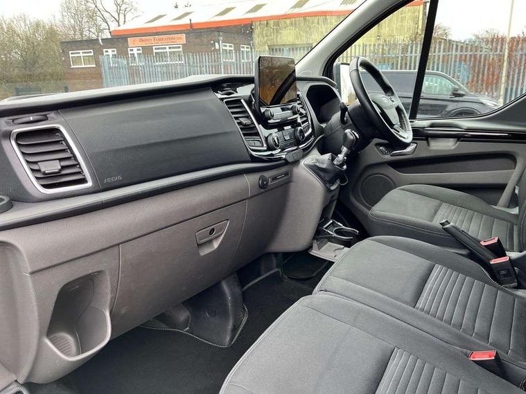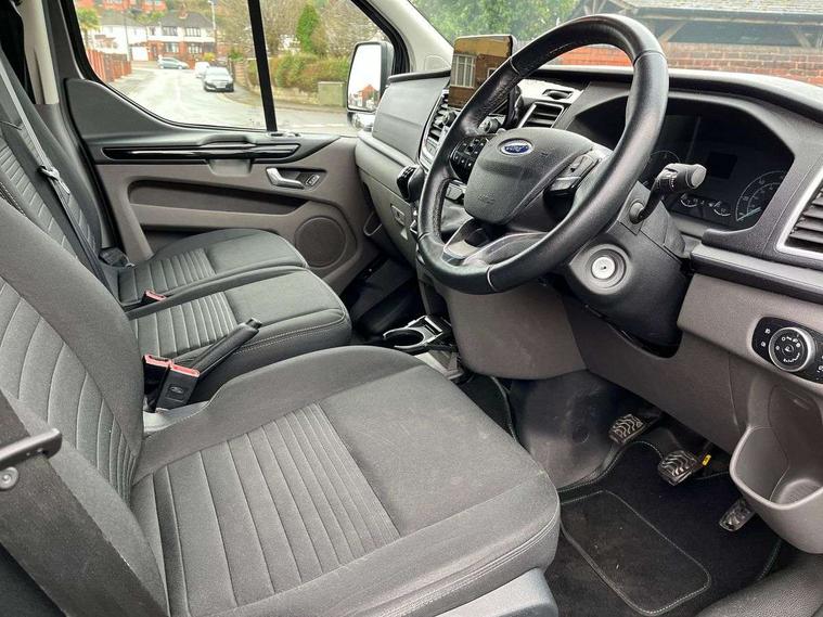 Easy fuel capless refuelling system, Embedded modem, Ford Eco mode, PAS, Selectable drive mode, Trip computer, Vehicle maintenance monitor, Audio controls mounted on steering wheel, 180 Degree rear cargo check arms, Automatic headlamps with follow me home, Automatic lights and wipers, Body colour door handles, Body coloured body side mouldings, Body coloured door mirrors, Body coloured exterior mirror finish, Body coloured lift/decklid exterior handles, Body coloured rear bumpers, Chormed grille with 3 bars, Delete roof mounted turn signals, Digital rear view mirror, Door open tyre carrier drop, Electric front windows with one touch facility for driver and front passenger, Emergency brake light flashing, Front splash guards/Mud flaps, Headlamp levelling, Intermittent front wash/wipe, Kerbside side load doors, Low roof line, Molded load floor liner, Quad beam headlamps, Rear cargo hinged door, Rear door edge warn reflectors, Rear mudflaps, Rear splash guards, Tutone painted plastic front bumper, Unrestricted side load door opening, Wide bodyside grey mouldings, 2 Interior grab handles, Assist handle, Cloth upholstery, Colour keyed exterior pack, Complete rear trim board, Driver and passenger sunvisors with illuminated vanity mirrors, Floorwell lights, Front manual air conditioning, Header mounted courtesy lights - 2 map lights, Header mounted package tray, Height adjustable front headrests, Illuminated footwell, Leather gearshift knob, LED load compartment rail light, Load compartment interior light, Lockable glove box, Map reading lights, Partial molded headliner, Passenger underseat storage box, Reach and rake adjustable steering column, Recirculation heater, Side rear door trim panel - Level 1, Sunglasses roof storage, Tool kit, Interior trim accent pack C - Transit custom, Less rear seat pack - Transit Custom, Load area protection kit 2 - Transit Custom, 3 point seatbelts for all seats, Driver's airbag, Dual note electric horn, Front outer passenger airbag with deactivation switch, Height adjustable drivers seatbelt mount, Passenger airbag restraint, Passenger seatbelt height adj, Seatbelt remainder for driver and passenger, Auto locking on drive-away, Auto relocking, Configurable Unlocking, Inclination anti-Theft sensor, Locking wheel lug nut, Power door dead locks, Remote central locking, Speed dependent power lock group, Thatcham category 1 alarm with 2nd remote key, 2 12v sockets, 80 litre fuel tank, ABS, Auto start/stop system, Diesel particulate filter, ESP, Extra heavy duty alternator, Mechanical parking brake, Power point plug 400W - Level 2, Roll stability control, Side wind mitigation, Standard duty suspension, 16" 6.5 alloy wheels, Full wheelcovers,