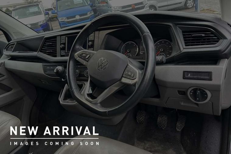 Adaptive cruise control, Cross wind assist, Dimmable illuminated instruments, Driver alert with Multi-function display plus, eCall emergency system, Forward collision warning front assist with autonomous emergency braking, Mobile phone interface, Multi function display plus with black and white display, 2 USB interfaces type C in dashboard, 4 speakers with 2 tweeters and 2 woofers, Composition colour radio with 6.5" touchscreen, Digital radio reception (DAB+), Volkswagen app connect, Automatic headlight control, leaving home and manual coming home feature, Closing rear wing door with unlatching from the inside, Front fog lamps with cornering light, Heat insulating glass (green) in cab and passenger/load compartment, Heated front windscreen, Left convex exterior mirror, Power folding adjustable door mirrors with separately heated, Radiator grille with 2 chrome trims, Rear wing doors without window apertures, Right convex exterior mirror, Transporter nameplate on the rear fender, Windshield wiper intermittent control with rain sensor for windshield wipers, 3 spoke leather wrapped multi function steering wheel, Auto dimming breakaway interior rear view mirror, Comfort headliner in cab, hardboard roof trim in passenger and load compartment, Dust/pollen filter, Front and rear left without window closed side panel in load compartment, Front seats on the right in 1st row of seat, Glove compartment with illumination, Heavy duty tool kit and jack, High partition, Interior plastic loading edge protection, LED Interior lighting in load and passenger compartment, Manual adjustable lumbar support for right single seat in 1st row seats, Refrigerant R134a, Standard lower part dashboard in palladium, Storage compartments on cab seats and reading light, Without right side window apertures in passenger and load compartment, Comfort pack - Transporter, Exterior pack without fog light- Transporter, Non smoker pack - Transporter, 3 point height adjustable seat belts on outer seats cab with electric pretensioners, Driver and front passenger airbag with front passenger airbag deactivation, Warning buzzer and light for driver and front passenger seat belt not fastened, Without child safety lock in passenger compartment, Anti theft alarm system with interior monitoring in cab, backup horn and towing protection, Lockable wheel bolts, 16" chassis with 16" brake system, Diesel particulate filter, Electronic stability control, ABS, ASR with deactivation button, hill start assist and brake assist system, Start/stop system with regenerative breaking, 16" Clayton alloy wheels,