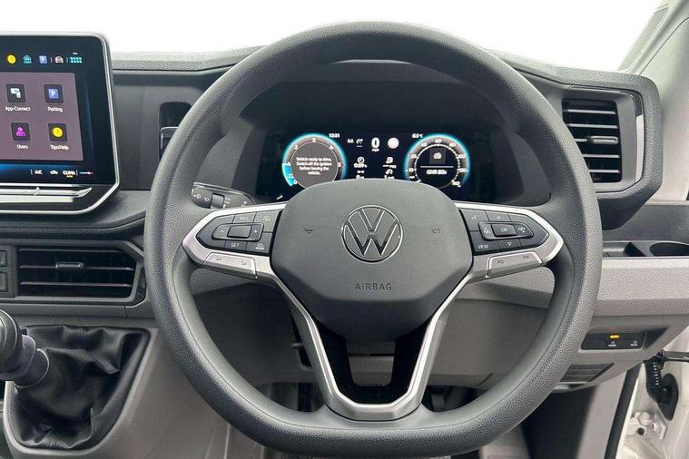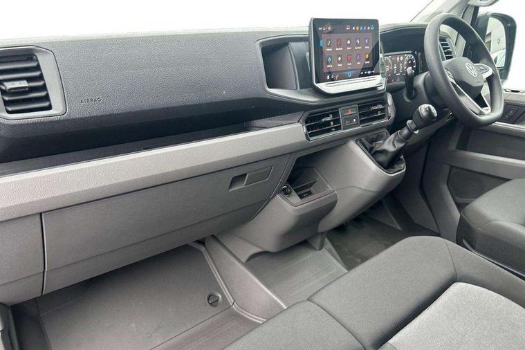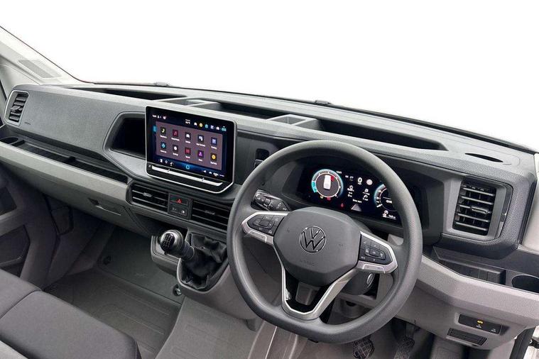 Bluetooth, Digital clock, Driver alert system, E-call + We connect basic preparation, Instrument cluster, Lights on warning buzzer, Locking fuel cap, Multi-function Display Plus, Rev counter, Service indicator, Speedometer, Voice control system, Composition media with 6.5" with we connect plus prep, 4 speaker, multifun display plus, USB, mob interface, app con, "We connect function", DAB Radio, Auto low beam mode, Leaving home function and manual coming home function, Cab doors, Convex and wide angle mirror, Driver seatbelt warning light, Electric windows, Electrically heated and adjustable door mirrors, Half painted front bumper, Heat insulating glass, Indicators in front door mirrors, One towing eye in front, Rear wing doors with 270 degree hinges, Special identification plate, Unpainted radiator grille, Air recirculation system, Ashtray, Centre console storage tray, CFCU preparation, Charcoal filter, Climatic air conditioning, Document holder on centre console, Drinks holders, Electromechanical Servotronic steering, Electronically controlled heating system, Fully adjustable suspension type driver seat, Grab handles on rear entry pillars, Height adjustable head restraints, Height and reach adjustable steering wheel, Illuminated glove compartment with lockable lid, Interior light, including 2 reading lights, Interior light, switchable by door, Jack and tool kit, Preparation for interface for external use with terminal block, Storage compartments in doors and in step, right, Storage tray on dashboard, Two 12V outlets in the cab (in the dashboard), Without rear side trim panel passenger load compartment, Non-smokers pack - Crafter, 3 point inertia reel belt on all seats, Automatic hazard light with emergency braking, Crosswind assist, Driver and front passenger airbag with front passenger airbag deactivation, Height adjustable seatbelts for outer cab seats, 1 rigid key, Anti-theft alarm with interior monitor, back up horn and tow away protect, overhead storage with two 1-DIN, reading light, SAFELOCK with 2 remote keys, Engine immobiliser, ABS, Automatic post collision braking system, EBA, EBD, EDL, ESP, Front disc brakes, HBA, Hill start assist, Parking brake - hill hold control, Start and stop system with regenerative braking, TCS, Hub cap covers,
