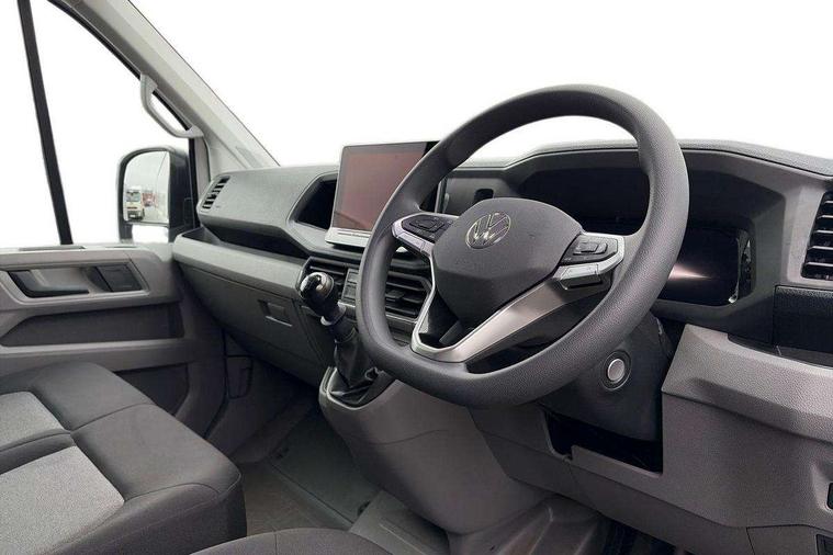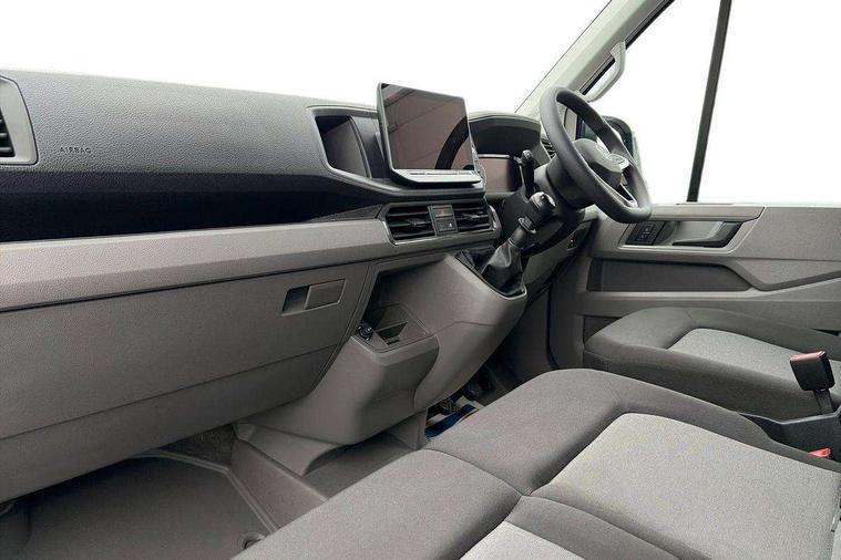 Bluetooth, Digital clock, Driver alert system, E-call + We connect basic preparation, Instrument cluster, Lights on warning buzzer, Locking fuel cap, Multi-function Display Plus, Rev counter, Service indicator, Speedometer, Voice control system, Composition media with 6.5" with we connect plus prep, 4 speaker, multifun display plus, USB, mob interface, app con, "We connect function", DAB Radio, Auto low beam mode, Leaving home function and manual coming home function, Cab doors, Convex and wide angle mirror, Driver seatbelt warning light, Electric windows, Electrically heated and adjustable door mirrors, Half painted front bumper, Heat insulating glass, Indicators in front door mirrors, One towing eye in front, Rear wing doors with 270 degree hinges, Special identification plate, Unpainted radiator grille, Air recirculation system, Ashtray, Centre console storage tray, CFCU preparation, Charcoal filter, Climatic air conditioning, Document holder on centre console, Drinks holders, Electromechanical Servotronic steering, Electronically controlled heating system, Fully adjustable suspension type driver seat, Grab handles on rear entry pillars, Height adjustable head restraints, Height and reach adjustable steering wheel, Illuminated glove compartment with lockable lid, Interior light, including 2 reading lights, Interior light, switchable by door, Jack and tool kit, Preparation for interface for external use with terminal block, Storage compartments in doors and in step, right, Storage tray on dashboard, Two 12V outlets in the cab (in the dashboard), Without rear side trim panel passenger load compartment, Non-smokers pack - Crafter, 3 point inertia reel belt on all seats, Automatic hazard light with emergency braking, Crosswind assist, Driver and front passenger airbag with front passenger airbag deactivation, Height adjustable seatbelts for outer cab seats, 1 rigid key, Anti-theft alarm with interior monitor, back up horn and tow away protect, overhead storage with two 1-DIN, reading light, SAFELOCK with 2 remote keys, Engine immobiliser, ABS, Automatic post collision braking system, EBA, EBD, EDL, ESP, Front disc brakes, HBA, Hill start assist, Parking brake - hill hold control, Start and stop system with regenerative braking, TCS, Hub cap covers,
