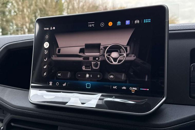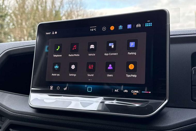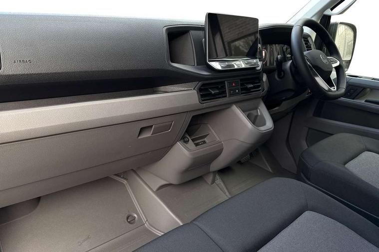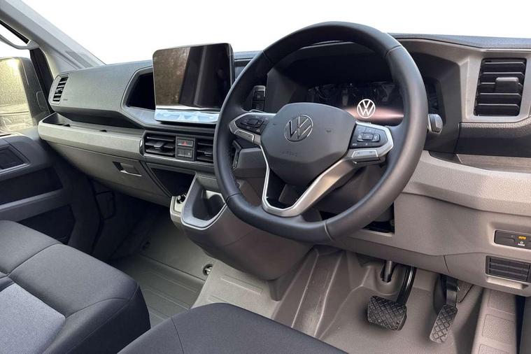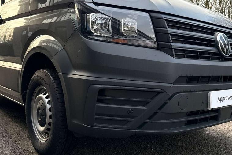 Bluetooth, Digital clock, Driver alert system, E-call + We connect basic preparation, Front and rear parking sensors, Instrument cluster, Lane keeping assist, Lights on warning buzzer, Locking fuel cap, Multi-function Display Plus, Rev counter, Service indicator, Speedometer, Voice control system, Composition media with 6.5" with we connect plus prep, 4 speaker, multifun display plus, USB, mob interface, app con, "We connect function", DAB Radio, Auto low beam mode, Leaving home function and manual coming home function, Black unpainted plastic front bumper, Cab doors, Convex and wide angle mirror, Driver seatbelt warning light, Electric windows, Heat insulating glass, Indicators in front door mirrors, Manually adjustable door mirrors, One towing eye in front, Special identification plate, Unpainted radiator grille, Air recirculation system, Ashtray, Centre console storage tray, CFCU preparation, Charcoal filter, Document holder on centre console, Drinks holders, Electromechanical Servotronic steering, Electronically controlled heating system, Fully adjustable suspension type driver seat, Height adjustable head restraints, Height and reach adjustable steering wheel, Illuminated glove compartment with lockable lid, Interior light, including 2 reading lights, Interior light, switchable by door, Jack and tool kit, Multifunction steering wheel, Preparation for interface for external use with terminal block, Storage compartments in doors and in step, right, Storage tray on dashboard, Two 12V outlets in the cab (in the dashboard), Without rear side trim panel passenger load compartment, Non-smokers pack - Crafter, 3 point inertia reel belt on all seats, Automatic hazard light with emergency braking, Crosswind assist, Driver and front passenger airbag with front passenger airbag deactivation, Height adjustable seatbelts for outer cab seats, 1 rigid key, Engine immobiliser, 75 litre fuel tank, ABS, Automatic post collision braking system, EBA, EBD, EDL, ESP, Front disc brakes, HBA, Hill start assist, Parking brake - hill hold control, Start and stop system with regenerative braking, TCS, Hub cap covers,