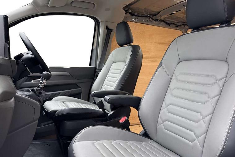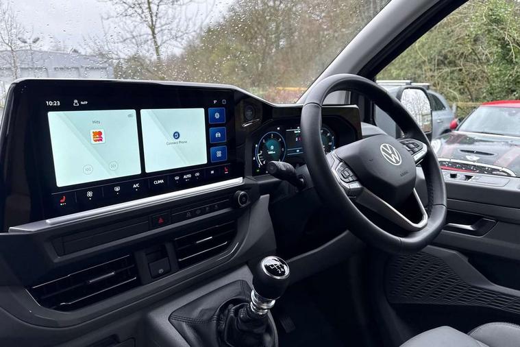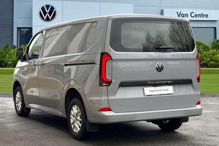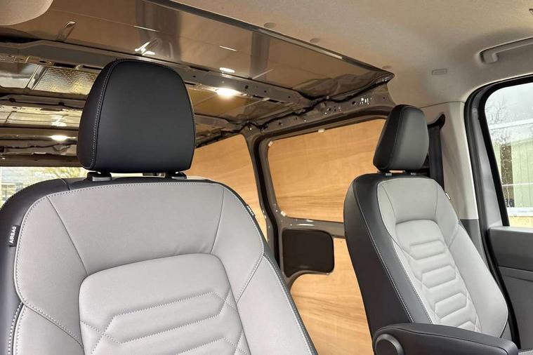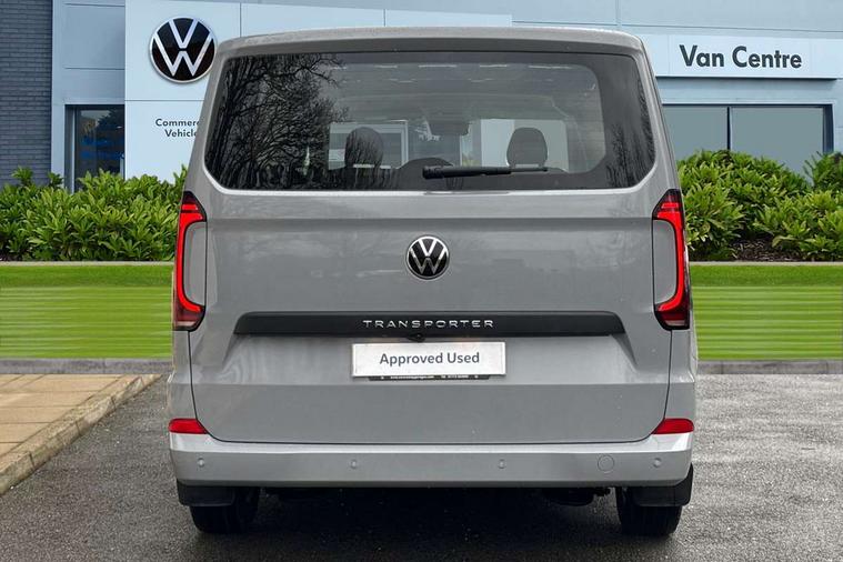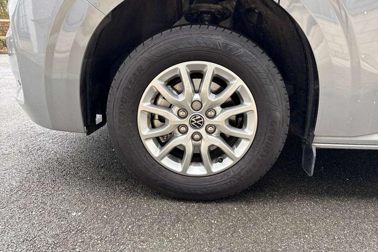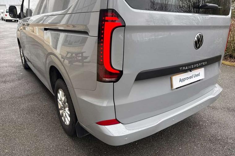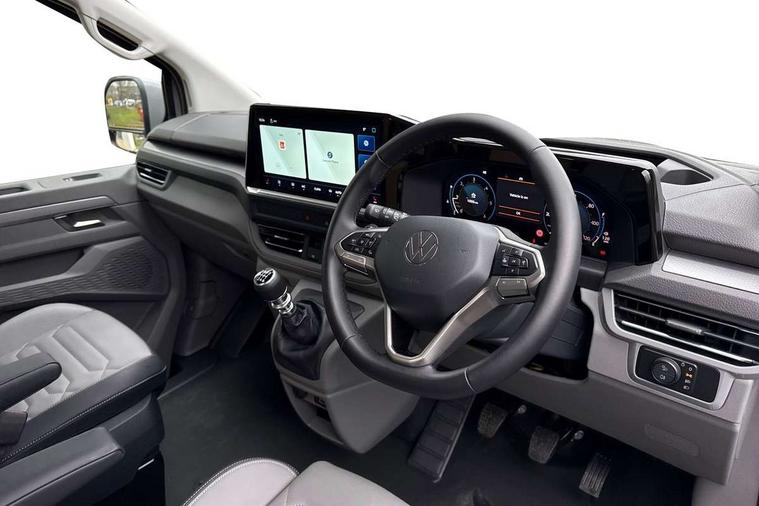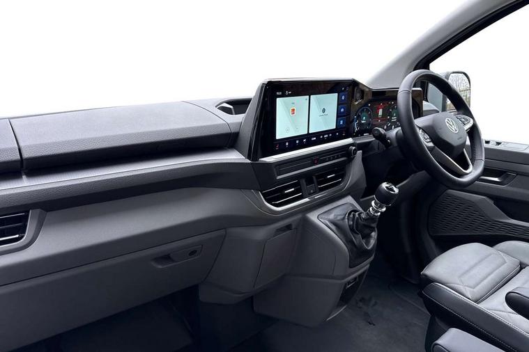 12" digital drivers display, 13" touchscreen infotainment display with wireless app connect and DAB radio, 5G Modem, Adaptive cruise control, Apple CarPlay and Android Auto, Dynamic road sign display, eCall emergency system, Electromechanical speed sensitive power steering, height and longitudinally adjustable steering column, Lane and blind spot assist with exit warning system, Preparation of VW connect and connect plus, Wireless mobile phone charging, Wrong way driver warning, Body colour bumpers, Body coloured door handles, Body coloured door mirrors, Body coloured radiator grille, Electrically heated, adjustable and folding door mirrors, Heat reflecting side window glass, Mud flaps front and rear, Rear Transporter nameplate in black grained decorative trim, Vehicle opening configuration 1x 1st row of seats, 2x all doors, 12V outlet in centre console and 12V outlet on rear right D-pillar, 2x 15-W USB data/charging ports in dashboard and 1x USB-C, 1x USB-A center bottom, 2x LED lights in load compartment, 3x additional super bright LED lights in load compartment, 4 way height and tilt adjustable head restraints, 5 additional USB-C charging ports, Black plastic scuff plate for sliding door in cargo without illumination, Cabin interior lighting, Glasses compartment in driver side roof, Grab handle on A-pillar passenger side, Illuminated lockable glovebox, Lashing rings for reinforced floor covering, Leatherette gear lever, Narrow centre console with cup holder and compartment for mobile phone, Overhead storage compartment, Rubber floor covering in cab, Striped fabric upholstery, Without passenger seats in load compartment, Driver and front passenger airbag with front passenger airbag deactivation, Dual tone horn, Front and curtain airbags for driver and front passenger, Seat belt pretensioner for driver seat, Anti theft alarm system with interior monitoring in cab, backup horn and towing protection, Electronic immobiliser, Lockable wheel bolts, Preparation for alcohol ignition interlock, 5+ Promise, Alternator - 230A, Electromechanical brake booster, Electronic stability control, ABS, ASR with deactivation button, hill start assist and brake assist system,