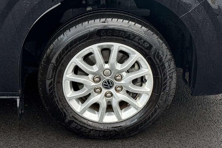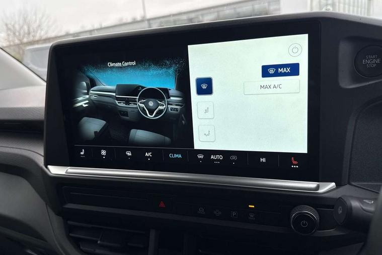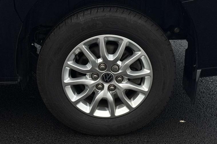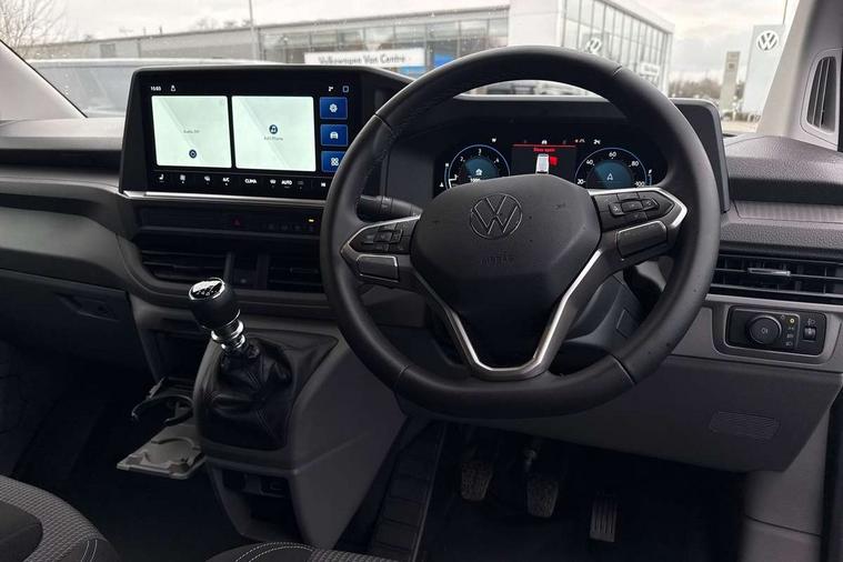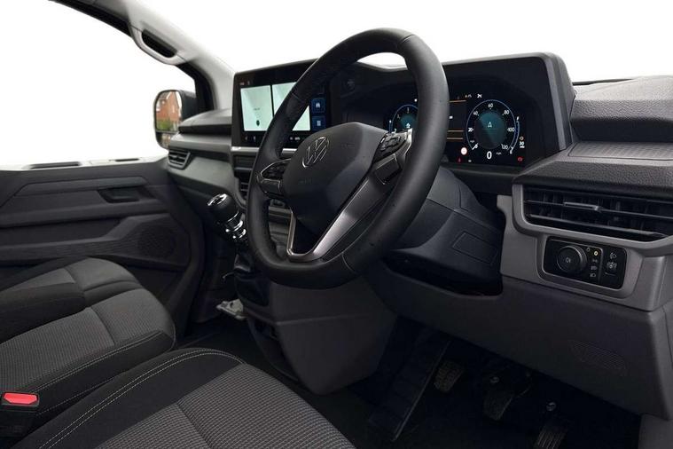 12" digital drivers display, 13" touchscreen infotainment display with wireless app connect and DAB radio, 5G Modem, Adaptive cruise control, Apple CarPlay and Android Auto, Dynamic road sign display, eCall emergency system, Electromechanical speed sensitive power steering, height and longitudinally adjustable steering column, Lane and blind spot assist with exit warning system, Preparation of VW connect and connect plus, Wireless mobile phone charging, Wrong way driver warning, Body colour bumpers, Body coloured door handles, Body coloured door mirrors, Body coloured radiator grille, Electrically heated, adjustable and folding door mirrors, Heat reflecting side window glass, Mud flaps front and rear, Rear Transporter nameplate in black grained decorative trim, Vehicle opening configuration 1x 1st row of seats, 2x all doors, 12V outlet in centre console and 12V outlet on rear right D-pillar, 2x 15-W USB data/charging ports in dashboard and 1x USB-C, 1x USB-A center bottom, 2x LED lights in load compartment, 3x additional super bright LED lights in load compartment, 4 way height and tilt adjustable head restraints, 5 additional USB-C charging ports, Black plastic scuff plate for sliding door in cargo without illumination, Cabin interior lighting, Glasses compartment in driver side roof, Grab handle on A-pillar passenger side, Illuminated lockable glovebox, Lashing rings for reinforced floor covering, Leatherette gear lever, Narrow centre console with cup holder and compartment for mobile phone, Overhead storage compartment, Rubber floor covering in cab, Striped fabric upholstery, Without passenger seats in load compartment, Driver and front passenger airbag with front passenger airbag deactivation, Dual tone horn, Front and curtain airbags for driver and front passenger, Seat belt pretensioner for driver seat, Anti theft alarm system with interior monitoring in cab, backup horn and towing protection, Electronic immobiliser, Lockable wheel bolts, Preparation for alcohol ignition interlock, 5+ Promise, Alternator - 230A, Electromechanical brake booster, Electronic stability control, ABS, ASR with deactivation button, hill start assist and brake assist system,