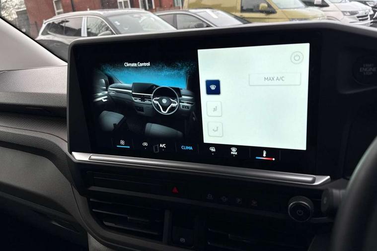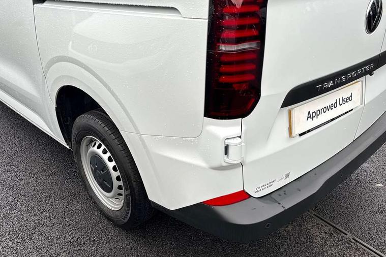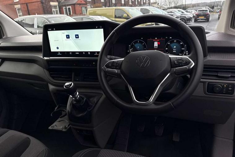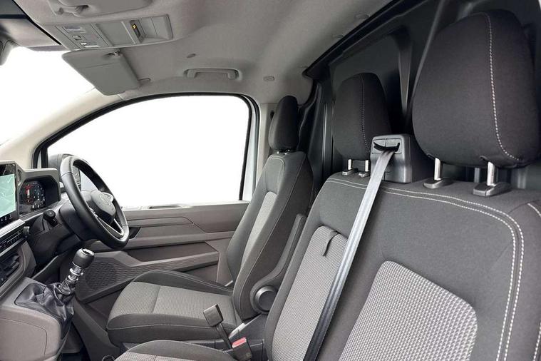 12" digital drivers display, 13" touchscreen infotainment display with wireless app connect and DAB radio, 5G Modem, Apple CarPlay and Android Auto, Cruise control, Dynamic road sign display, eCall emergency system, Electromechanical speed sensitive power steering, height and longitudinally adjustable steering column, Lane assist, Preparation of VW connect and connect plus, Wrong way driver warning, 4 speakers - 2x dashboard, 2x cab doors, Body coloured door handles, Heat reflecting side window glass, Mud flaps front and rear, Rear Transporter nameplate in black grained decorative trim, Vehicle opening configuration 1x 1st row of seats, 2x all doors, 2x 15-W USB data/charging ports in dashboard and 1x USB-C, 1x USB-A center bottom, 2x LED lights in load compartment, 3 spoke leather wrapped multi function steering wheel, 4 way height and tilt adjustable head restraints, Black plastic scuff plate for sliding door in cargo without illumination, Cabin interior lighting, Lashing rings for reinforced floor covering, Leatherette gear lever, Narrow centre console with cup holder and compartment for mobile phone, Overhead storage compartment, Roof grab handle on front passenger side, Rubber floor covering in cab, Striped fabric upholstery, Without passenger seats in load compartment, Driver and front passenger airbag with front passenger airbag deactivation, Dual tone horn, Front and curtain airbags for driver and front passenger, Seat belt pretensioner for driver seat, Anti theft alarm system with interior monitoring in cab, backup horn and towing protection, Electronic immobiliser, Preparation for alcohol ignition interlock, 5+ Promise, Alternator - 230A, Electronic stability control, ABS, ASR with deactivation button, hill start assist and brake assist system,