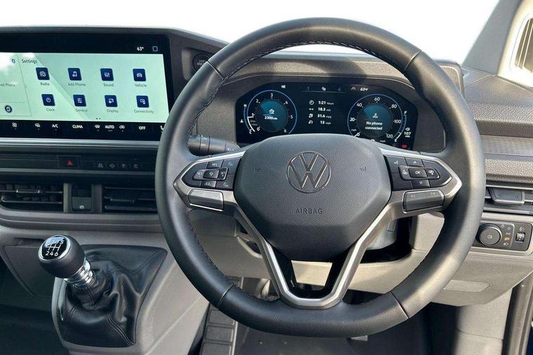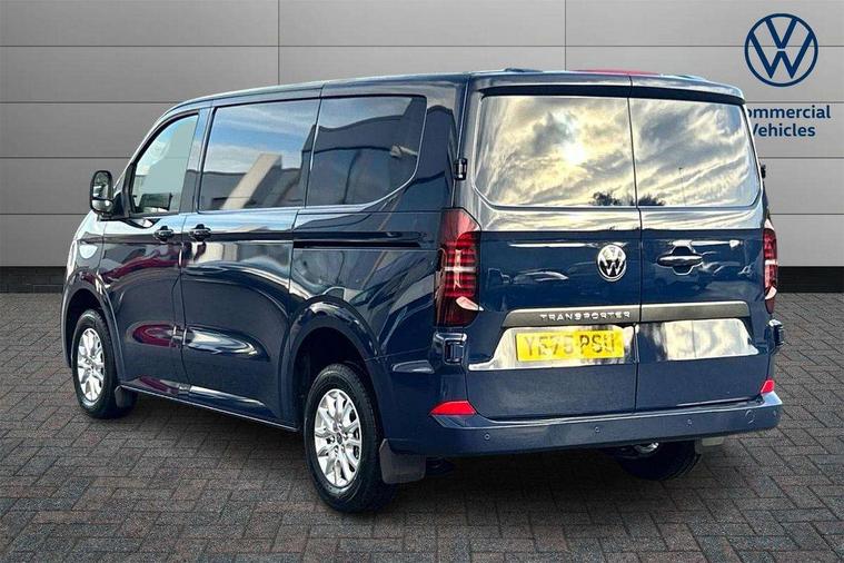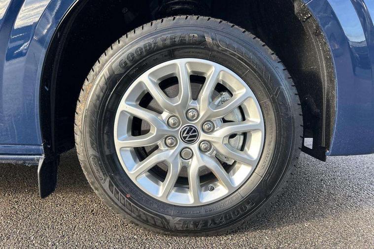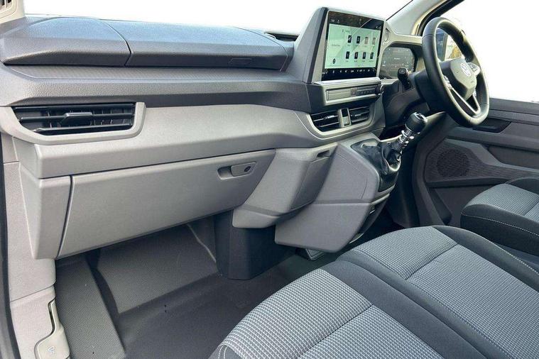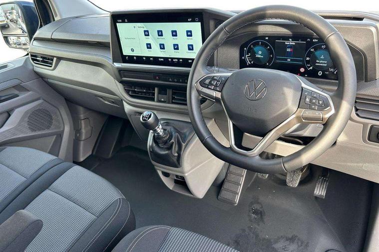 12" digital drivers display, 13" touchscreen infotainment display with wireless app connect and DAB radio, 5G Modem, Adaptive cruise control, Apple CarPlay and Android Auto, Dynamic road sign display, eCall emergency system, Electromechanical speed sensitive power steering, height and longitudinally adjustable steering column, Lane and blind spot assist with exit warning system, Preparation of VW connect and connect plus, Wireless mobile phone charging, Wrong way driver warning, Body colour bumpers, Body coloured door handles, Body coloured door mirrors, Body coloured radiator grille, Electrically heated, adjustable and folding door mirrors, Heat reflecting side window glass, Mud flaps front and rear, Rear Transporter nameplate in black grained decorative trim, Vehicle opening configuration 1x 1st row of seats, 2x all doors, 12V outlet in centre console and 12V outlet on rear right D-pillar, 2x 15-W USB data/charging ports in dashboard and 1x USB-C, 1x USB-A center bottom, 2x LED lights in load compartment, 3x additional super bright LED lights in load compartment, 4 way height and tilt adjustable head restraints, 5 additional USB-C charging ports, Black plastic scuff plate for sliding door in cargo without illumination, Cabin interior lighting, Glasses compartment in driver side roof, Grab handle on A-pillar passenger side, Illuminated lockable glovebox, Lashing rings for reinforced floor covering, Leatherette gear lever, Narrow centre console with cup holder and compartment for mobile phone, Overhead storage compartment, Rubber floor covering in cab, Striped fabric upholstery, Without passenger seats in load compartment, Driver and front passenger airbag with front passenger airbag deactivation, Dual tone horn, Front and curtain airbags for driver and front passenger, Seat belt pretensioner for driver seat, Anti theft alarm system with interior monitoring in cab, backup horn and towing protection, Electronic immobiliser, Lockable wheel bolts, Preparation for alcohol ignition interlock, 5+ Promise, Alternator - 230A, Electromechanical brake booster, Electronic stability control, ABS, ASR with deactivation button, hill start assist and brake assist system,