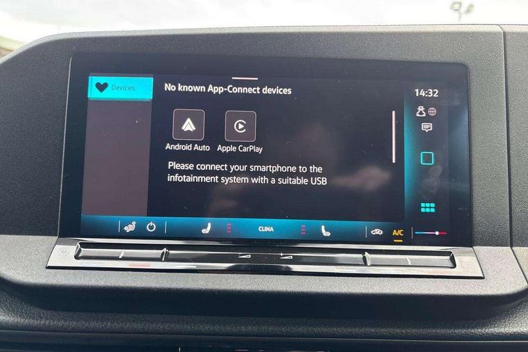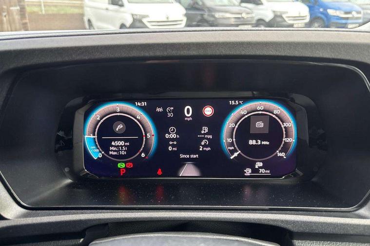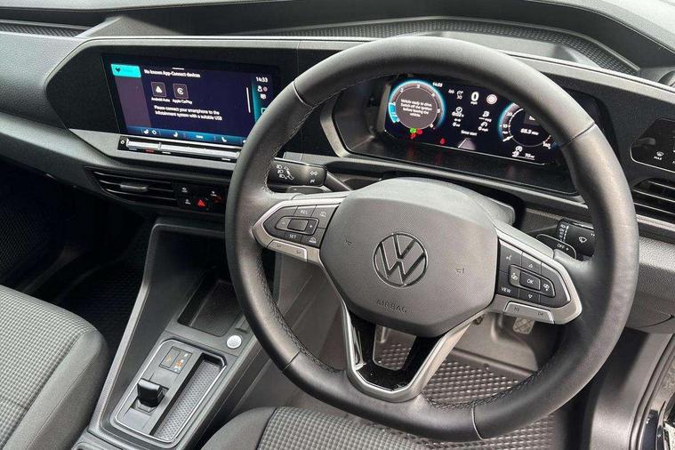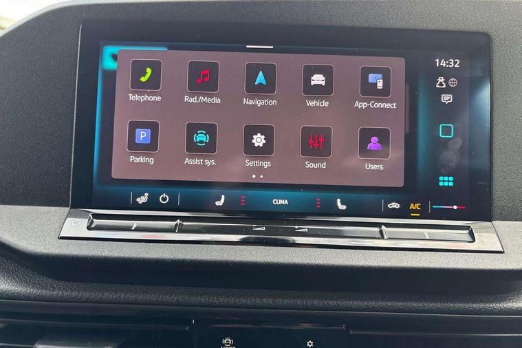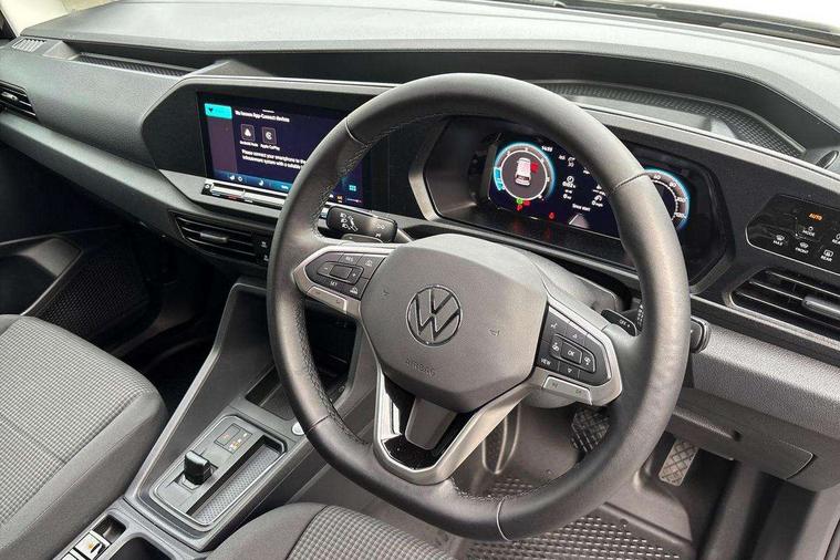 Driver alert system includes drowsiness detection, Emergency call control unit with eCall, Multi-function Display, Seatbelt warning indicator, Service indicator, Start-stop system with regenerative braking, DAB Radio, We Connect Plus Preparation, Automatic hazard light activation under emergency braking, Black painted exterior mirror housings, body-colored door handles and Silver sliding door rail, Body coloured bumpers, Electric front windows, Heated windscreen, LED rear combination lights, LED rear tail lights, Roof rail preparation, Windscreen wiper with variable intermittent delay and wash-wipe system, Electronically controlled heating system, ergoComfort seats for driver, Interior light in headlining, Lockable glove compartment door with light, Manual height adjustment for front seats and seat cushion inclination and depth adjustment on drivers seat, Multi function leather steering wheel, Power-adjustable lumbar support for drivers seat, Reach and rake adjustable steering column, Six lashing points for securing loads, Steering wheel paddle shift, Storage compartments under driver and front passenger seats, Sun visors with mirror, airbag label on front passenger sun visor, 3-point seat belts in front, with pretensioner and height adjustment, Driver and front passenger airbag with front passenger airbag deactivation, Anti-theft alarm system, interior monitoring, backup horn, and towing protection, Electronic engine immobiliser, Remote central locking with deadlocks, interior locking, Anti locking braking system (ABS), Automatic post collision braking system, Electric parking brake with auto hold function, Electronic brake force distribution (EBD), Electronic differential lock (EDL), Electronic stabilisation programme (ESP), Emergency brake assist, Engine drag torque control (MSR), Hill hold assist, Traction control system (TCS), Decorative beige birch vein inserts, Wheel bolts with anti-theft protection (unlockable),