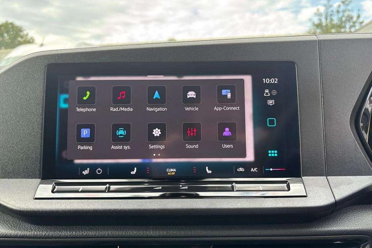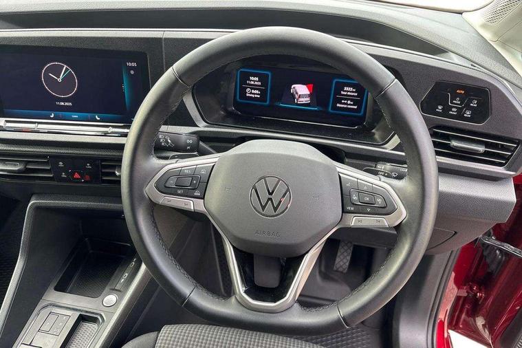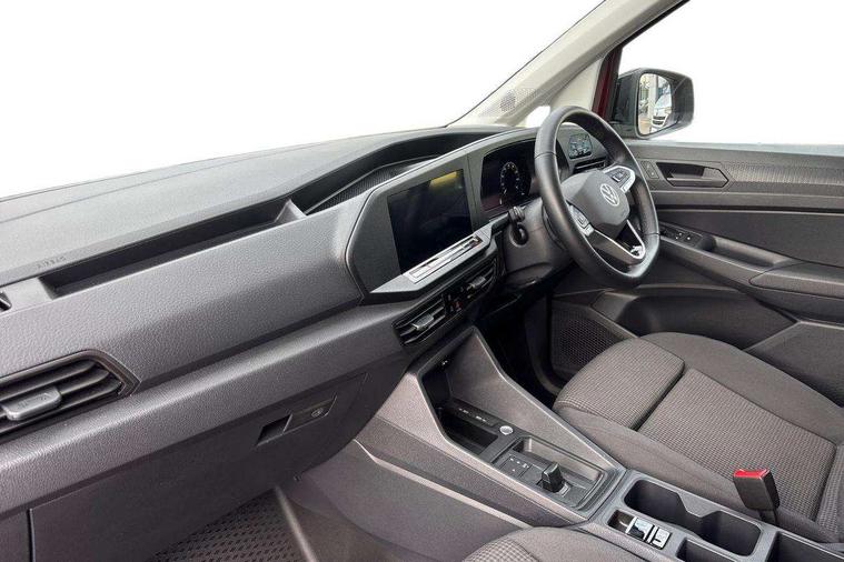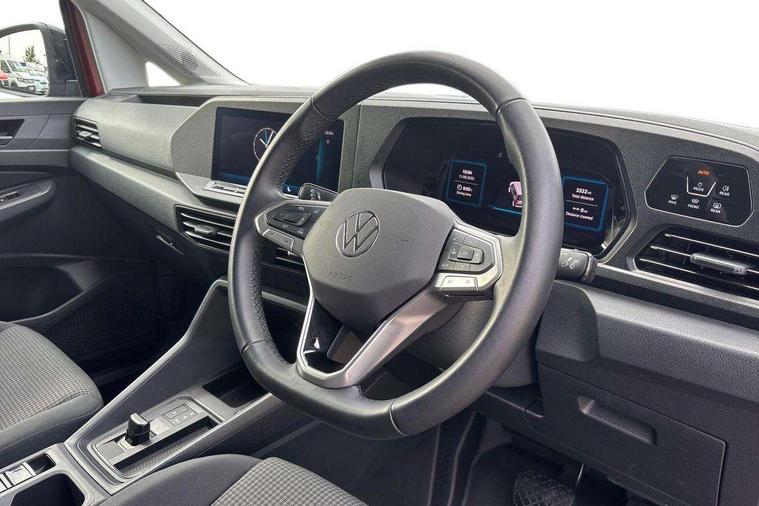 Bluetooth - Mobile phone interface, Digital cockpit, Digital multi-function cockpit display, Driver alert system, eCall emergency system, Front and rear parking sensors, Lane assist, Rear view camera, Seatbelt warning indicator, Service indicator, Start-stop system with regenerative braking, 2 USB interfaces type C in dashboard, App-Connect - Wireless for Apple CarPlay, DAB Radio, We Connect Plus Preparation, Automatic hazard light activation under emergency braking, Body coloured bumpers, Electric front windows, Gloss black painted exterior mirror housings, body-colored door handles and Silver sliding door rail, LED rear combination lights, LED rear tail lights, Rear view mirror with anti dazzle function, Roof rail preparation, Windscreen wiper with variable intermittent delay and wash-wipe system, Electronically controlled heating system, ergoComfort seats for driver, Interior light in headliner incorporting LED technology, Lockable glove compartment door with light, Manual heating and ventilation system, Manual height adjustment for front seats and seat cushion inclination and depth adjustment on drivers seat, Multi function leather steering wheel, Power-adjustable lumbar support for drivers seat, Reach and rake adjustable steering column, Six lashing points for securing loads, Steering wheel paddle shift, Storage compartments under driver and front passenger seats, Sun visors with mirror, airbag label on front passenger sun visor, Winter pack plus - Caddy, 3-point seat belts in front, with pretensioner and height adjustment, Driver and front passenger airbag with front passenger airbag deactivation, Keyless-Go without SAFELOCK, Tyre pressure monitoring system, Anti-theft alarm system, interior monitoring, backup horn, and towing protection, Electronic engine immobiliser, Remote central locking with deadlocks, interior locking, Anti locking braking system (ABS), Automatic post collision braking system, Diesel particulate filter, Electric parking brake with auto hold function, Electronic brake force distribution (EBD), Electronic differential lock (EDL), Electronic stabilisation programme (ESP), Engine drag torque control (MSR), Hill hold assist, Traction control system (TCS), Decorative beige birch vein inserts, Wheel bolts with anti-theft protection (unlockable),