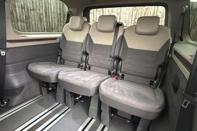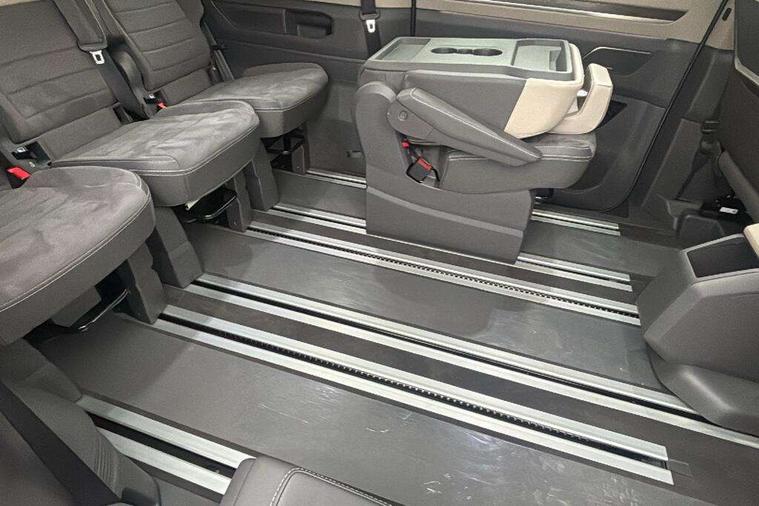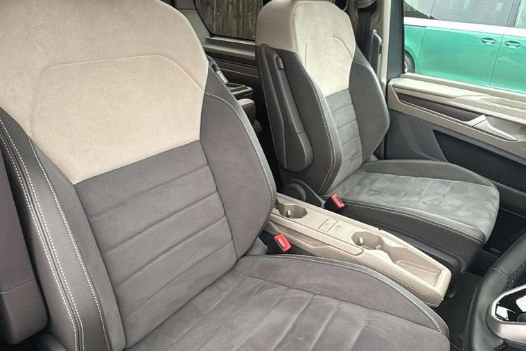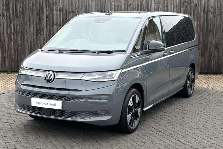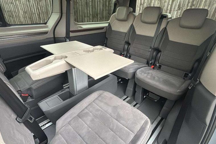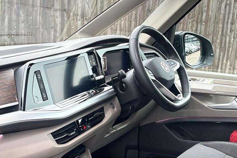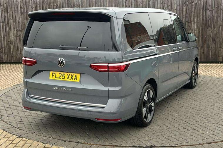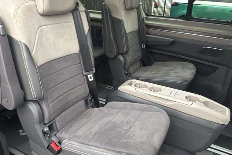 Adaptive cruise control with C2X including front assist and city emergency braking system, Digital Cockpit Pro with 10.25" colour display with adaptable display includes navigation map display, telephone contact images and audio information, Discover media pro navi system with 10" colour touch incl DAB+radio/appconnect for apple carplay/android auto/streaming and internet/gesture control, Driver alert system, Dynamic road sign display, eCall emergency system, Electrically-operated tailgate opening and closing function (Easy open), operated via foot movement under rear tailgate, Emergency assist, Front Cross Traffic Alert, Lane change system with side assist including blind spot monitor, rear traffic alert and exit warning system, Lane keeping system Lane Assist, Mobile phone interface, PAS, Semi-automated driving assistance, Tailgate, Travel assist, Voice control system including Alexa web app, We connect preparation, Electronic differential lock, 2 USB-C ports in front and 4 USB-C ports in passenger compartment, Additional interior noise reduction measures, Advanced high beam control dynamic light assist for LED matrix headlamps, Automatic headlight control with welcome home lights, Body coloured exterior door handles, Break away auto dimming rear view interior mirror, Chrome trim decorative strip mid-way on side and rear, Dynamic headlight range control with dynamic cornering light, Electrically adjustable, heated and folding door mirrors, Front fog lights, Glossy black painted radiator grille with 2 illuminated chrome trims, Heated rear window with window wiper and washer system, Heated windscreen, High gloss black exterior mirror housing, IQ.Light LED matrix headlamps with LED separate daytime running light, Laminated safety glass windshield, heat and sound insulating, LED 3rd brake lamp, LED rear combination lamps, Rear wiper, Stainless steel tailgate trim, Surround lighting in door area and tailgate with logo projection in door area, Windshield wiper intermittent control with rain sensor, 1 x 12V sockets on the dash panel, 12V socket in passenger compartment, 3 seat bench in 3rd row, 30 colours ambient interior lighting and tailgate surround lighting, 7 single seats removable/movable, Carpet mats in cab, Climatronic 3 zone air conditioning with additional control panel in passenger compartment, Front and rear head restraints, Grab handles on A pillar for access, on driver and front passenger side, Height adjustable seats, Height and longitudinal adjustment steering wheel with gear shift paddles, Illumination lockable glovebox compartment, ISOFIX (including i-size) and top tether in all seats in 2nd and 3rd rows, LED luggage compartment lighting X 2, Load compartment partition to 20kg with bag hooks and luggage net, Luggage compartment lid power latching with unlatching from inside, Multifunction leather steering wheel with tiptronic, Reinforced carpet floor covering in passenger compartment, Removable armrests for front seats with power adjustable lumbar support and folding table for 2nd row passenger seats, Removable armrests in 2nd row passenger seats, Single front passenger seat, Slidable multifunction table/centre console with 3 cup holders, Stainless steel pedals, Storage compartment under the 2nd and 3rd row seat and two waste bins, Sun visors with illuminated vanity mirror, ticket holder on driver side with airbag warning label on sunvisor and B-pillar, Easy open package - Multivan, 3x3 point rear seat belts, ABS, Automatic post collision braking system, Autonomous emergency braking front assist with pedestrian and cyclist monitoring, Driver and front passenger airbag with front passenger airbag deactivation, Electric childproof lock, Electronic stability control (ESC) and Electromechanical brake booster, ESP, First aid kit with warning triangle and safety vest, Front disc brakes, Hill hold assist, Seat belt warning for the drivers and all passengers seats if unfastened, Side and curtain airbags for driver and front passenger, curtain airbags for outer seats in rear, centre airbag in front, Single tone horn, Traction control, Tyre pressure monitoring system, Anti theft alarm system with interior monitoring in cab, backup horn and towing protection, Central locking system with interior control and safe lock, Keyless advanced with keyless entry, Start/stop button on centre console, Dark woodgrain optic decorative inserts,