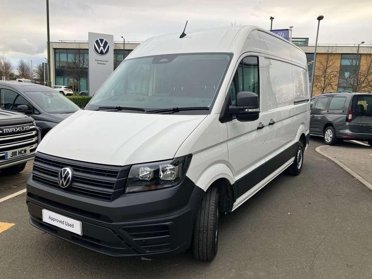 Bluetooth, Digital clock, Driver alert system, E-call + We connect basic preparation, Front and rear parking sensors, Instrument cluster, Lane keeping assist, Lights on warning buzzer, Locking fuel cap, Multi-function Display Plus, Rev counter, Service indicator, Speedometer, Voice control system, Composition media with 6.5" with we connect plus prep, 4 speaker, multifun display plus, USB, mob interface, app con, "We connect function", DAB Radio, Auto low beam mode, Leaving home function and manual coming home function, Black unpainted plastic front bumper, Cab doors, Convex and wide angle mirror, Driver seatbelt warning light, Electric windows, Heat insulating glass, Indicators in front door mirrors, Manually adjustable door mirrors, One towing eye in front, Special identification plate, Unpainted radiator grille, Air recirculation system, Ashtray, Centre console storage tray, CFCU preparation, Charcoal filter, Document holder on centre console, Drinks holders, Electromechanical Servotronic steering, Electronically controlled heating system, Fully adjustable suspension type driver seat, Height adjustable head restraints, Height and reach adjustable steering wheel, Illuminated glove compartment with lockable lid, Interior light, including 2 reading lights, Interior light, switchable by door, Jack and tool kit, Multifunction steering wheel, Preparation for interface for external use with terminal block, Storage compartments in doors and in step, right, Storage tray on dashboard, Two 12V outlets in the cab (in the dashboard), Without rear side trim panel passenger load compartment, Non-smokers pack - Crafter, 3 point inertia reel belt on all seats, Automatic hazard light with emergency braking, Crosswind assist, Driver and front passenger airbag with front passenger airbag deactivation, Height adjustable seatbelts for outer cab seats, 1 rigid key, Engine immobiliser, ABS, Automatic post collision braking system, EBA, EBD, EDL, ESP, Front disc brakes, HBA, Hill start assist, Parking brake - hill hold control, Start and stop system with regenerative braking, TCS, Hub cap covers,