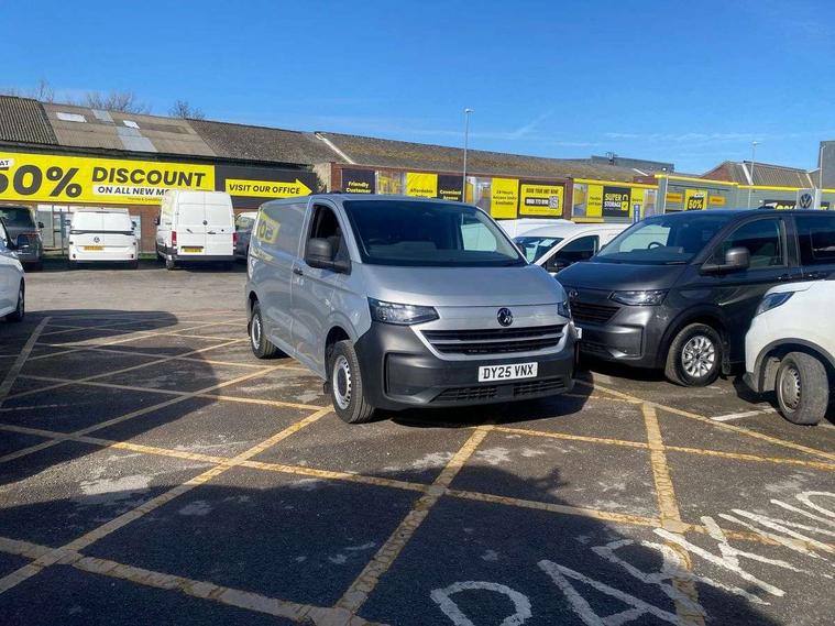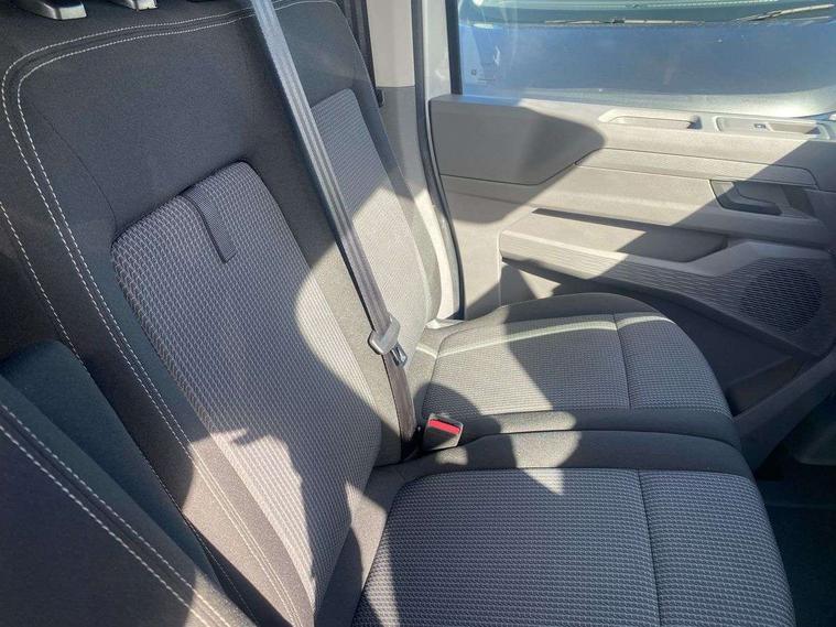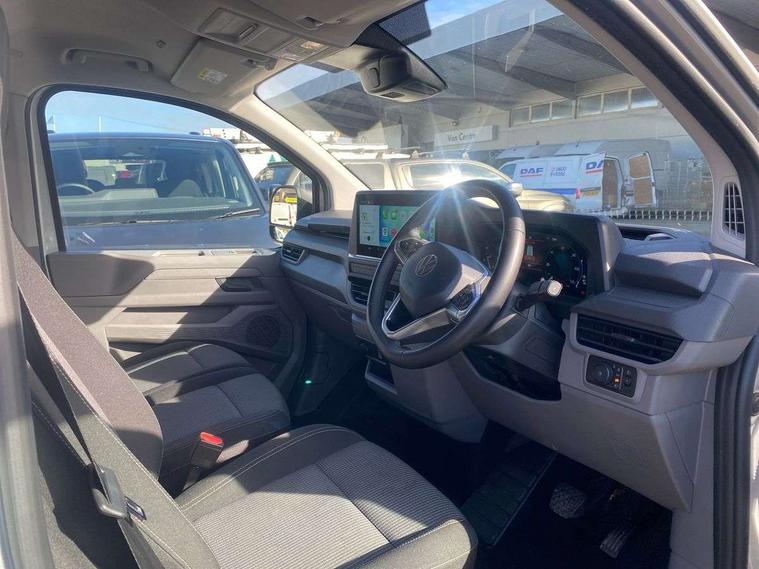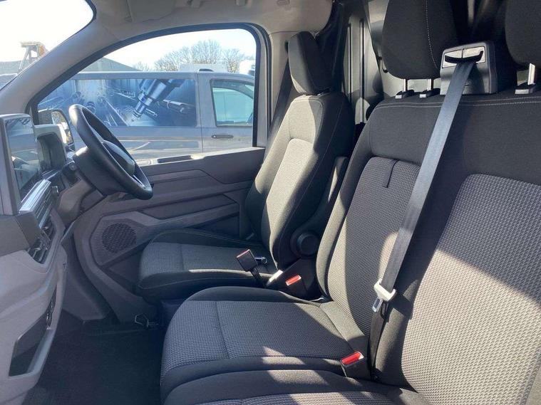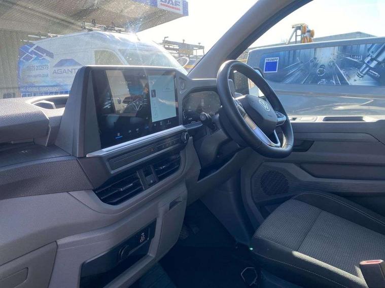 12" digital drivers display, 13" touchscreen infotainment display with wireless app connect and DAB radio, 5G Modem, Apple CarPlay and Android Auto, Cruise control, Dynamic road sign display, eCall emergency system, Electromechanical speed sensitive power steering, height and longitudinally adjustable steering column, Lane assist, Preparation of VW connect and connect plus, Wrong way driver warning, 4 speakers - 2x dashboard, 2x cab doors, Body coloured door handles, Heat reflecting side window glass, Mud flaps front and rear, Rear Transporter nameplate in black grained decorative trim, Vehicle opening configuration 1x 1st row of seats, 2x all doors, 2x 15-W USB data/charging ports in dashboard and 1x USB-C, 1x USB-A center bottom, 2x LED lights in load compartment, 3 spoke leather wrapped multi function steering wheel, 4 way height and tilt adjustable head restraints, Black plastic scuff plate for sliding door in cargo without illumination, Cabin interior lighting, Gear selector lever on steering wheel, Lashing rings for reinforced floor covering, Narrow centre console with cup holder and compartment for mobile phone, Overhead storage compartment, Roof grab handle on front passenger side, Rubber floor covering in cab, Striped fabric upholstery, Without passenger seats in load compartment, Driver and front passenger airbag with front passenger airbag deactivation, Dual tone horn, Front and curtain airbags for driver and front passenger, Seat belt pretensioner for driver seat, Anti theft alarm system with interior monitoring in cab, backup horn and towing protection, Electronic immobiliser, Preparation for alcohol ignition interlock, 5+ Promise, Alternator - 230A, Electronic stability control, ABS, ASR with deactivation button, hill start assist and brake assist system,